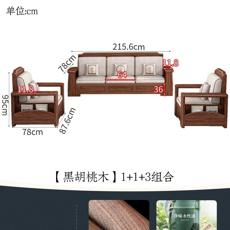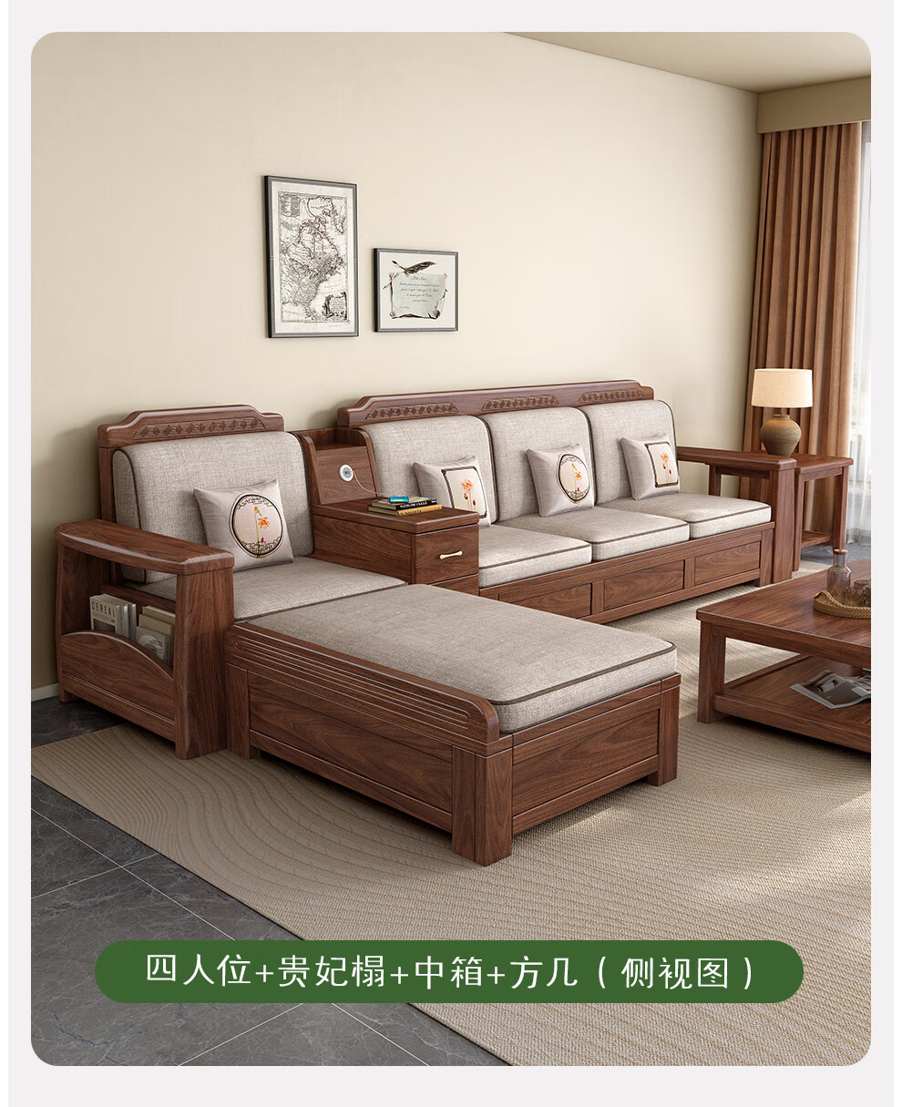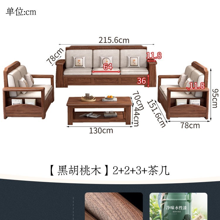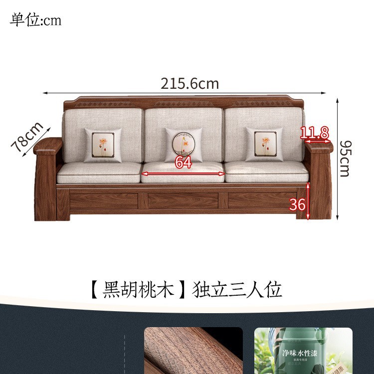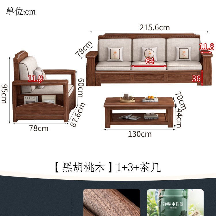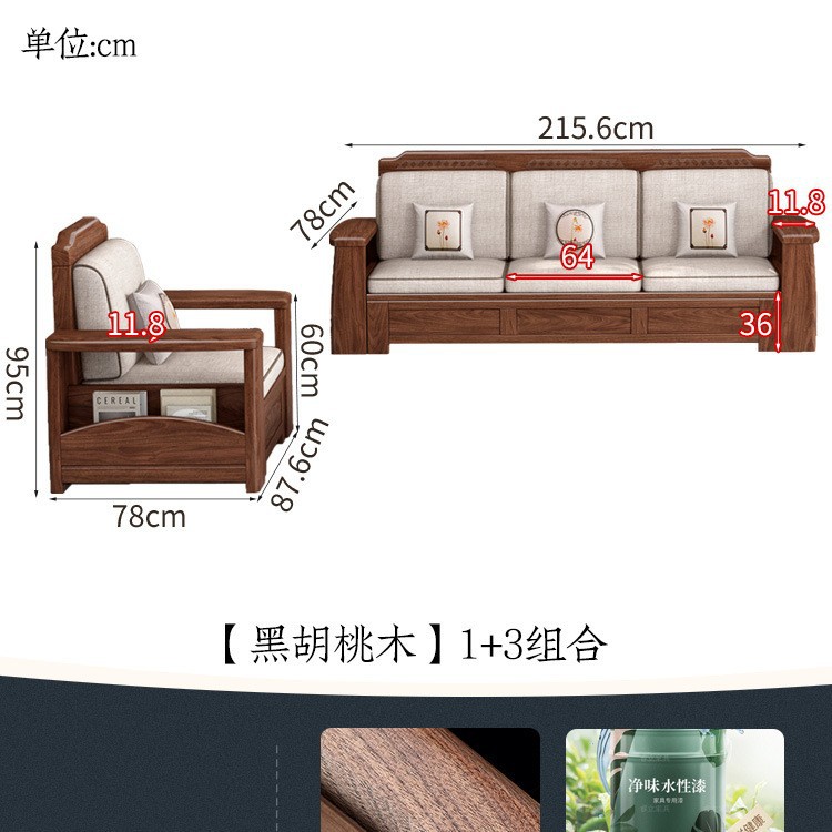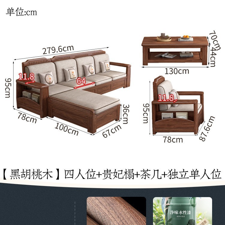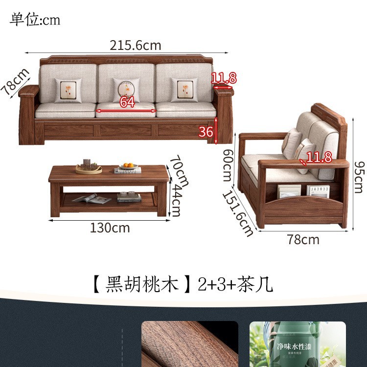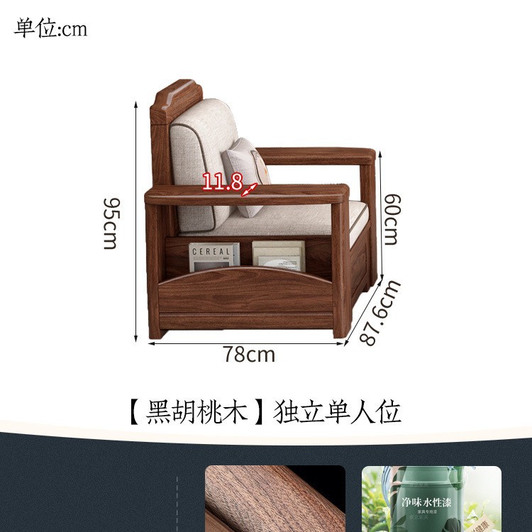새로운 중국 스타일 블랙 호두 솔리드 우드 소파 거실 현대 간단한 작은 아파트 팔걸이 저장 상자 유형 나무 소파스토어 가기