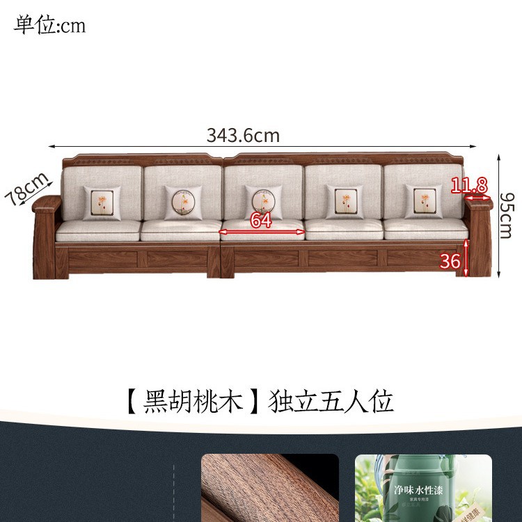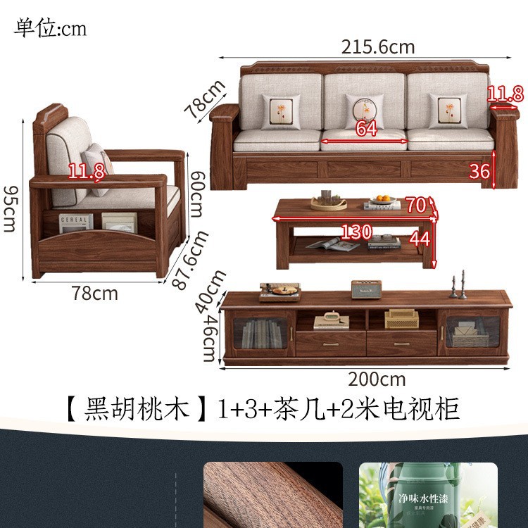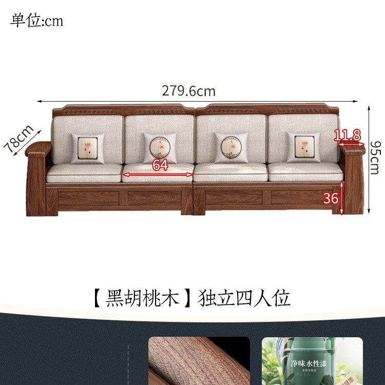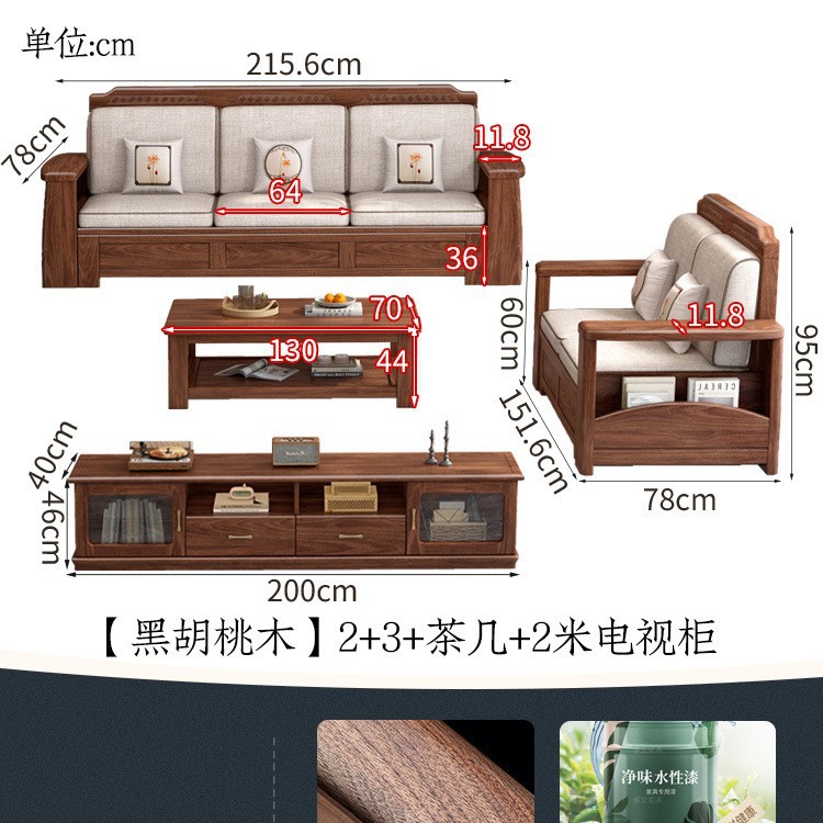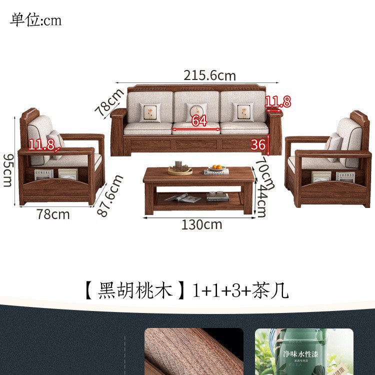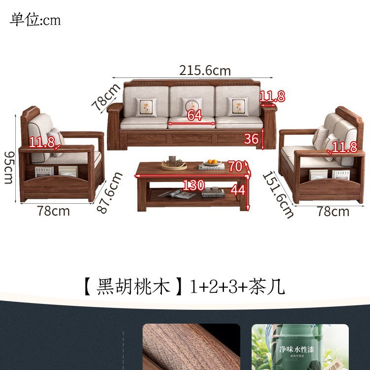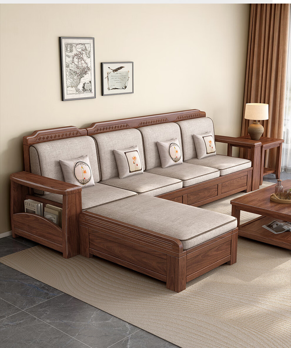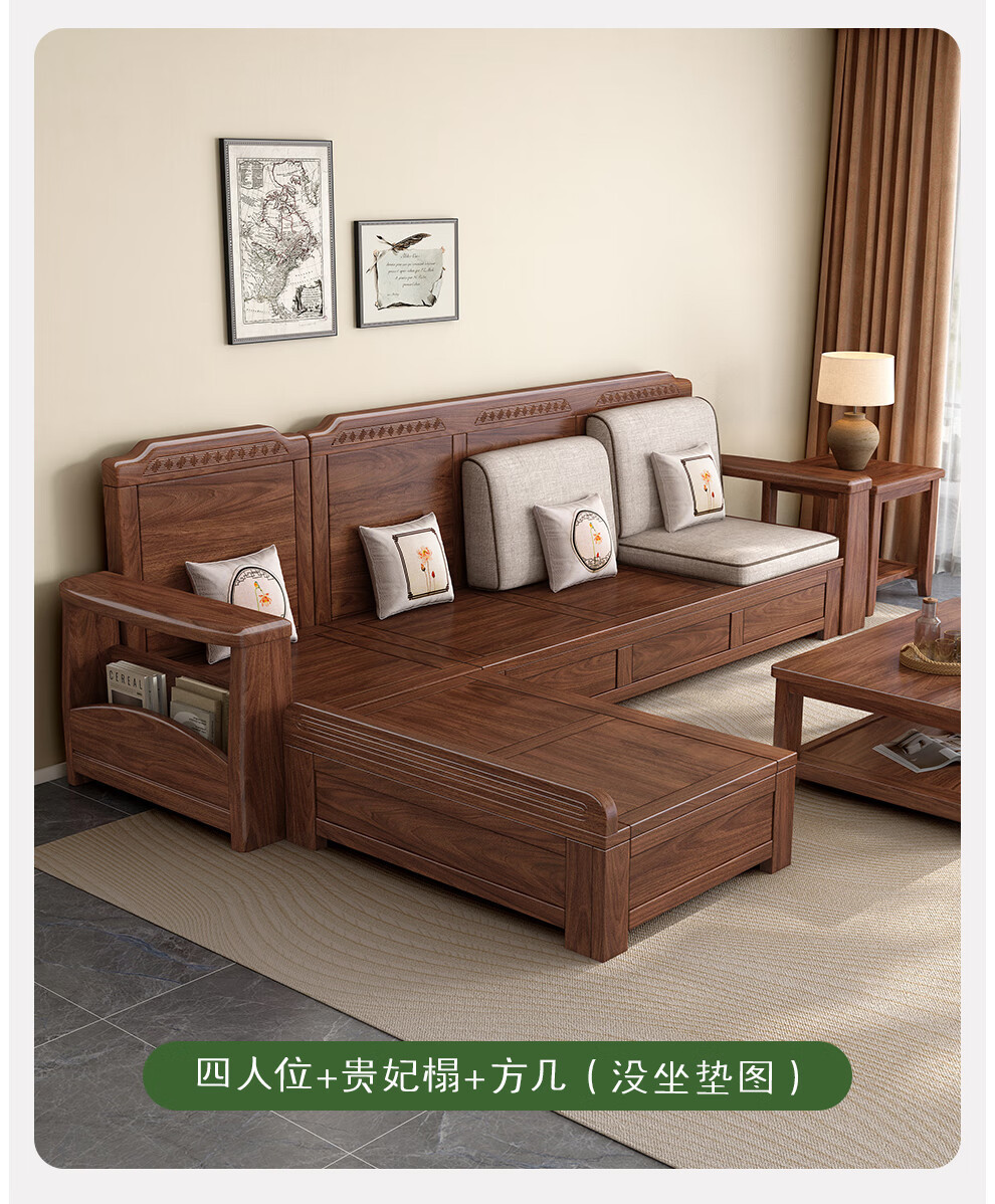 새로운 중국 스타일 블랙 호두 솔리드 우드 소파 거실 현대 간단한 작은 아파트 팔걸이 저장 상자 유형 나무 소파스토어 가기