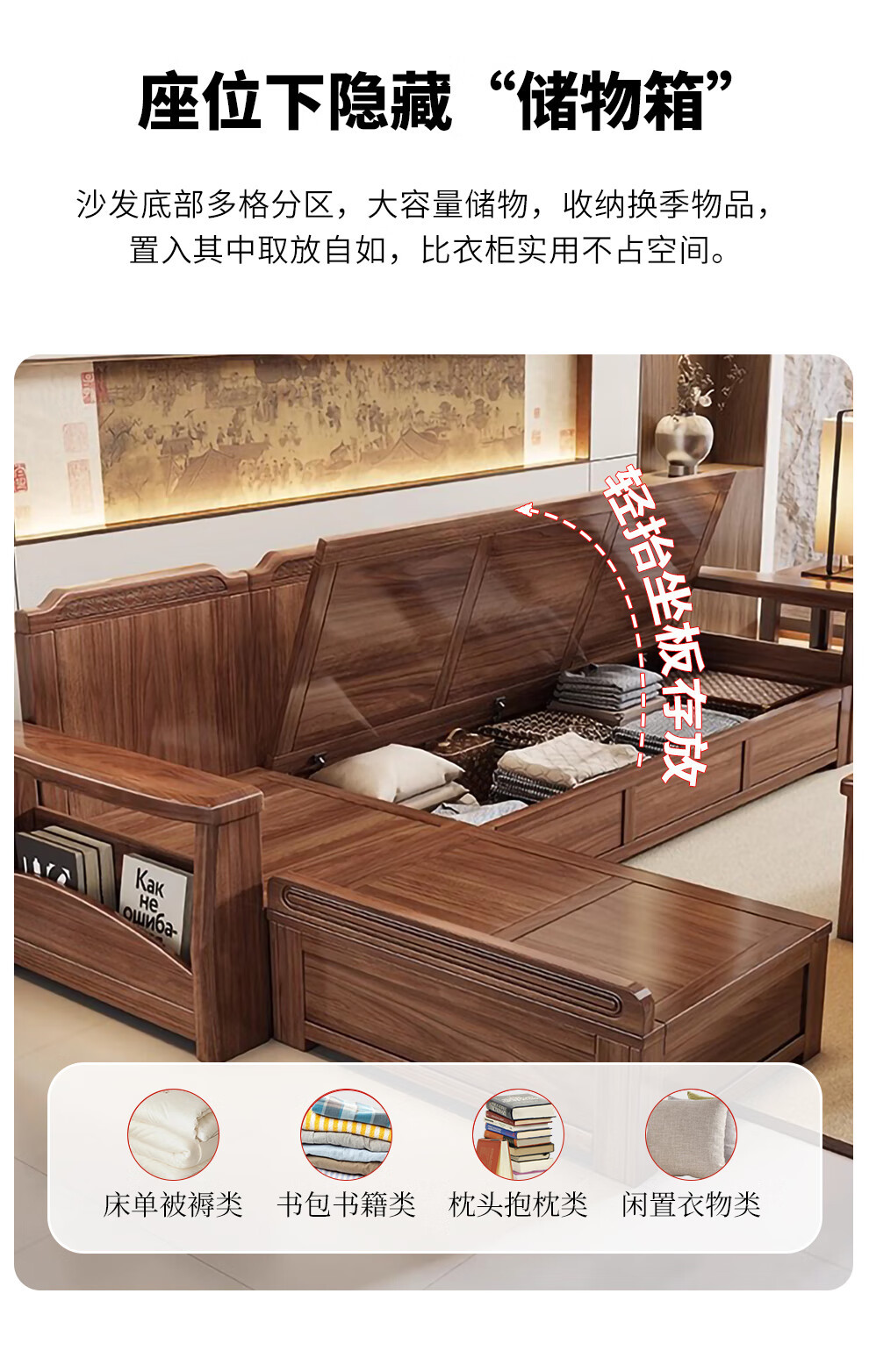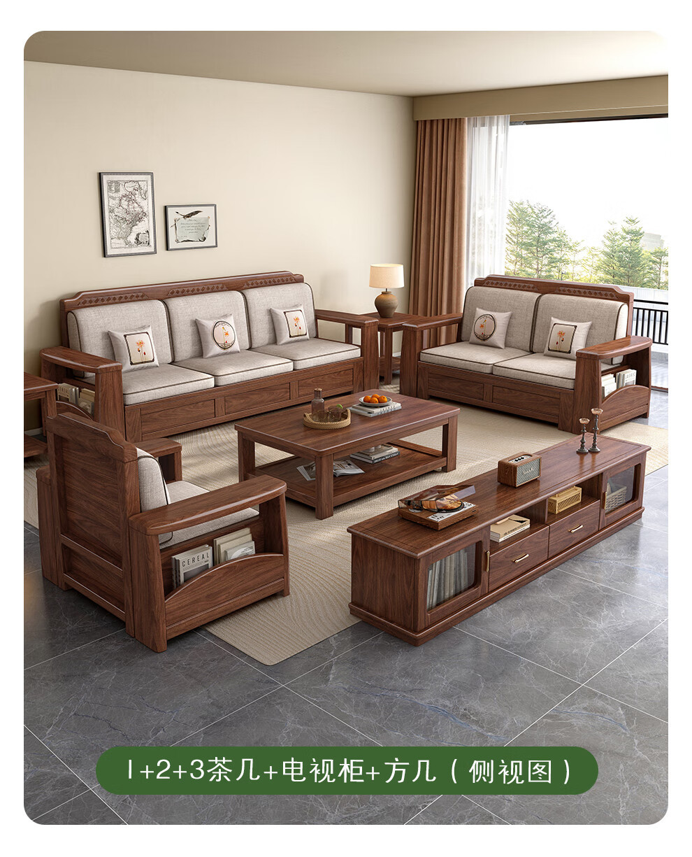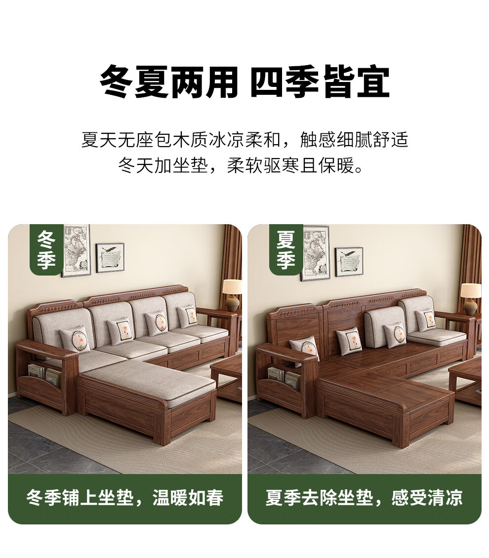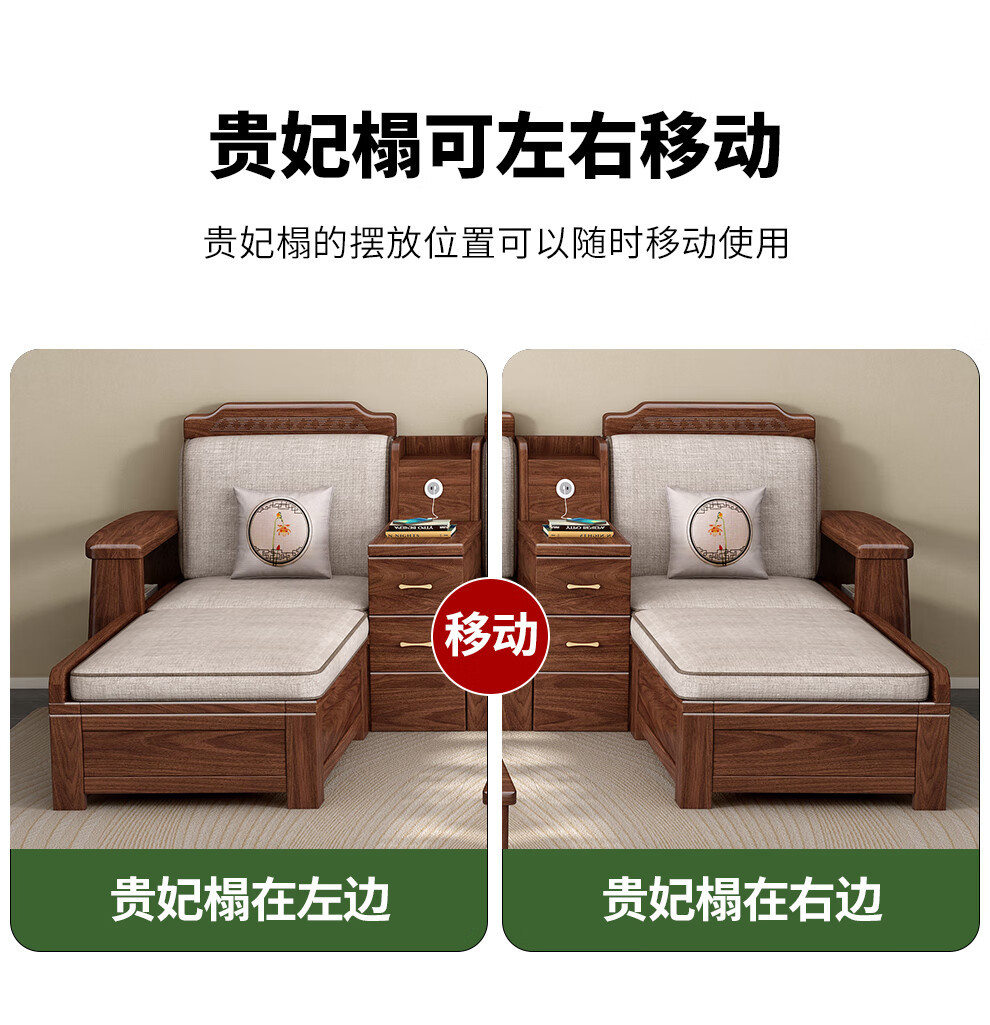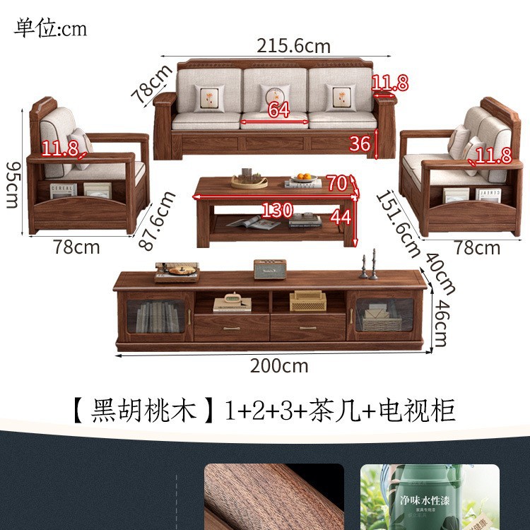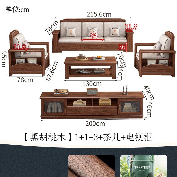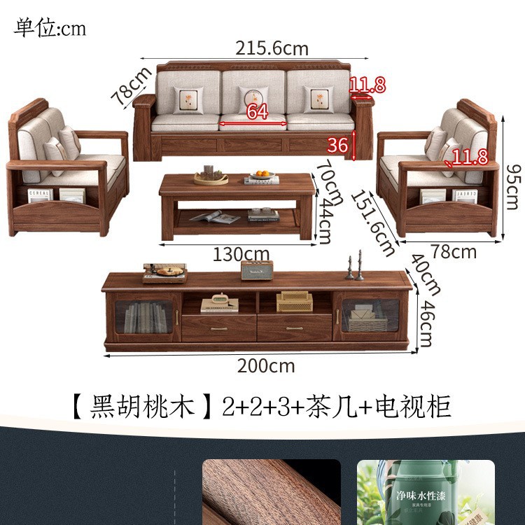 새로운 중국 스타일 블랙 호두 솔리드 우드 소파 거실 현대 간단한 작은 아파트 팔걸이 저장 상자 유형 나무 소파스토어 가기