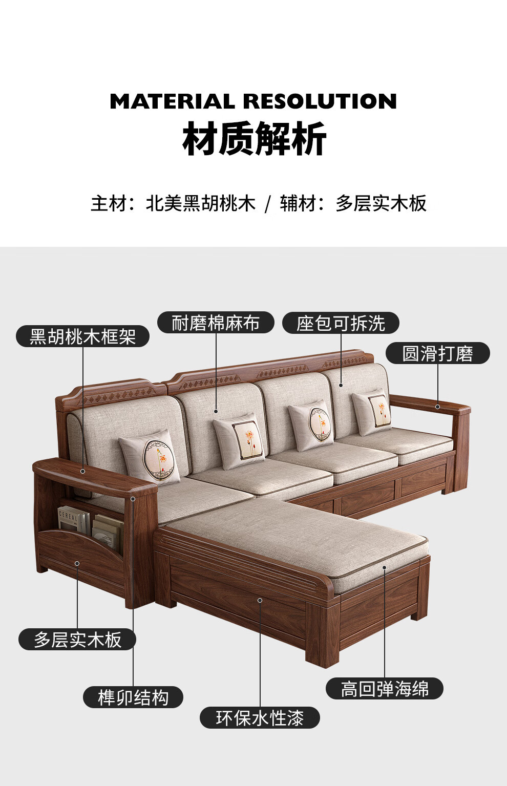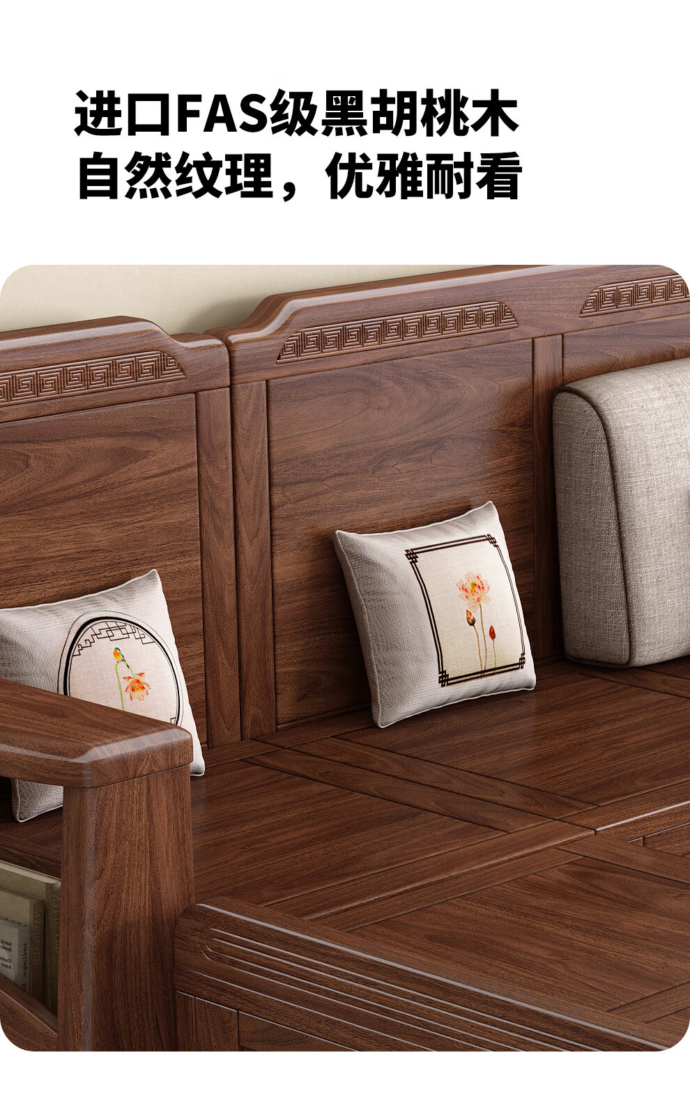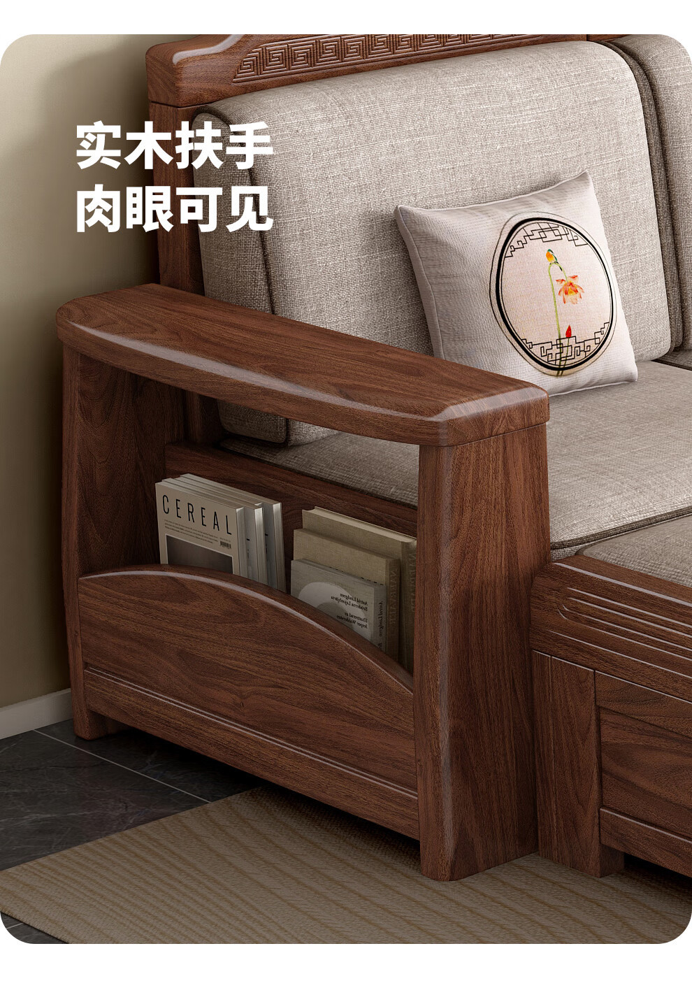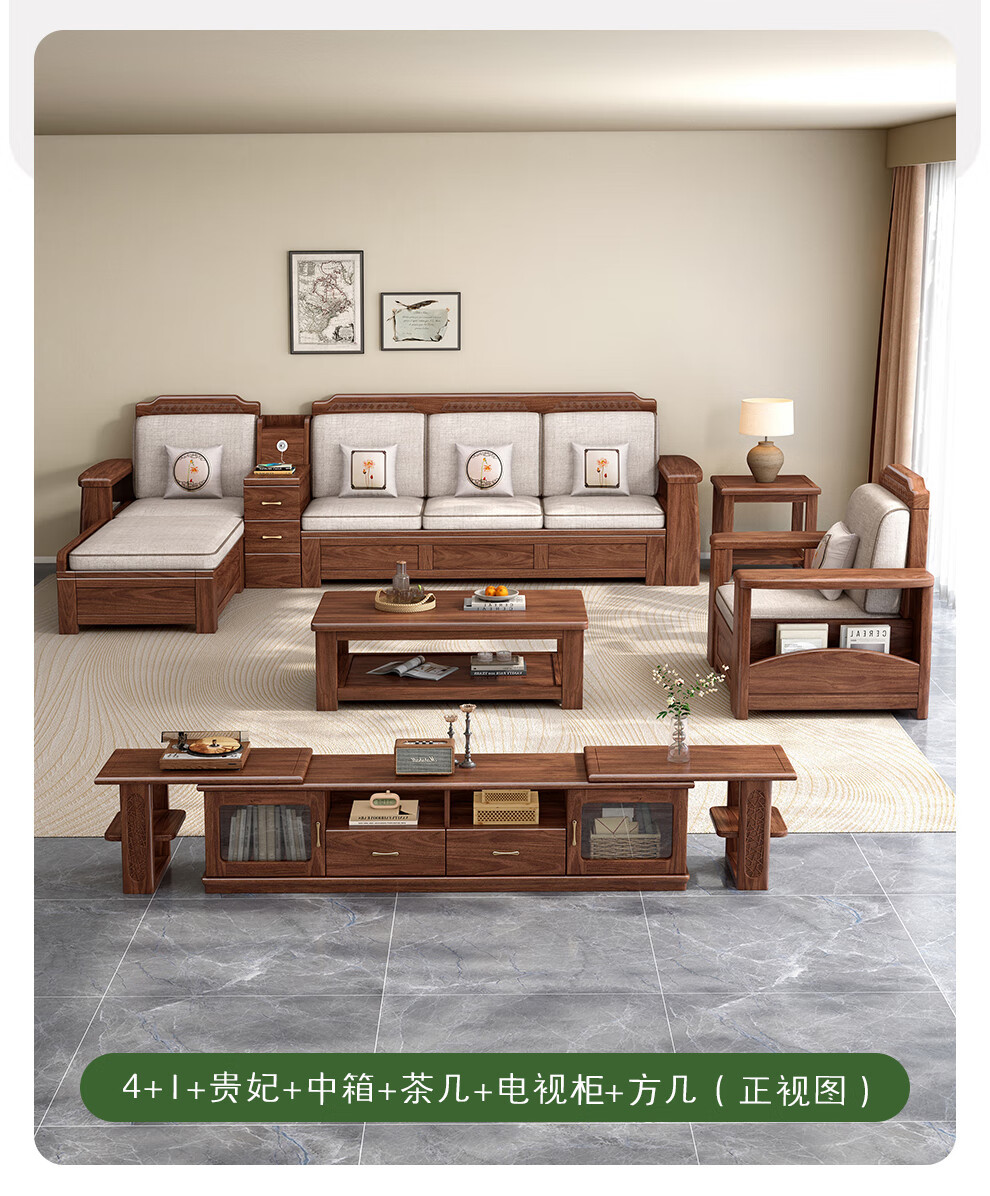새로운 중국 스타일 블랙 호두 솔리드 우드 소파 거실 현대 간단한 작은 아파트 팔걸이 저장 상자 유형 나무 소파스토어 가기