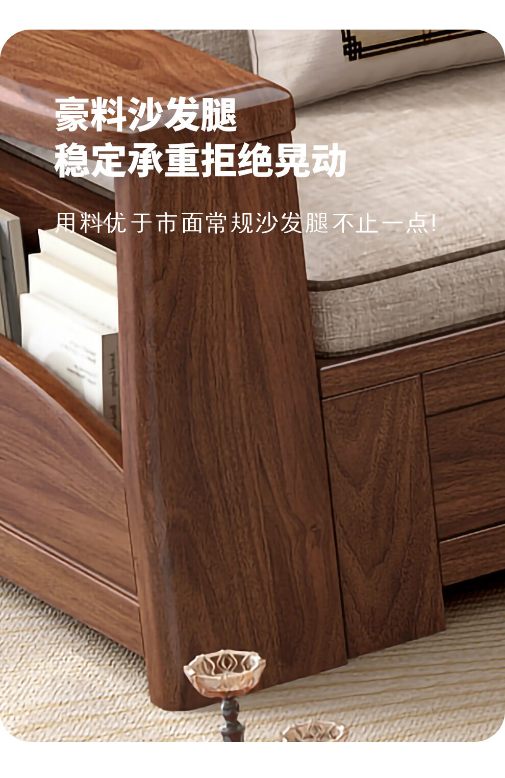 새로운 중국 스타일 블랙 호두 솔리드 우드 소파 거실 현대 간단한 작은 아파트 팔걸이 저장 상자 유형 나무 소파