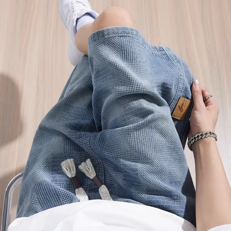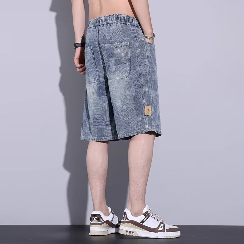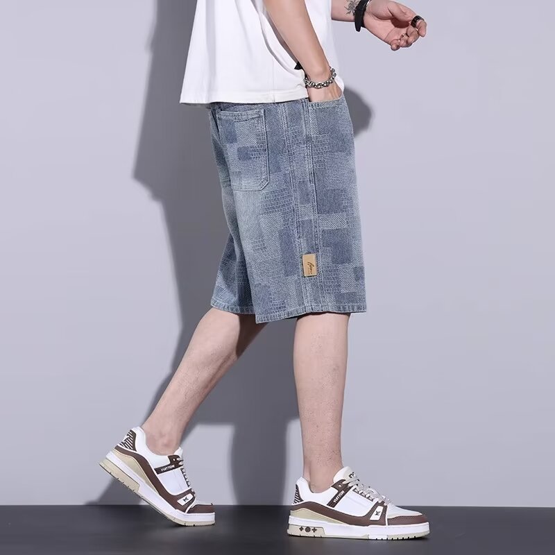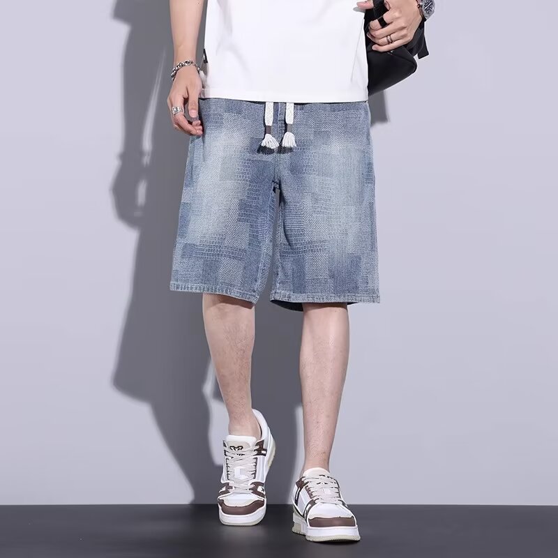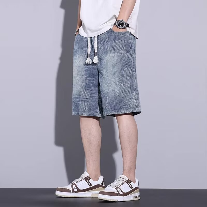 스타 패턴 데님 반바지 남자 여름 새로운 미국 스타일 느슨한 5 점 캐주얼 5 점 바지스토어 가기