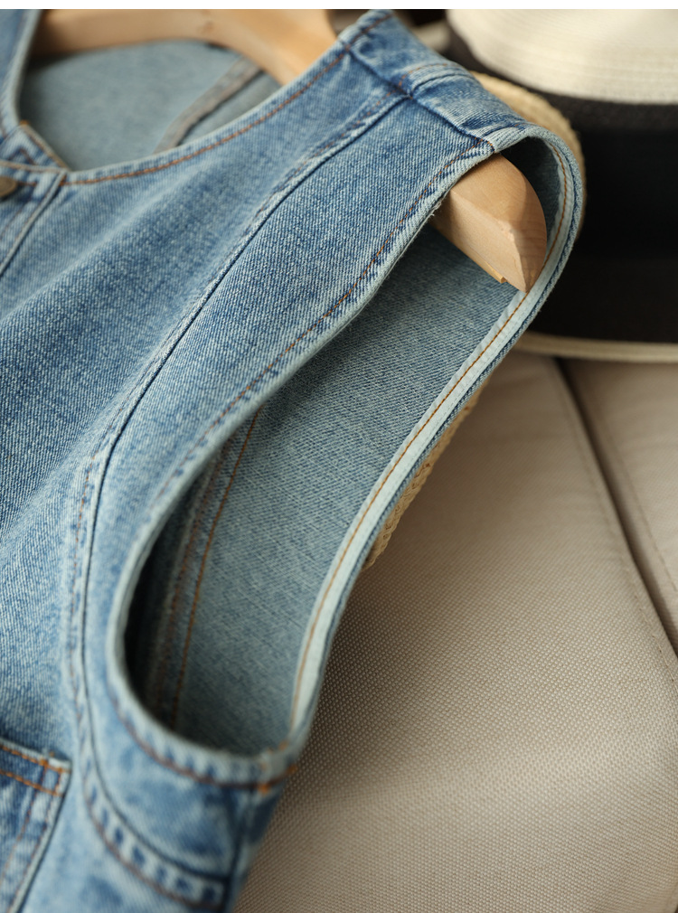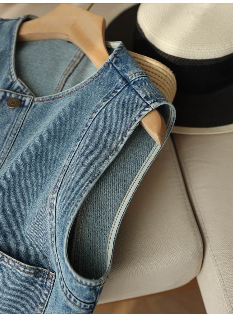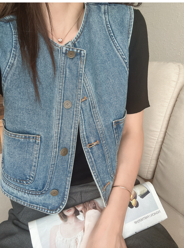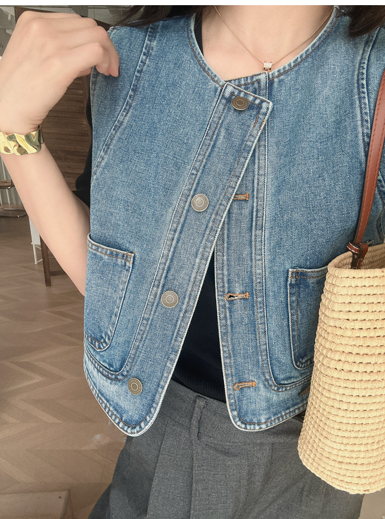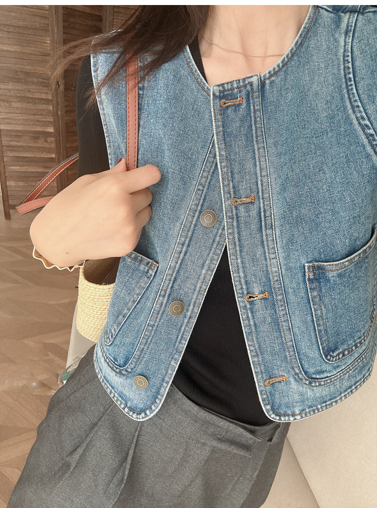 유행과 서양식 올매치 쌓인 데님 조끼 여성 봄과 여름 느슨한 짧은 민소매 재킷 캐주얼 탑