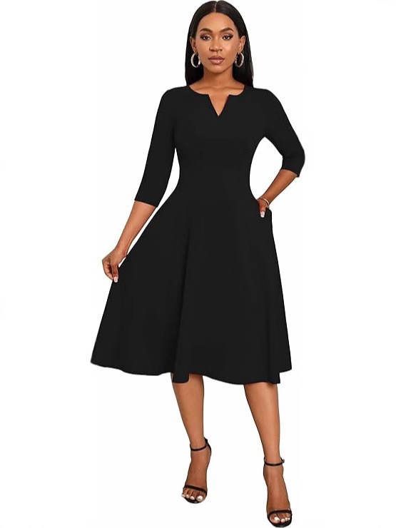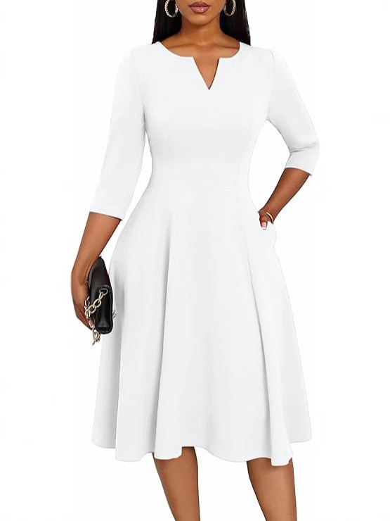 아마존 중간 길이 원피스 적합 슬림 핏 혼 원피스 7 소매 웨딩 게스트 작업 원피스