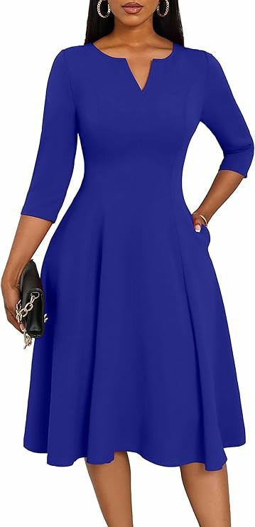 아마존 중간 길이 원피스 적합 슬림 핏 혼 원피스 7 소매 웨딩 게스트 작업 원피스스토어 가기