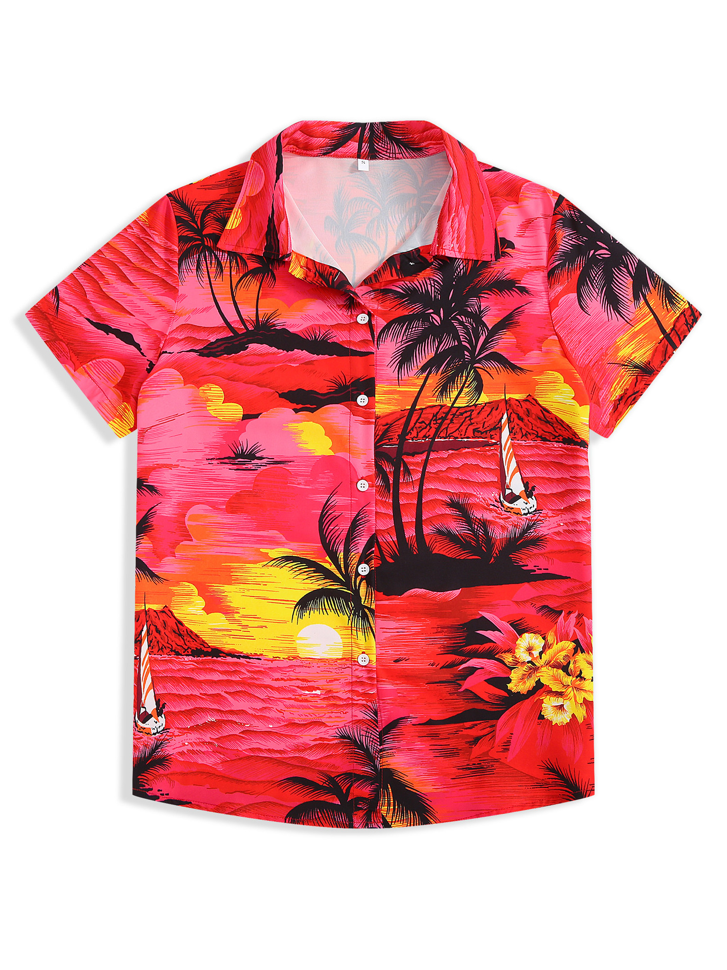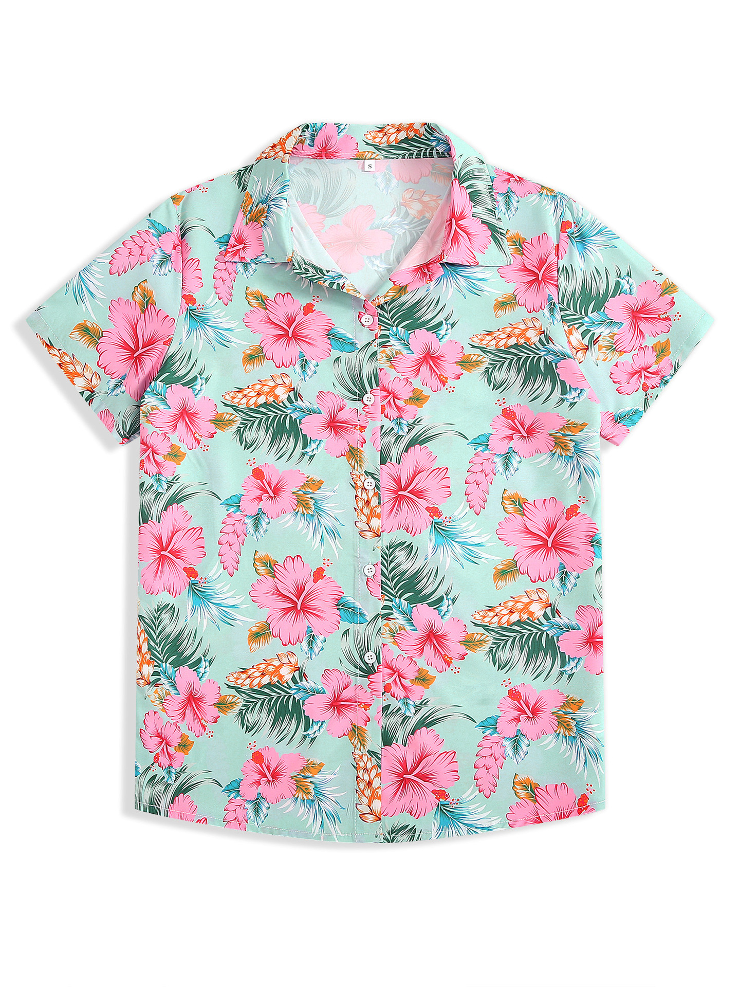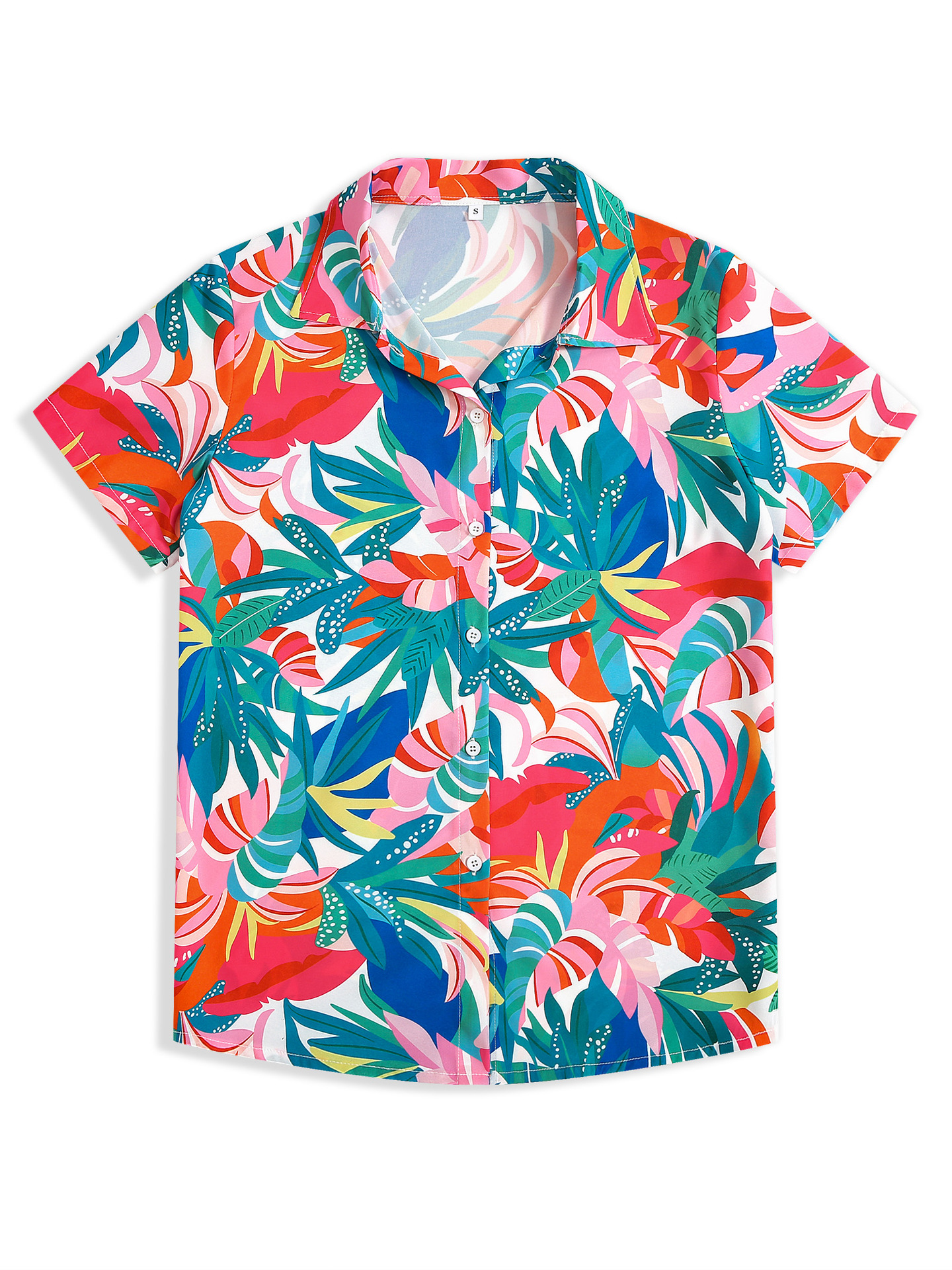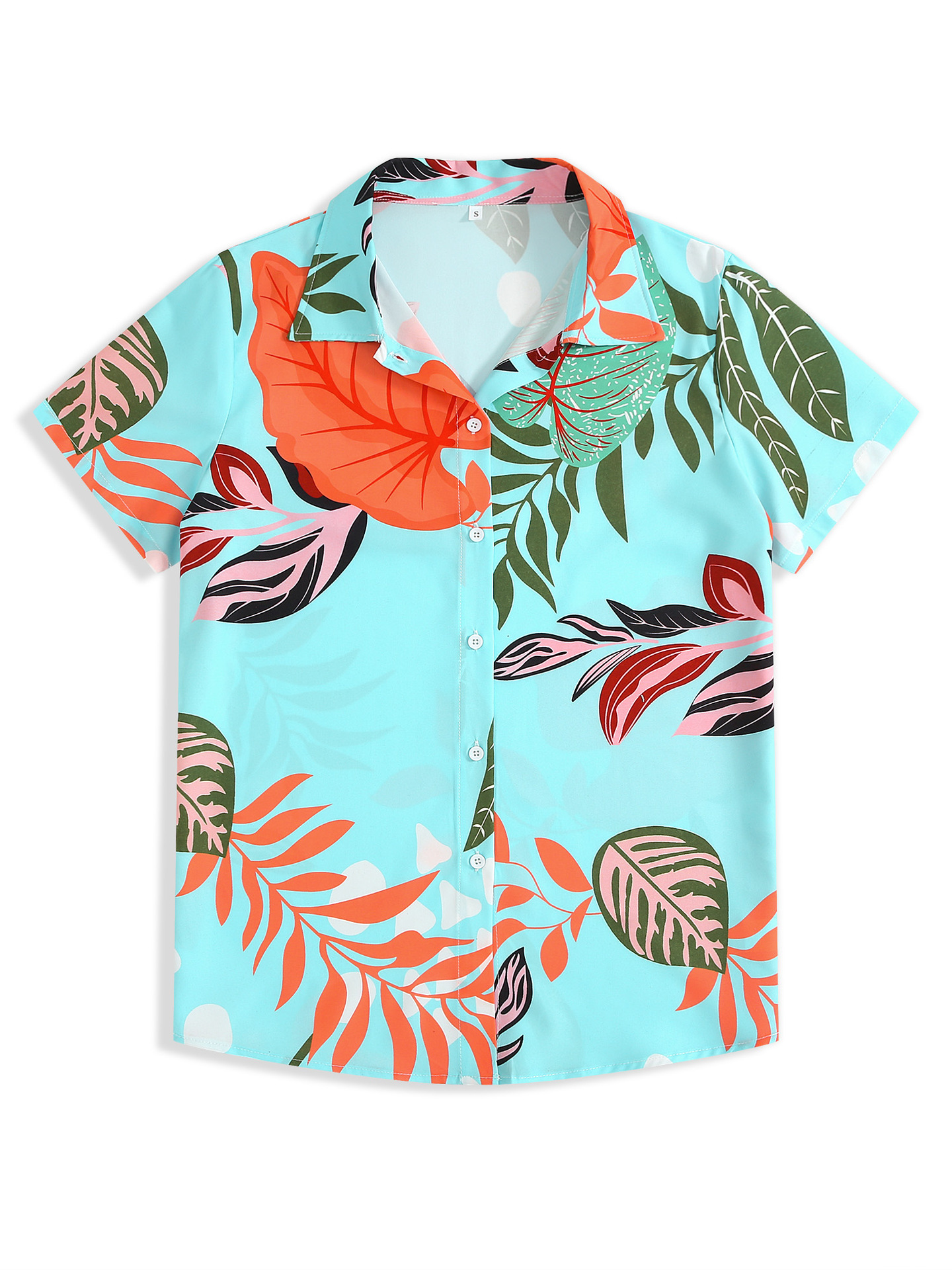 국경 봄과 여름 하와이 휴가 캐주얼 착용 디지털 인쇄 블라우스 엘 버튼 반팔 느슨한 탑