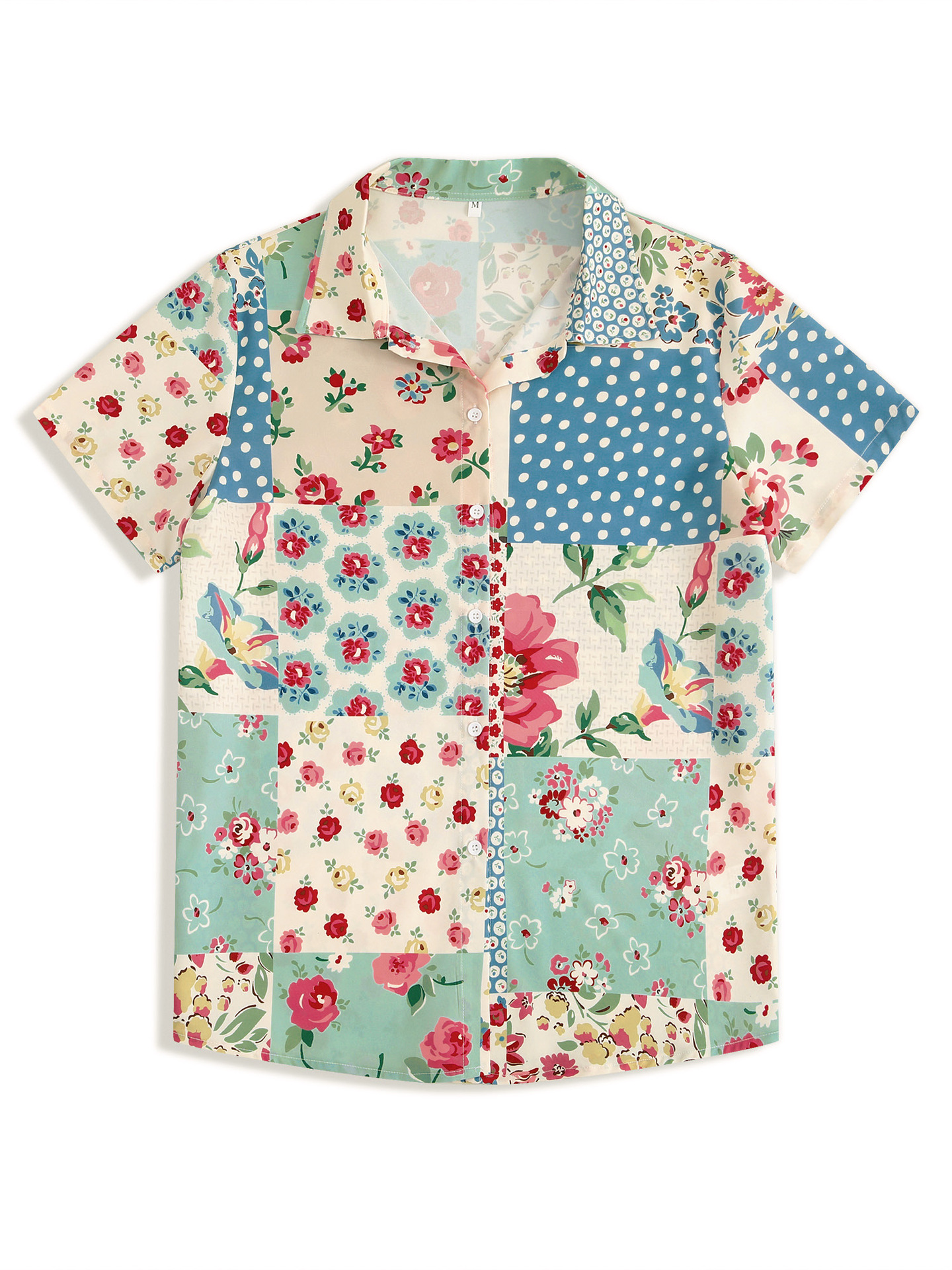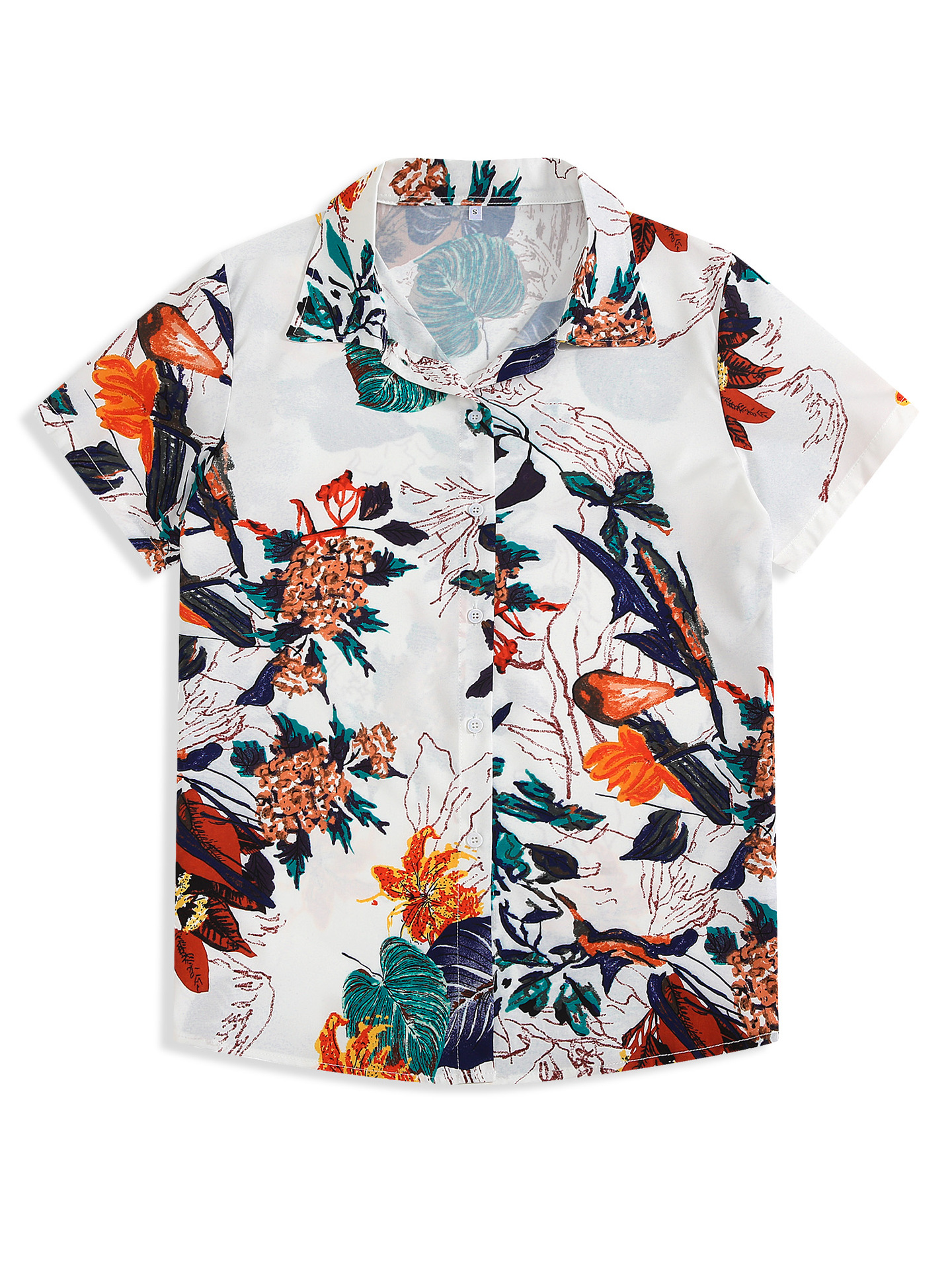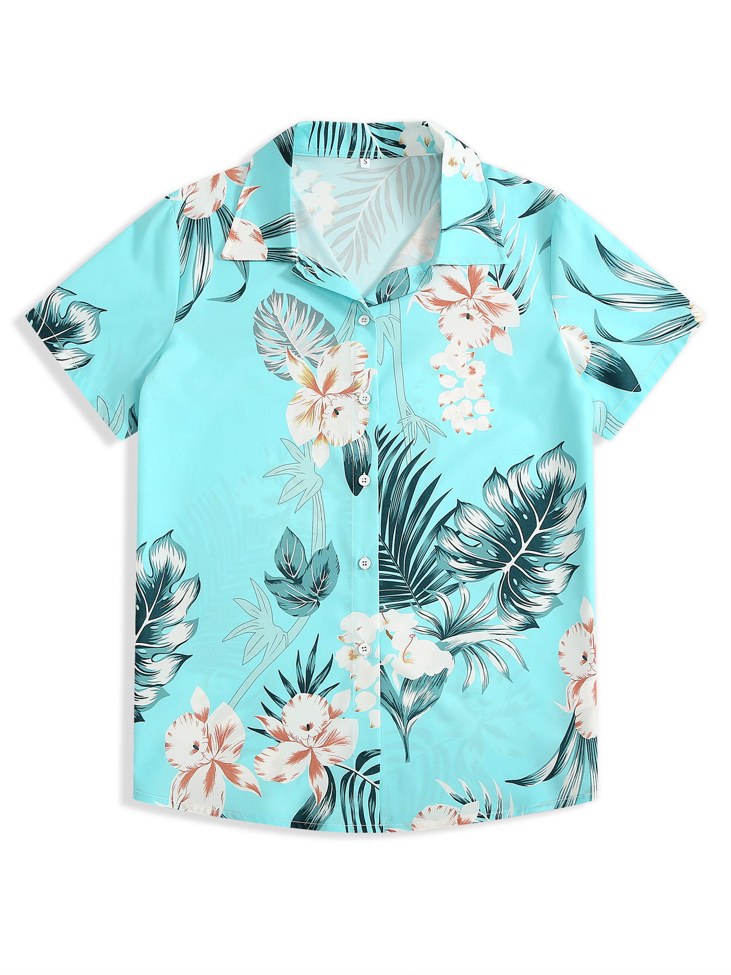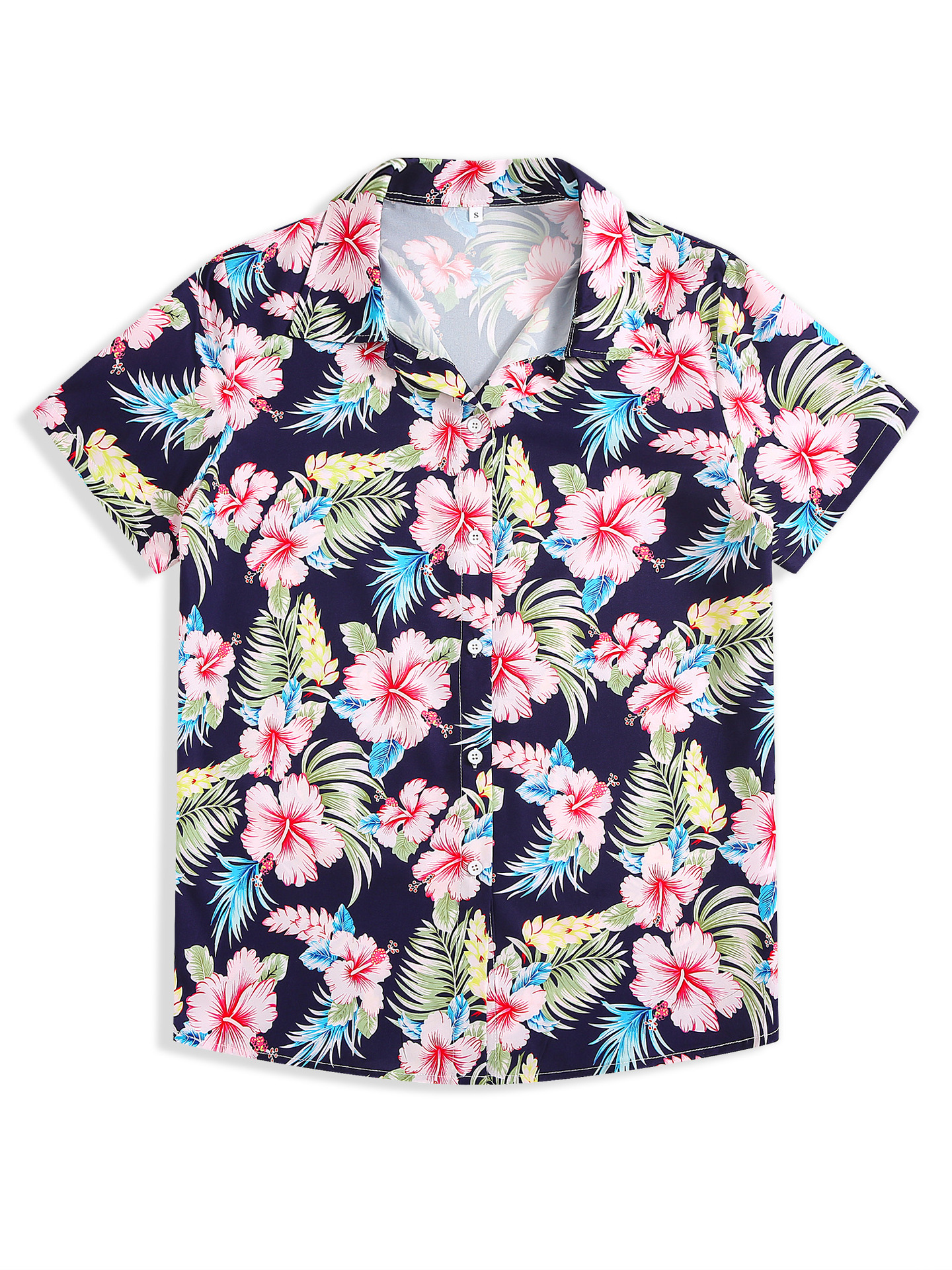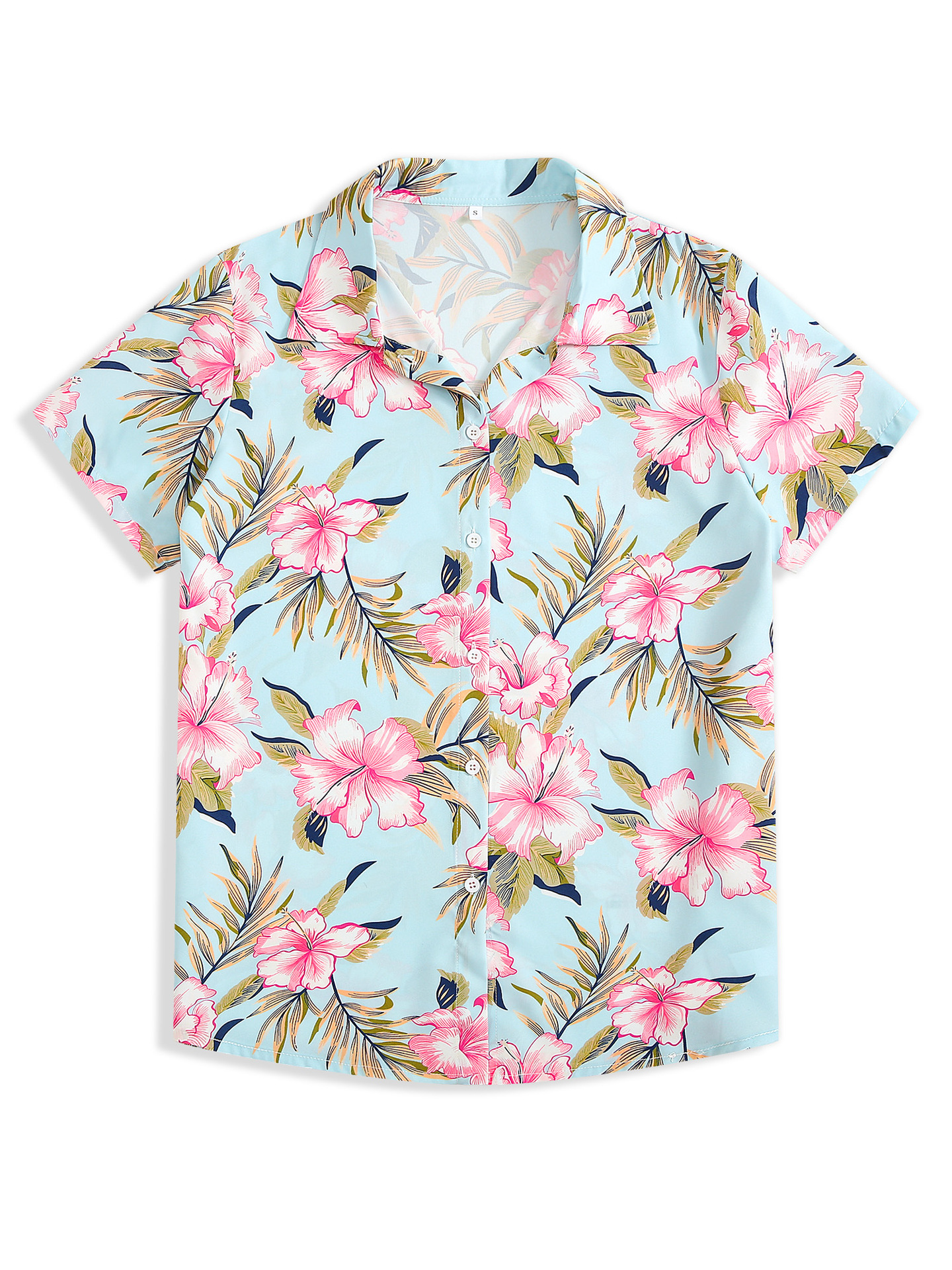 국경 봄과 여름 하와이 휴가 캐주얼 착용 디지털 인쇄 블라우스 엘 버튼 반팔 느슨한 탑