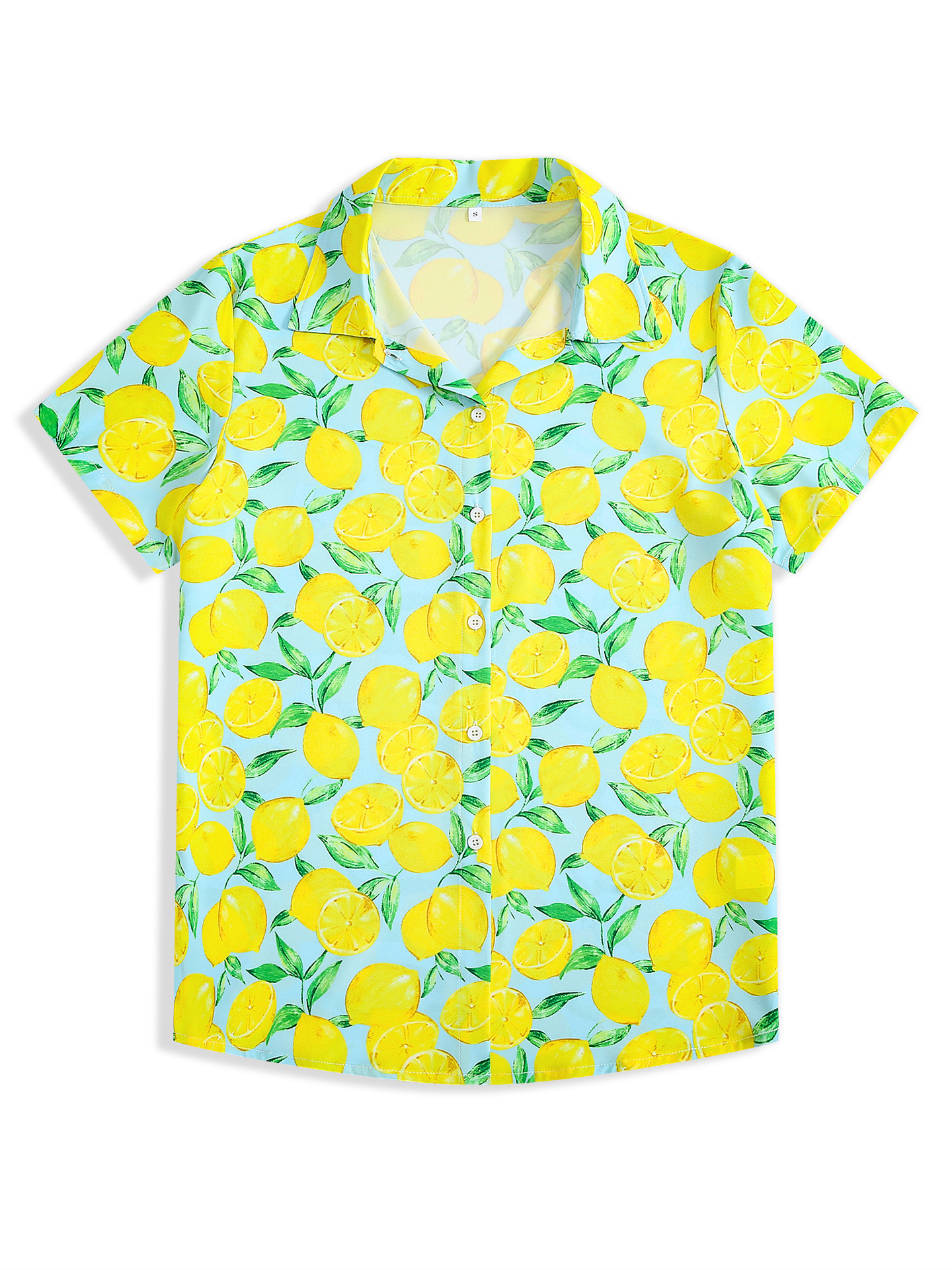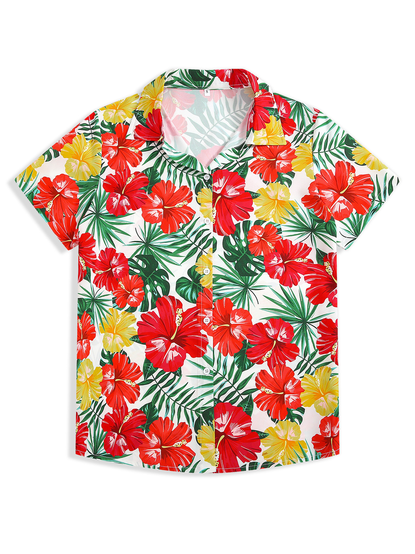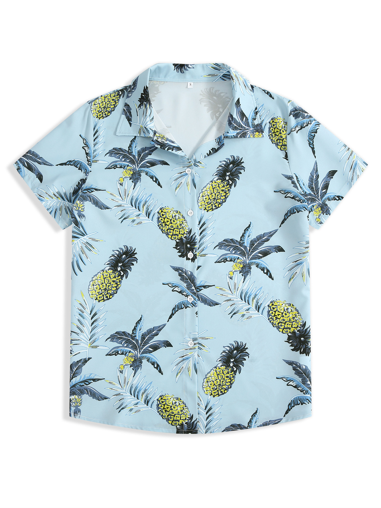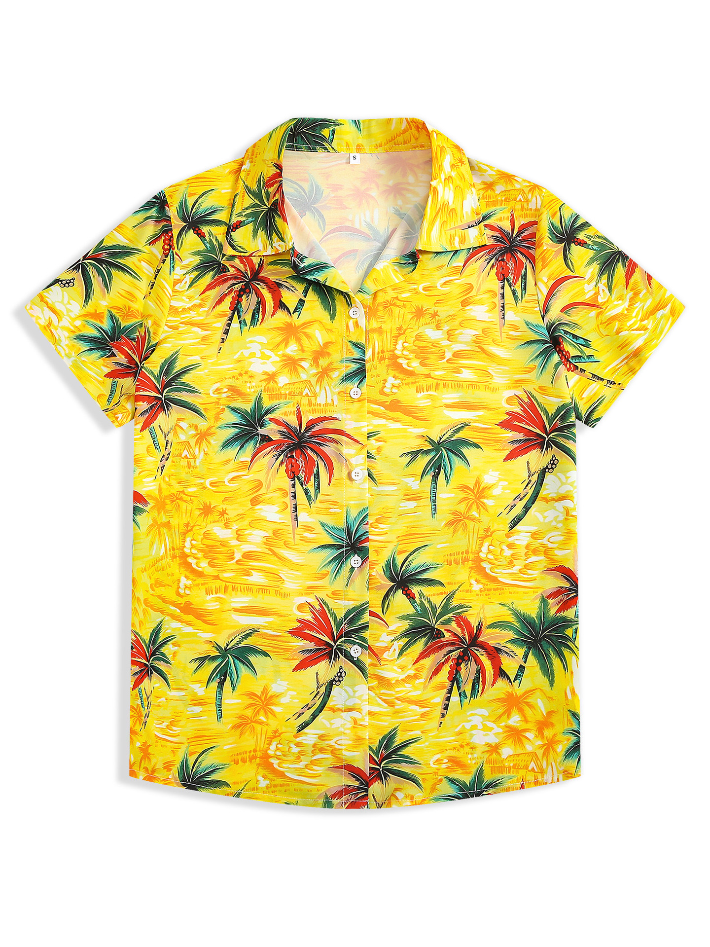 국경 봄과 여름 하와이 휴가 캐주얼 착용 디지털 인쇄 블라우스 엘 버튼 반팔 느슨한 탑