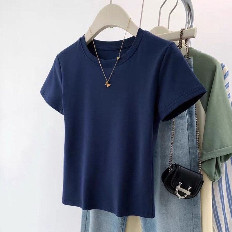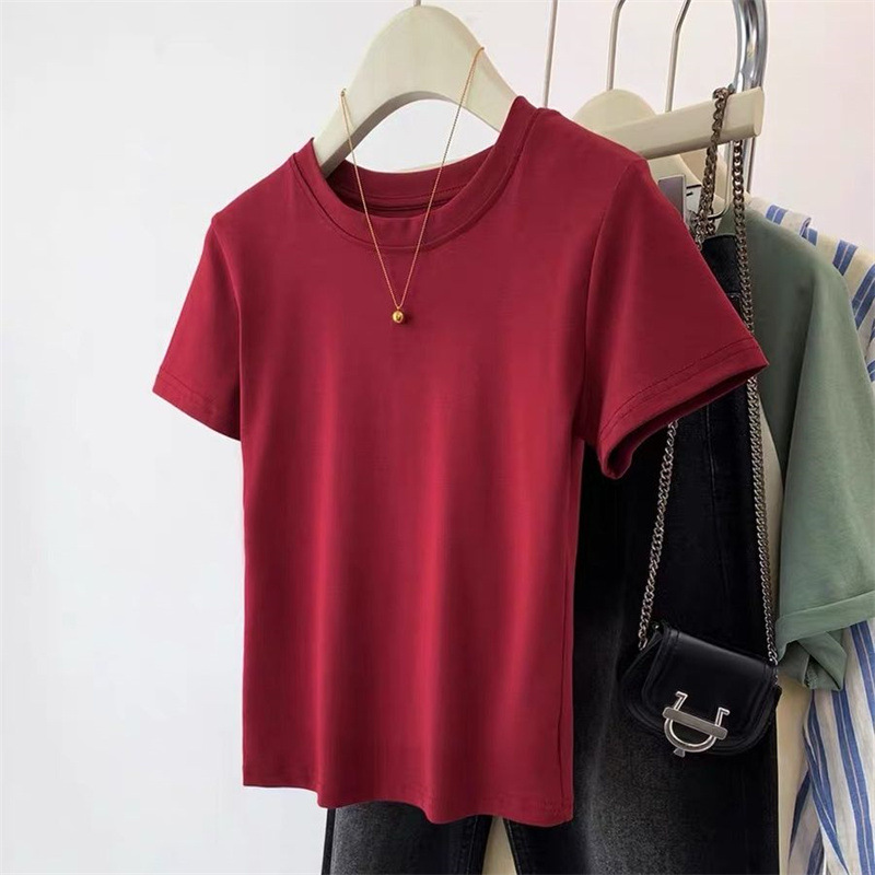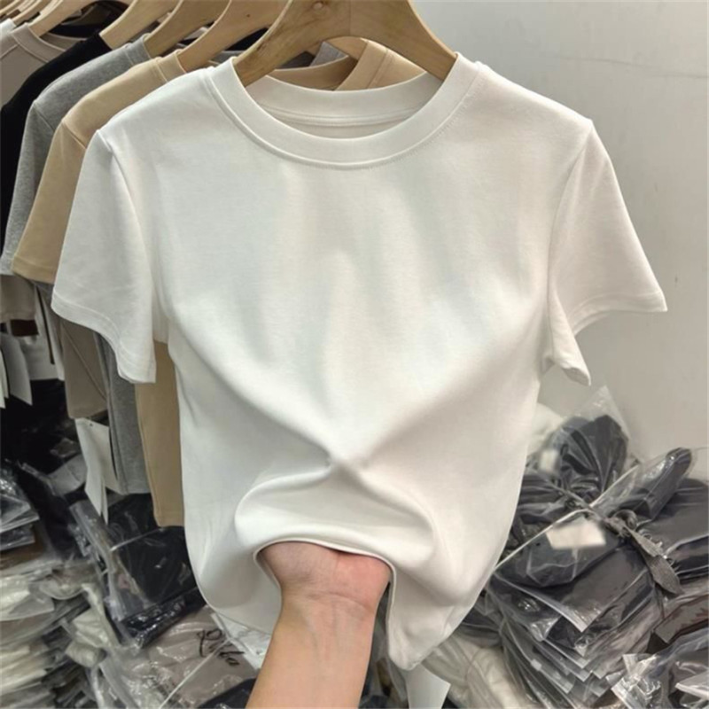 베이직 순면 화이트 숏 슬리브 티셔츠 여성 여름 슬림핏 라운드넥 슬리밍 이너웨어 탑