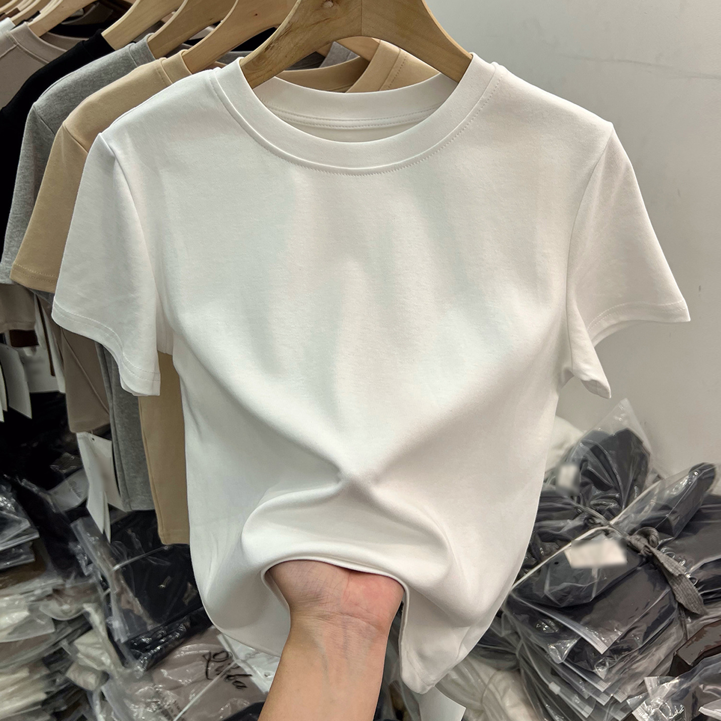 베이직 순면 화이트 숏 슬리브 티셔츠 여성 여름 슬림핏 라운드넥 슬리밍 이너웨어 탑스토어 가기