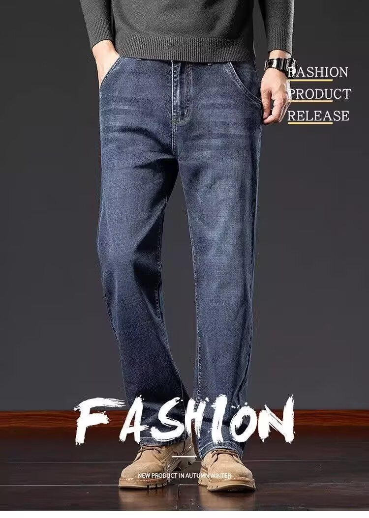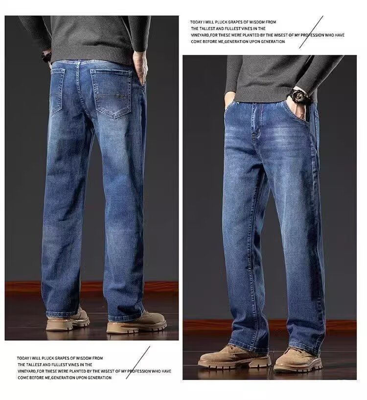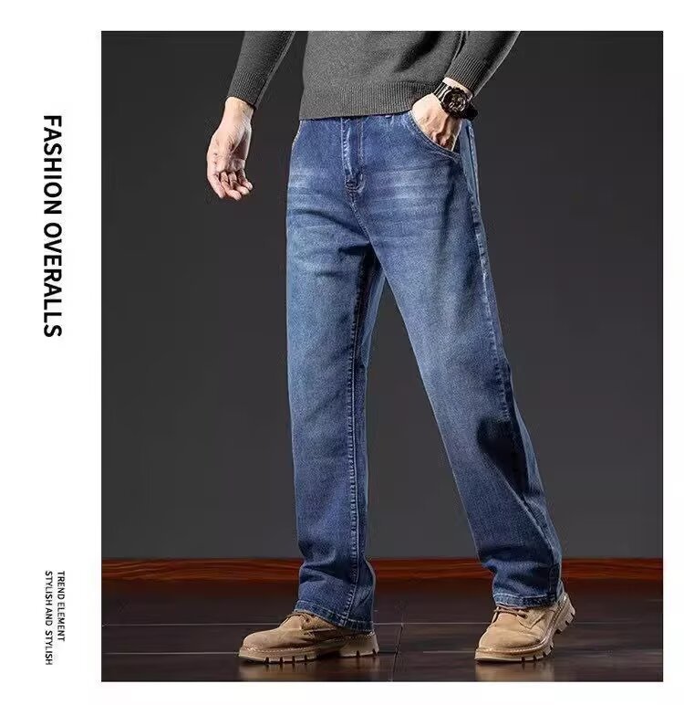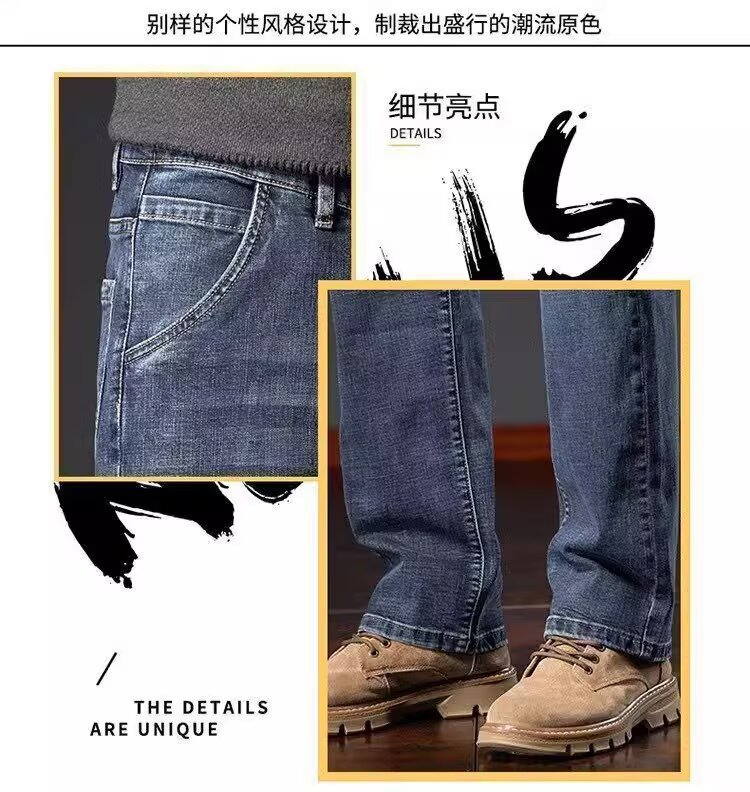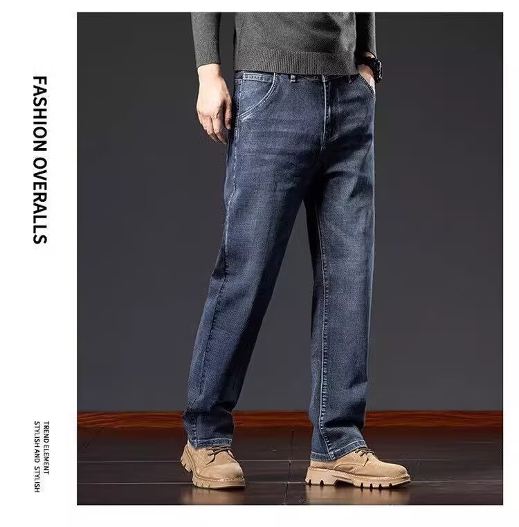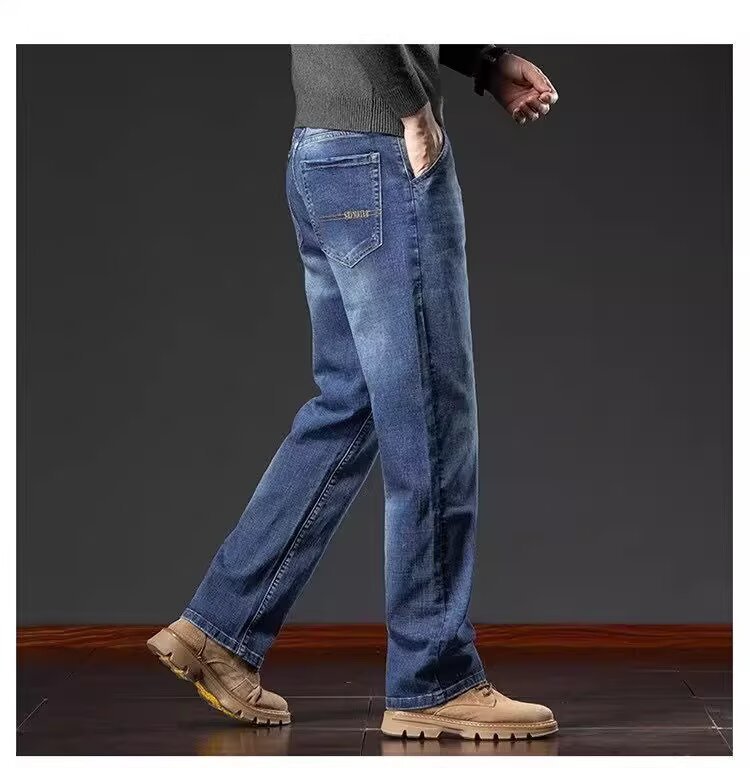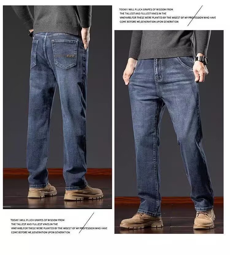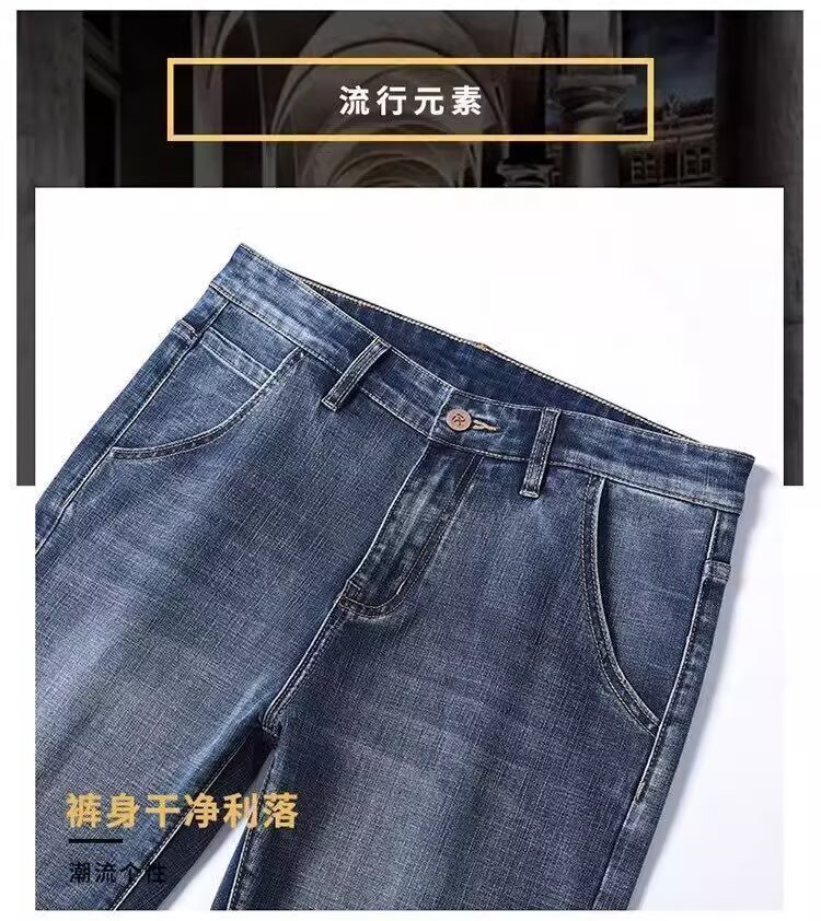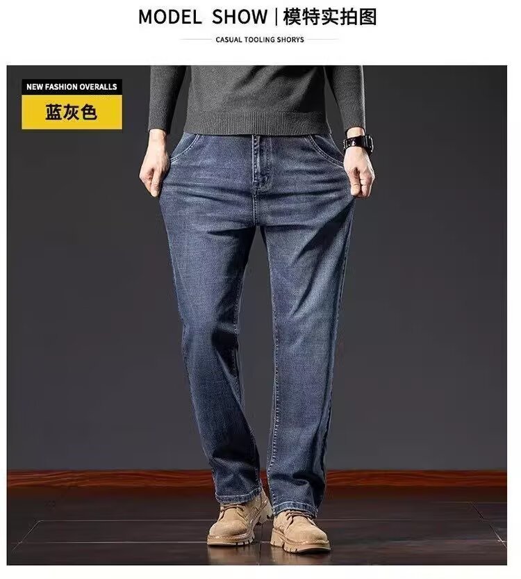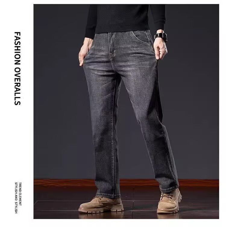 2025 새로운 남자 청바지 남자 봄과 가을 스트레이트 로우 하이 엔드 올 매치 스트레치 비즈니스 캐주얼 롱 바지스토어 가기