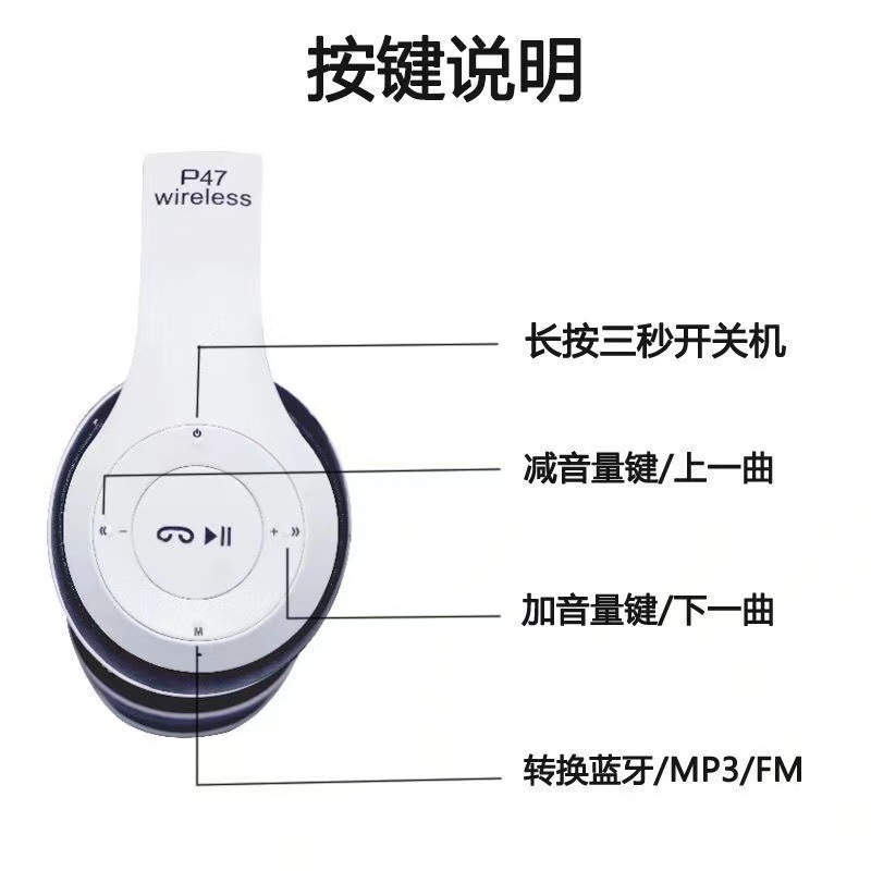 국경 간 폭발 P47 무선 헤드셋 블루투스 5.0 헤드셋 접이식 스테레오 휴대 전화 컴퓨터 제조 업체 도매스토어 가기