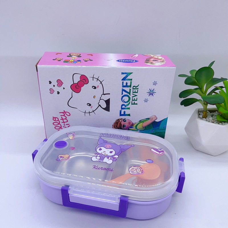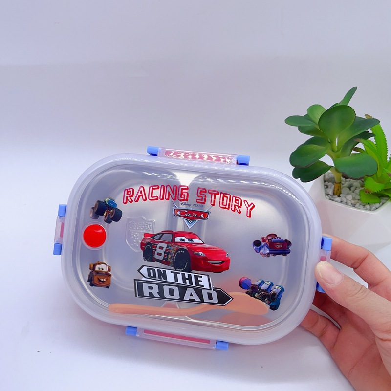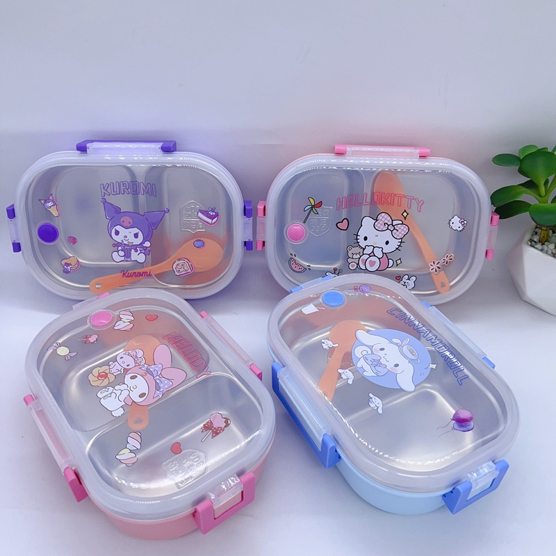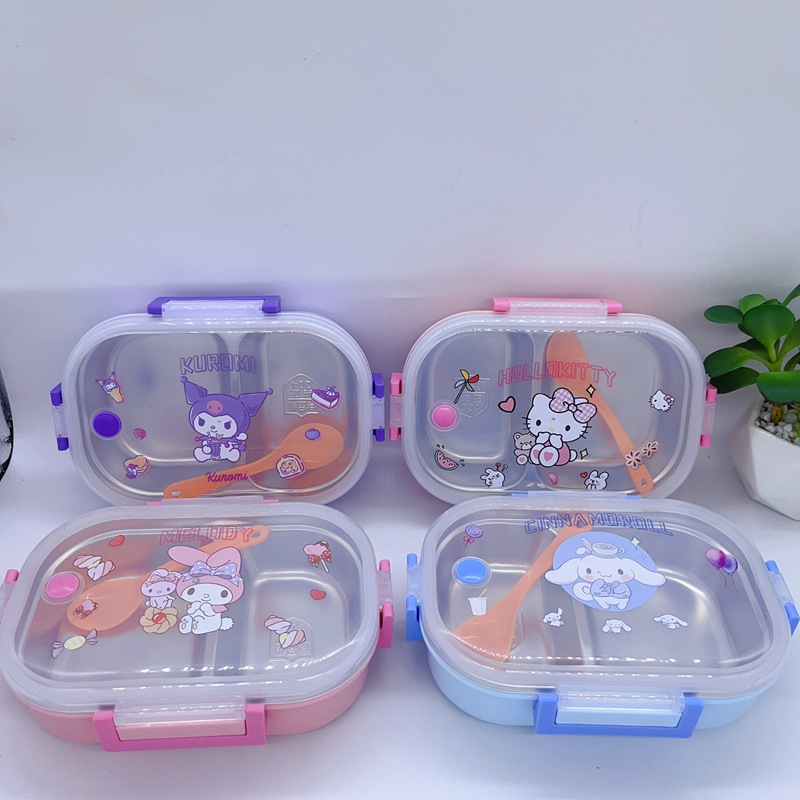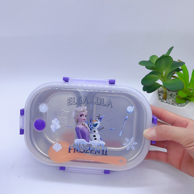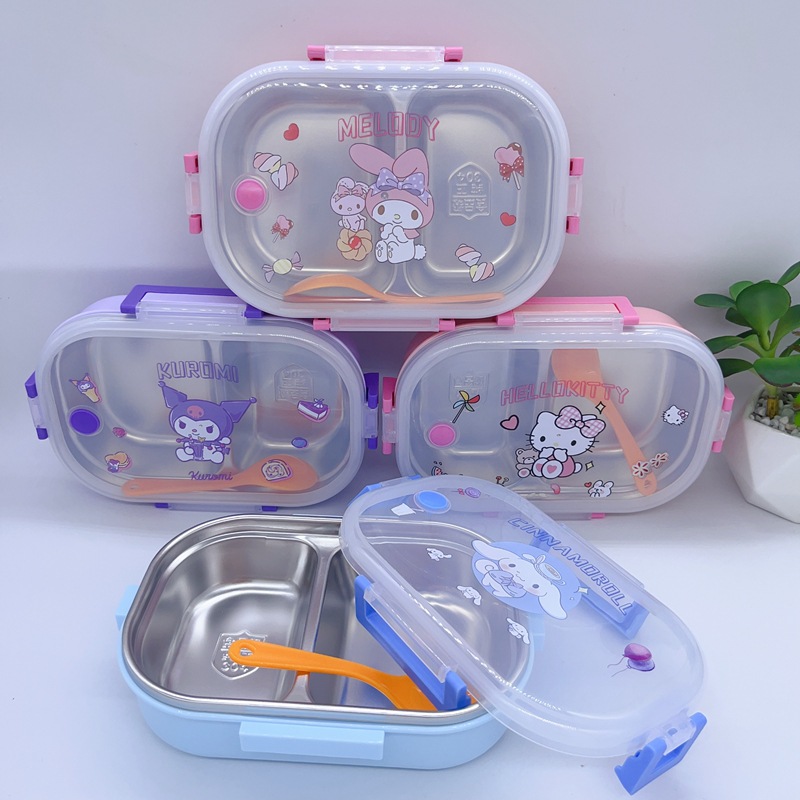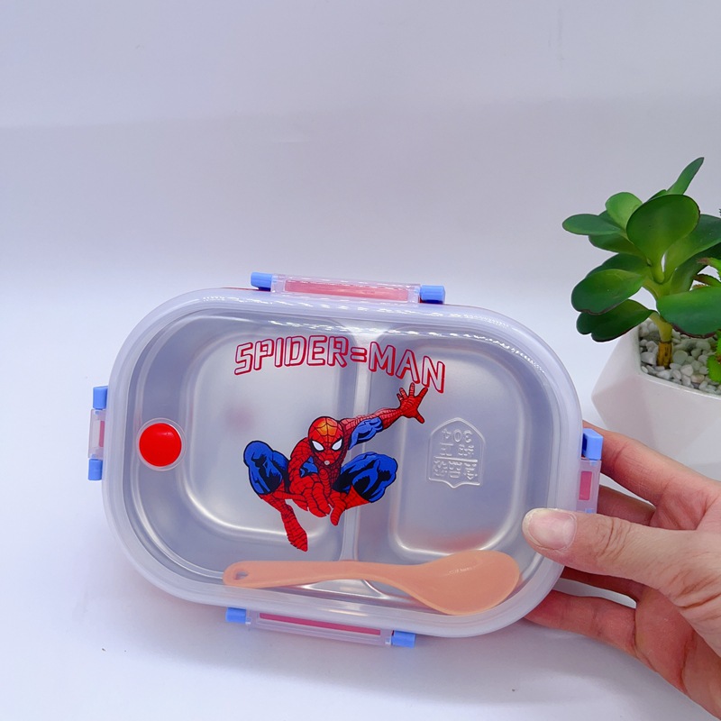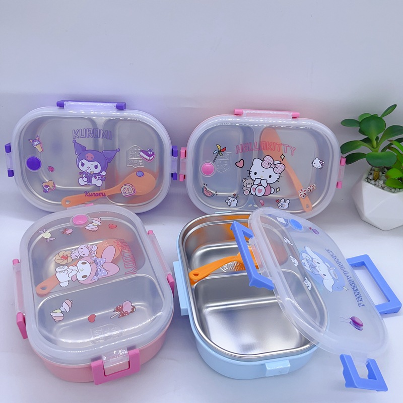 새로운 만화 투명 스테인레스 스틸 2 칸 도시락 학생 휴대용 휴대용 도시락 귀여운 도시락 숟가락