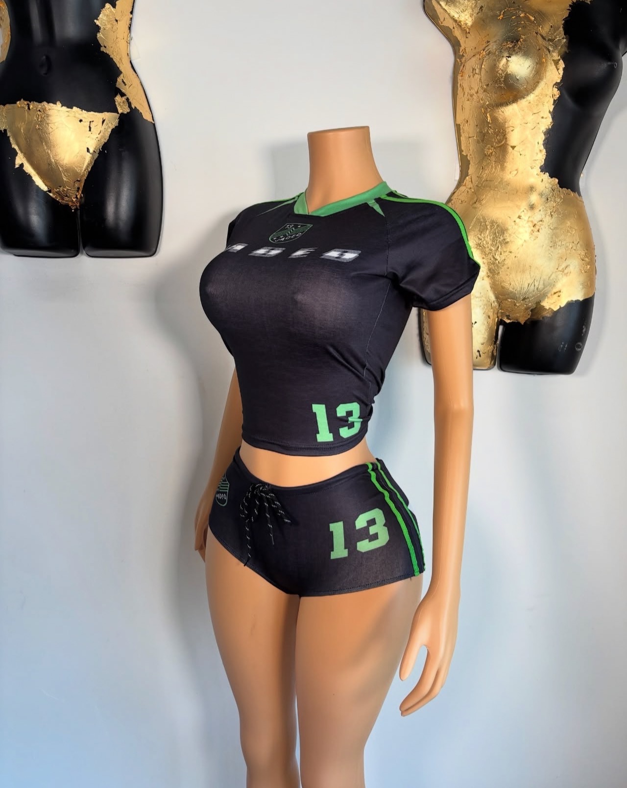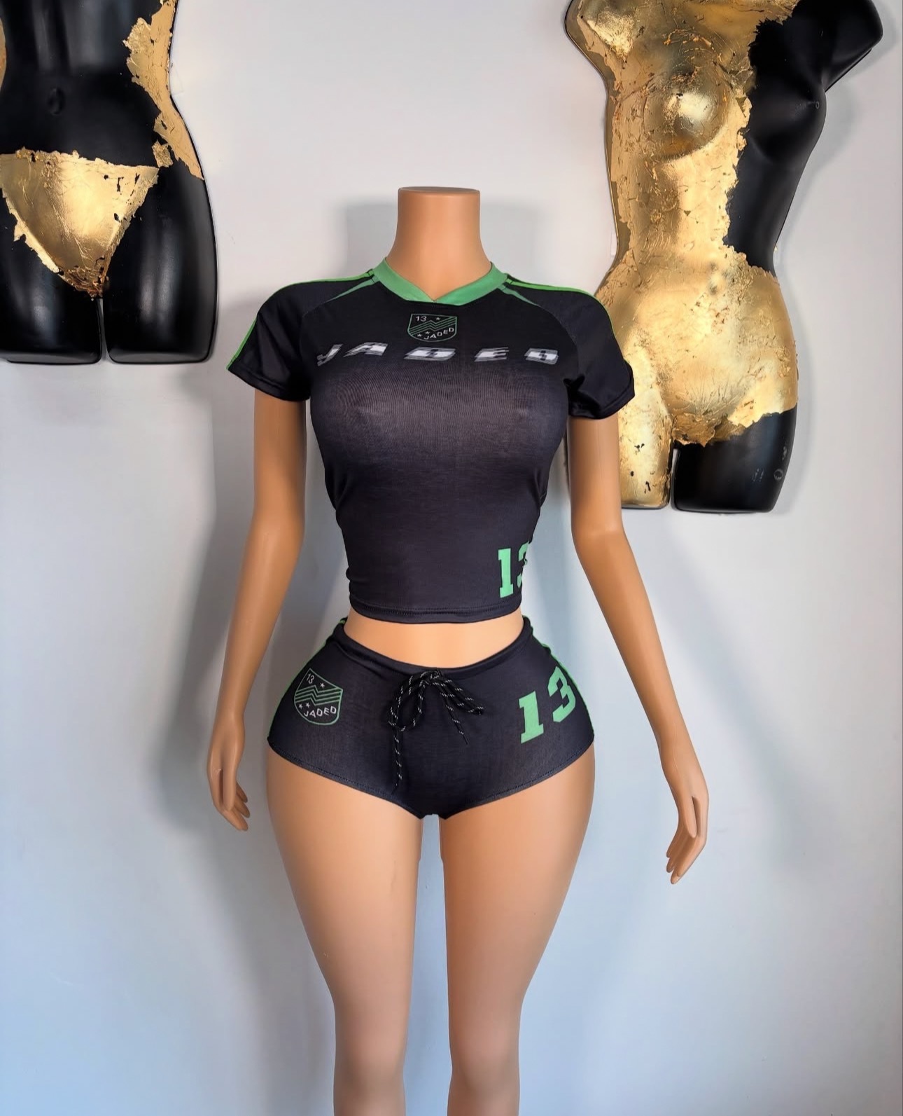 여름 새로운 국경 유럽 및 미국 스포츠 패션 슬림 핏 레트로 스파이스 소녀 편지 인쇄 반팔 상단 반바지 세트스토어 가기