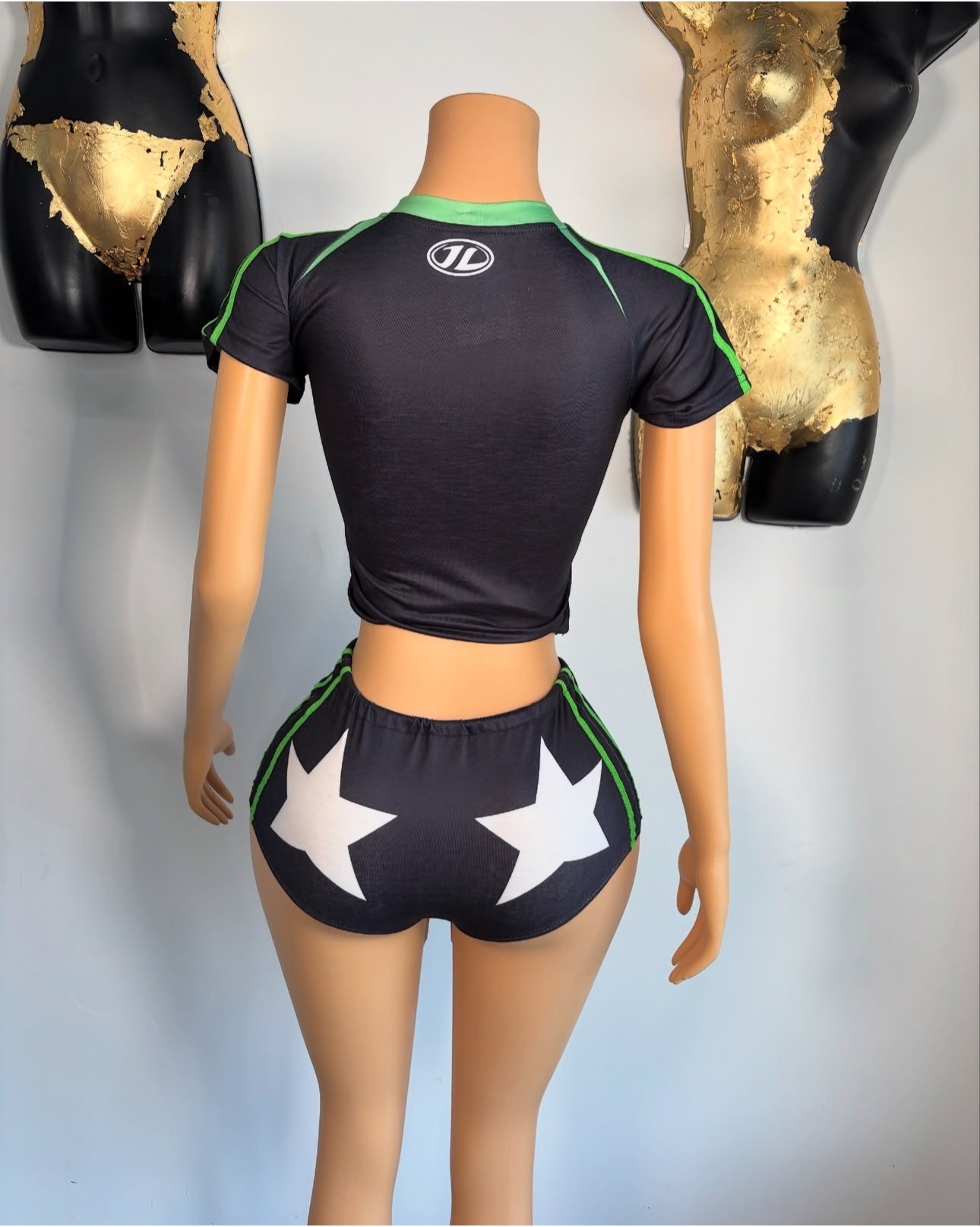 여름 새로운 국경 유럽 및 미국 스포츠 패션 슬림 핏 레트로 스파이스 소녀 편지 인쇄 반팔 상단 반바지 세트
