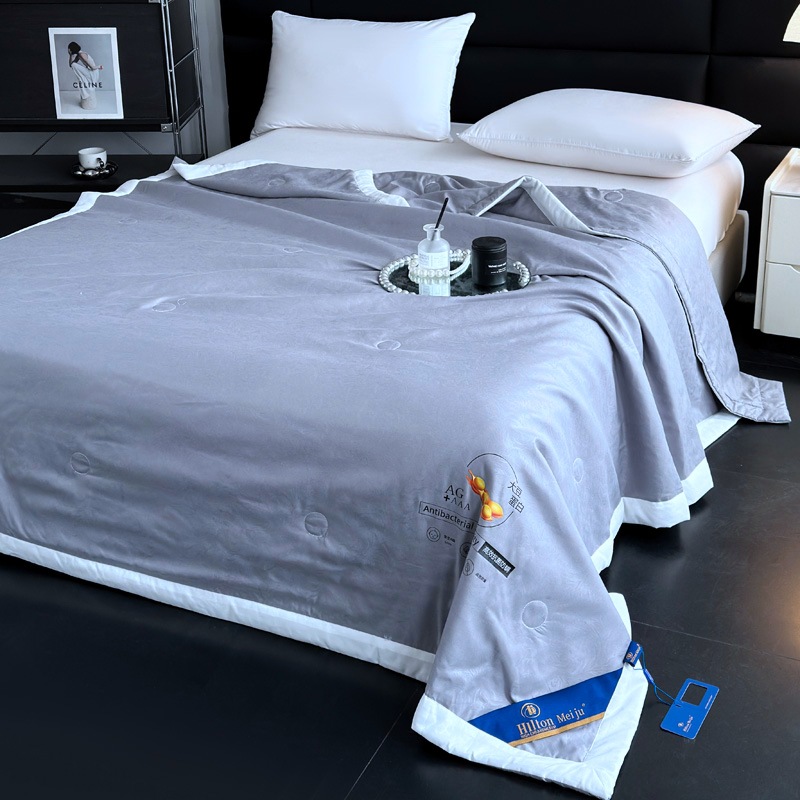 2024 새로운 힐튼 머큐어 클래스 A 씻은 면화 샌딩 양각 손으로 포장 된 가장자리 콩 퀼트 여름 쿨 퀼트 선물 이불
