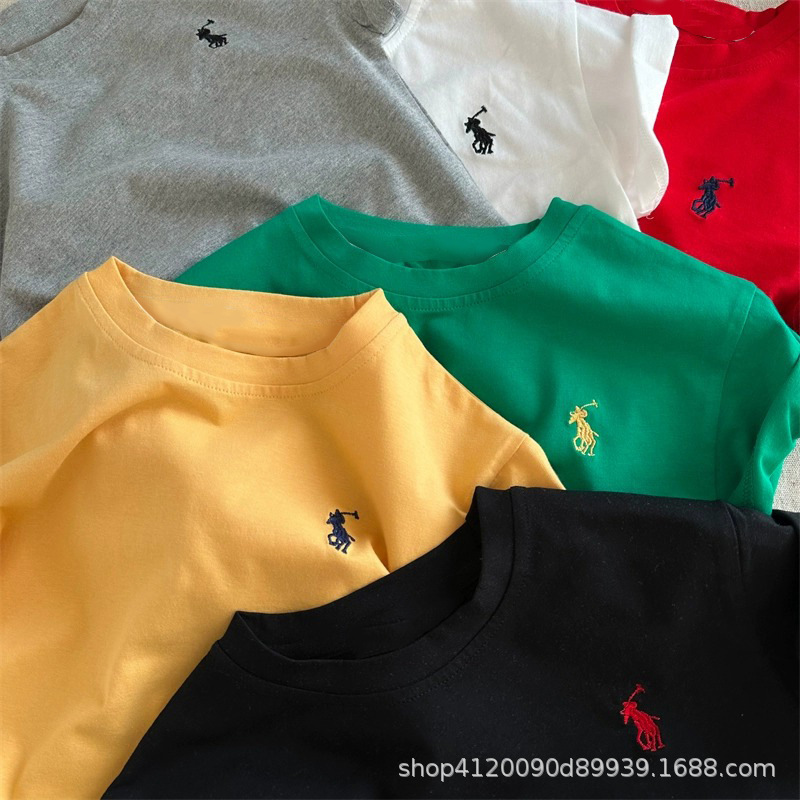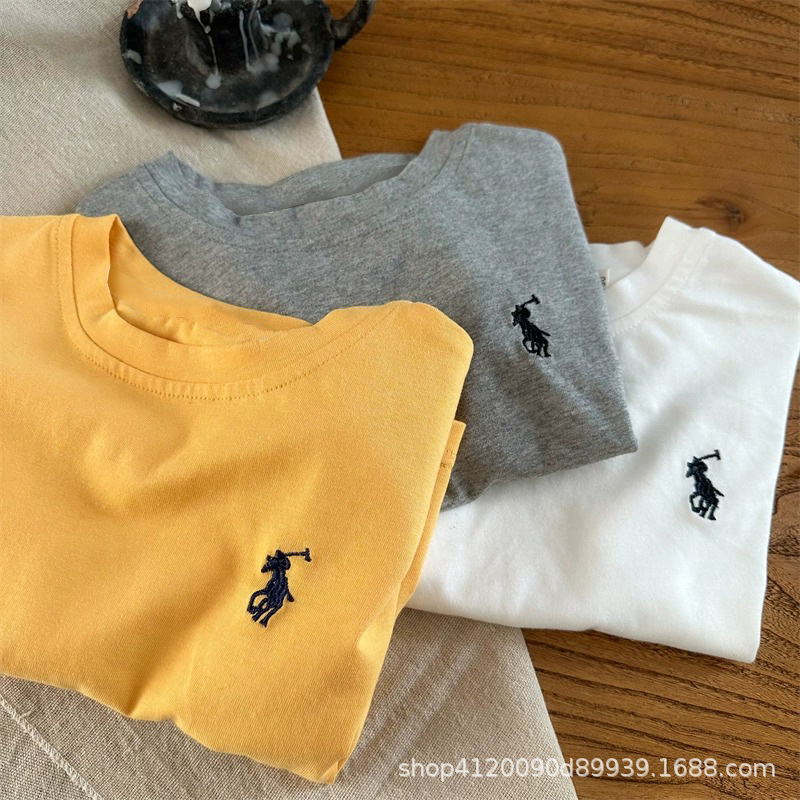 도매 면화 어린이 만화 반팔 티셔츠 봄과 여름 둥근 목 상단 소년 소녀 아기 반팔 여름 아동복