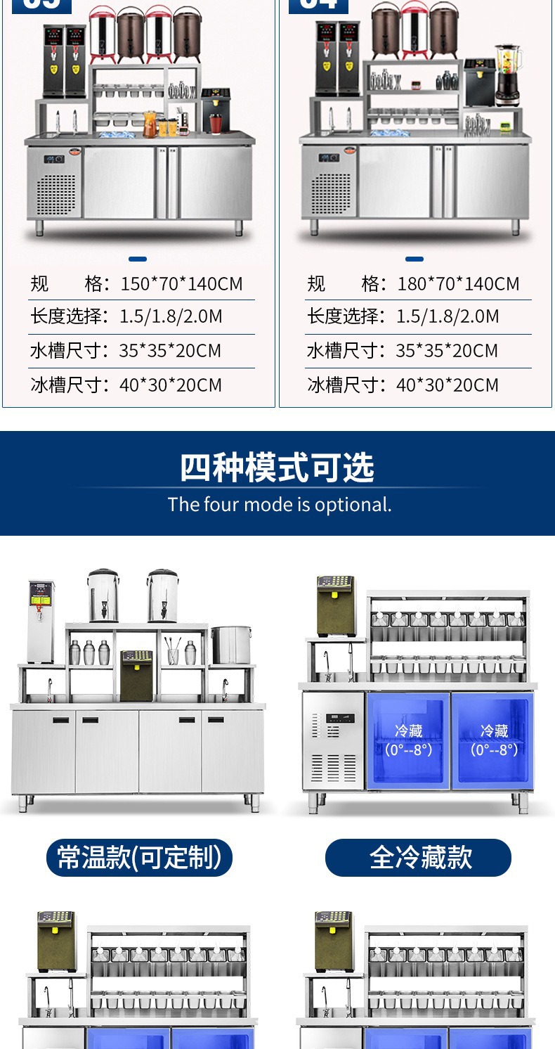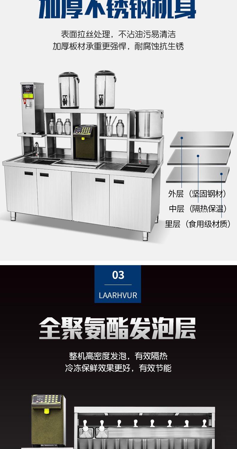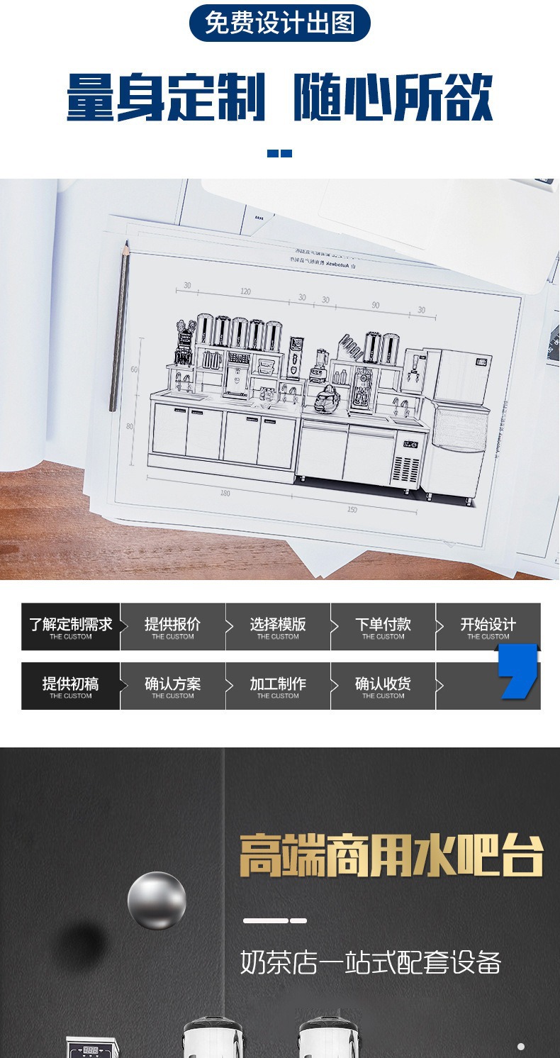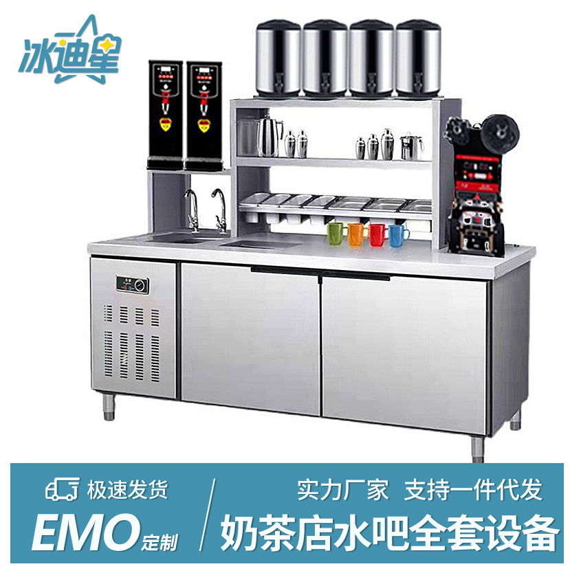 상업용 밀크티 가게 장비, 스테인리스 워터바 테이블, 작업대, 음료 및 버거 가게 냉동 작업대, 쉐이크 테이블 등의 풀세트스토어 가기