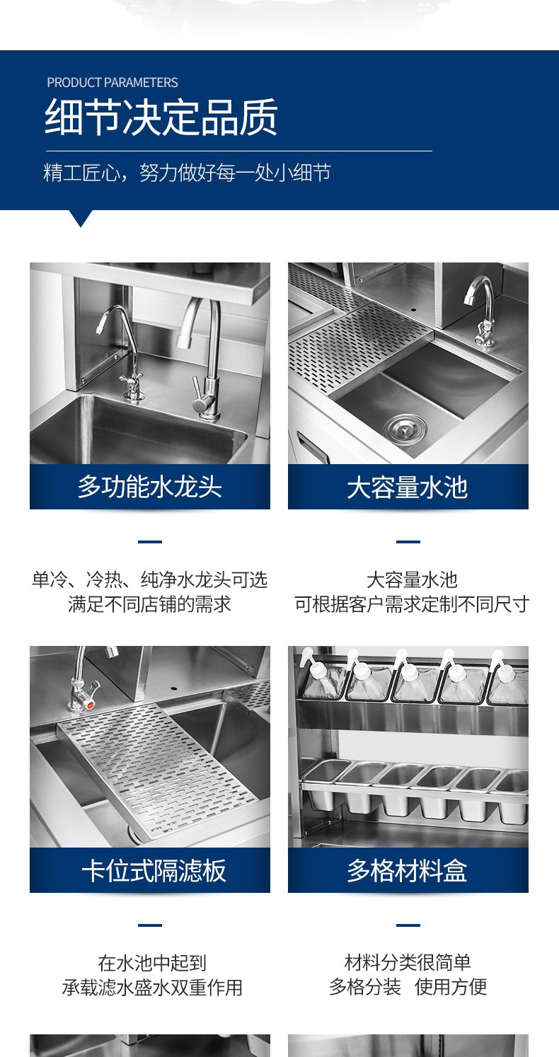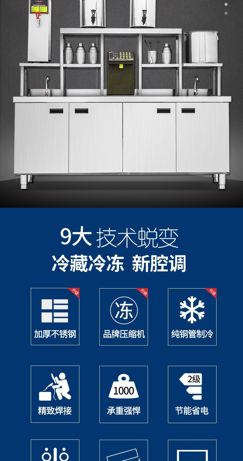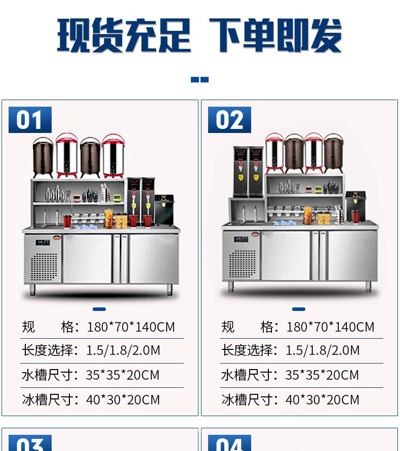 상업용 밀크티 가게 장비, 스테인리스 워터바 테이블, 작업대, 음료 및 버거 가게 냉동 작업대, 쉐이크 테이블 등의 풀세트스토어 가기