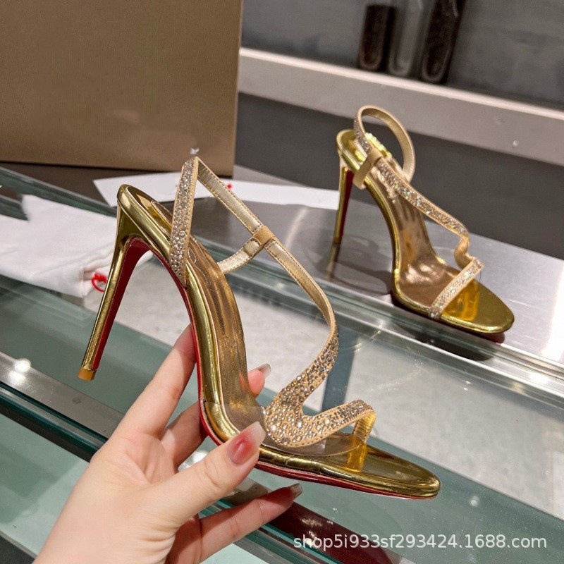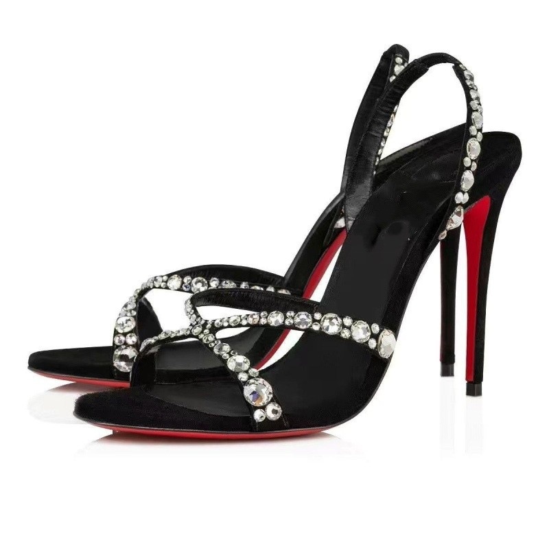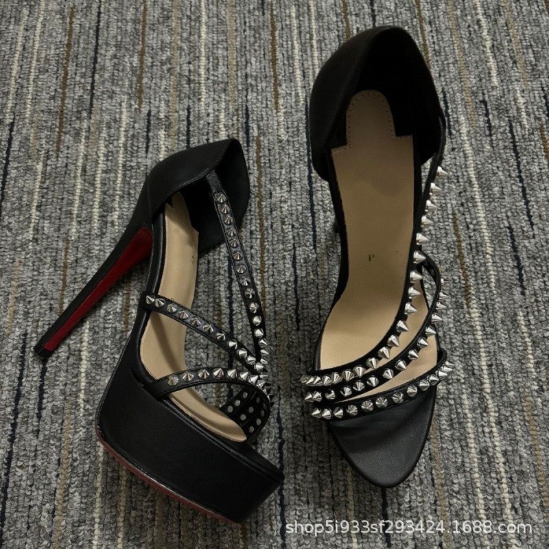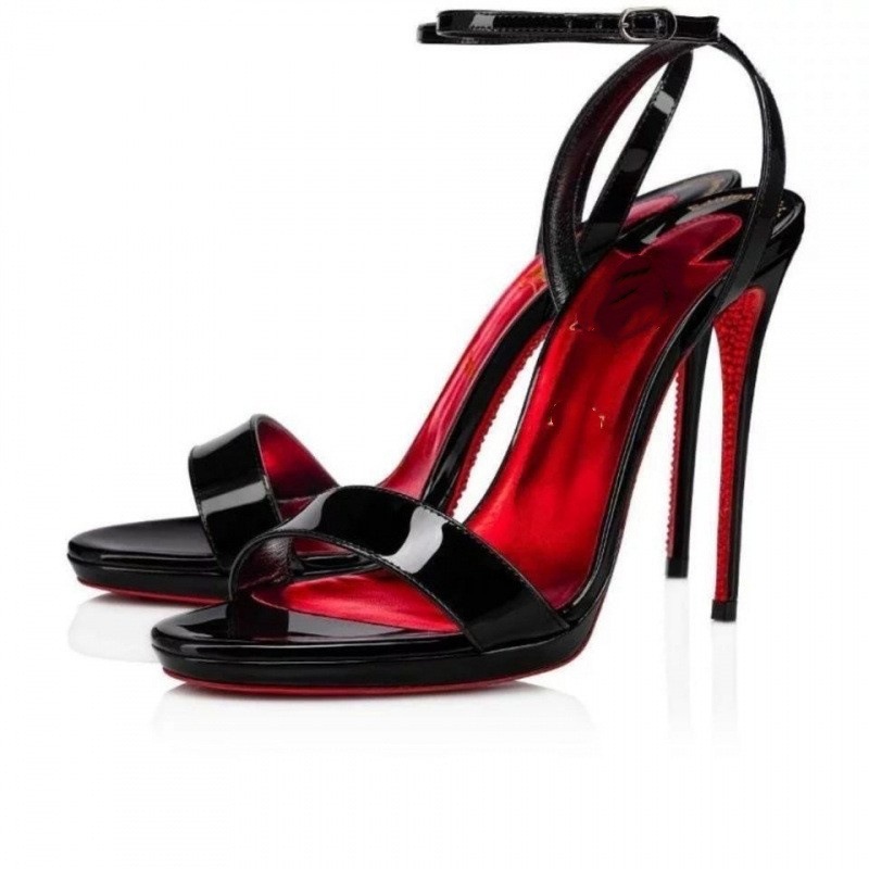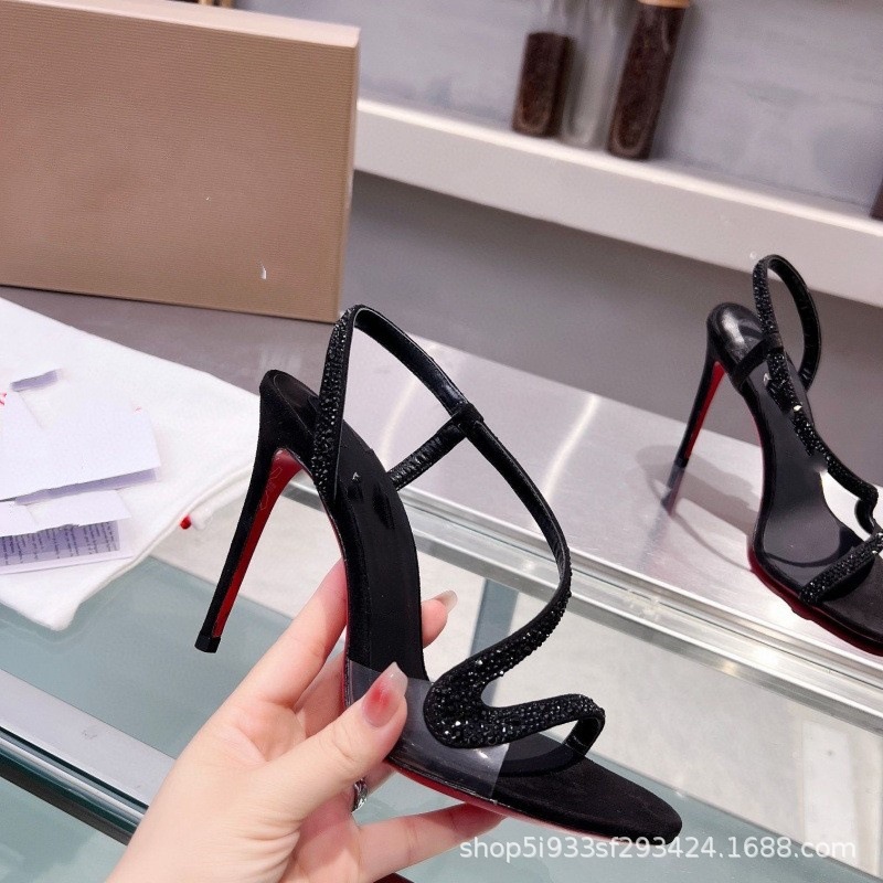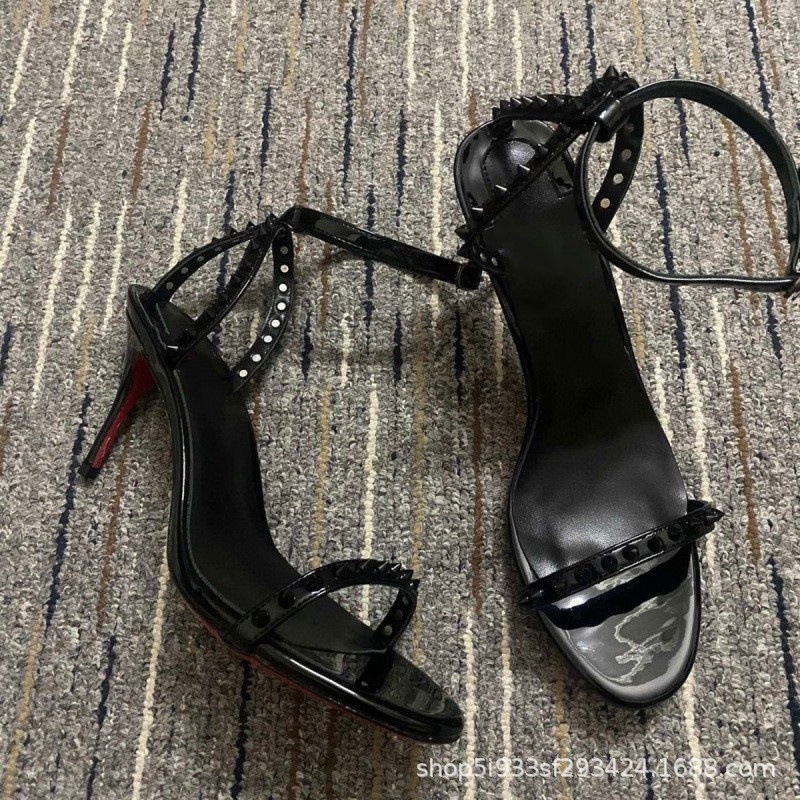 대외 무역 크로스보더 cl 빨간색 바닥 검은 샌들 뾰족한 여성 신발 슬림 하이힐 유행 달콤한 패션쇼 신발스토어 가기