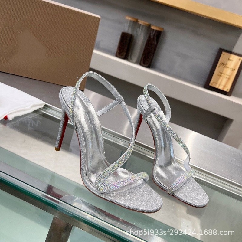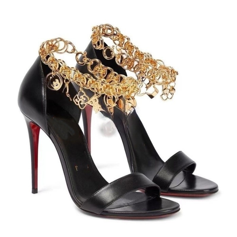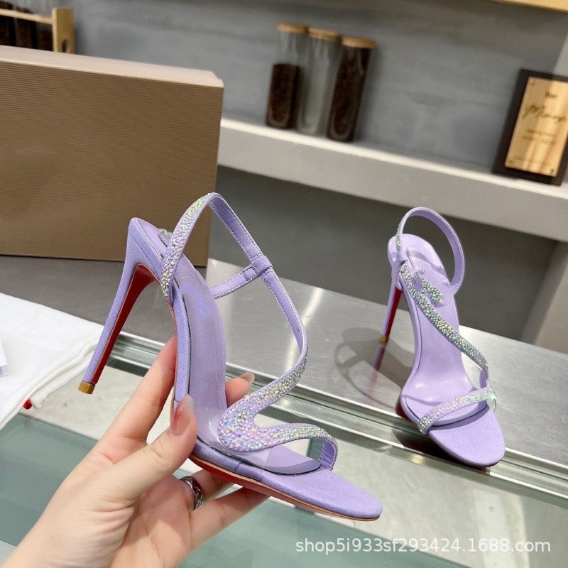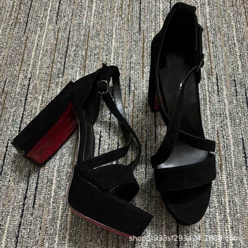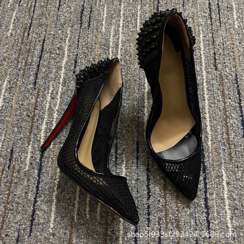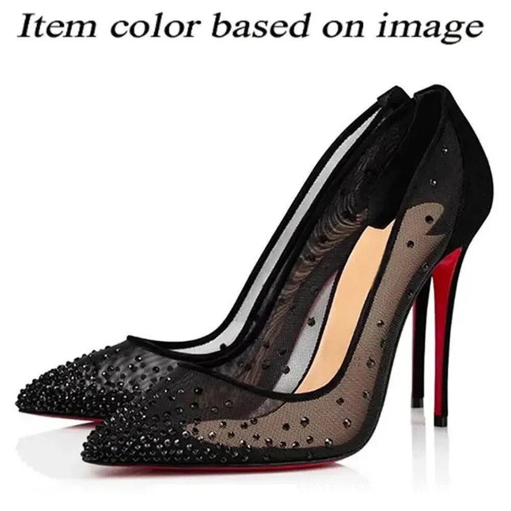 대외 무역 크로스보더 cl 빨간색 바닥 검은 샌들 뾰족한 여성 신발 슬림 하이힐 유행 달콤한 패션쇼 신발스토어 가기