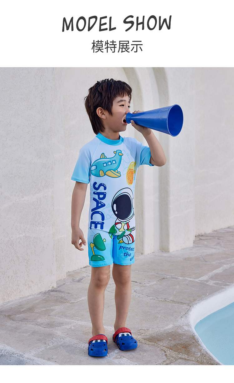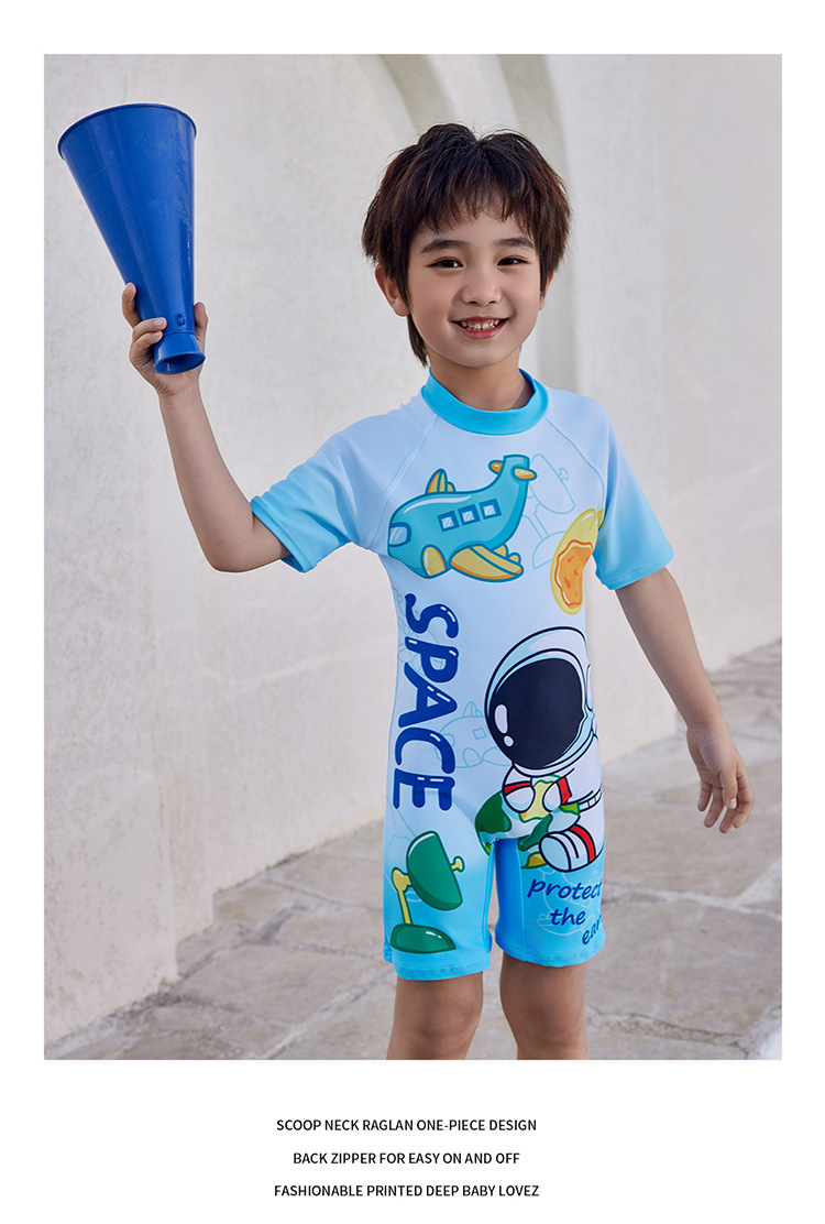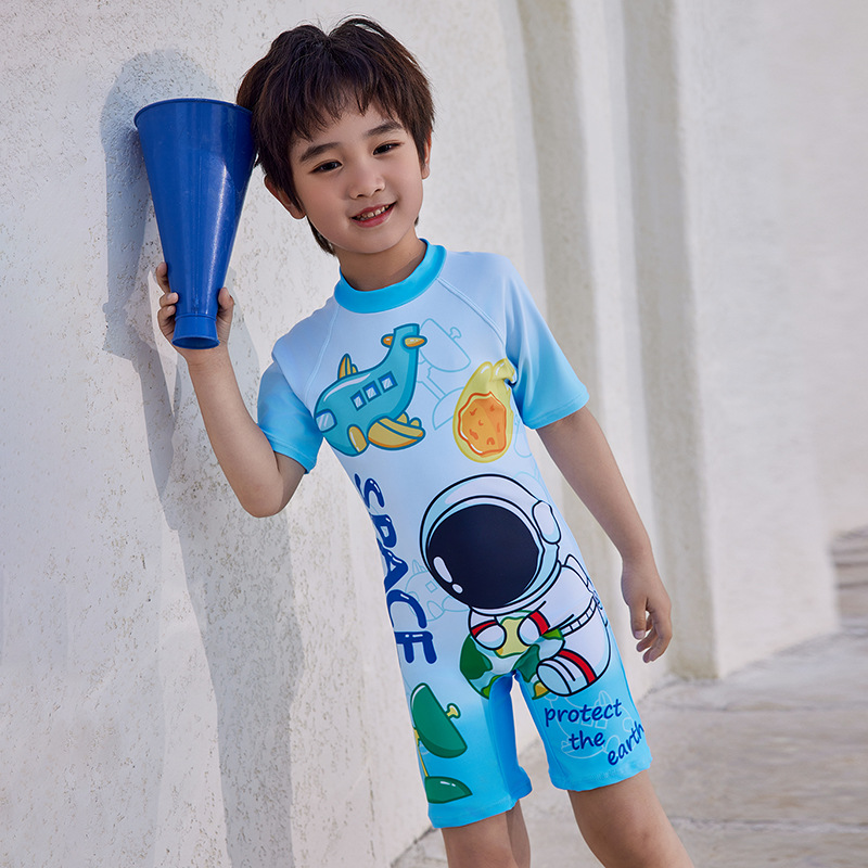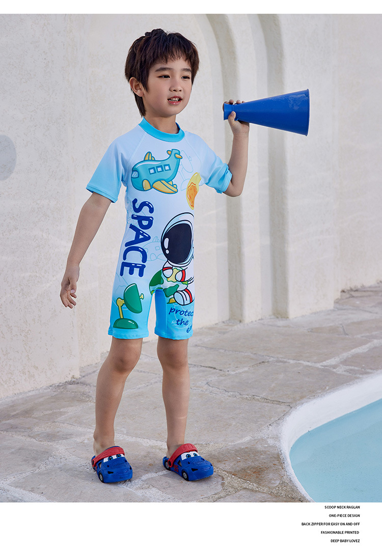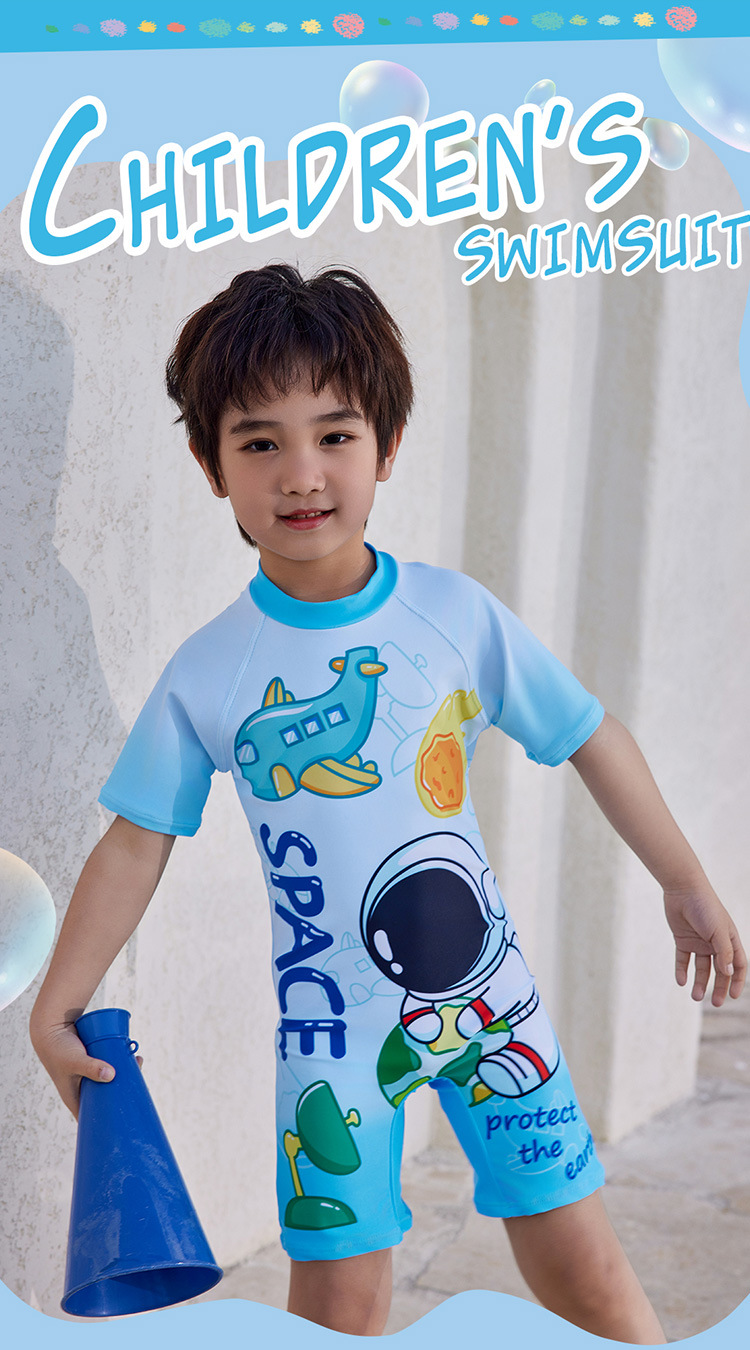새로운 어린이 수영복 소년 원피스 짧은 소매 스포츠 수영복 큰 어린이 학생 만화 캐주얼 수영 세트 도매스토어 가기