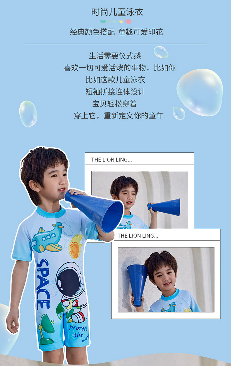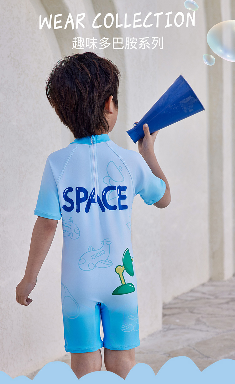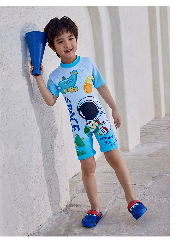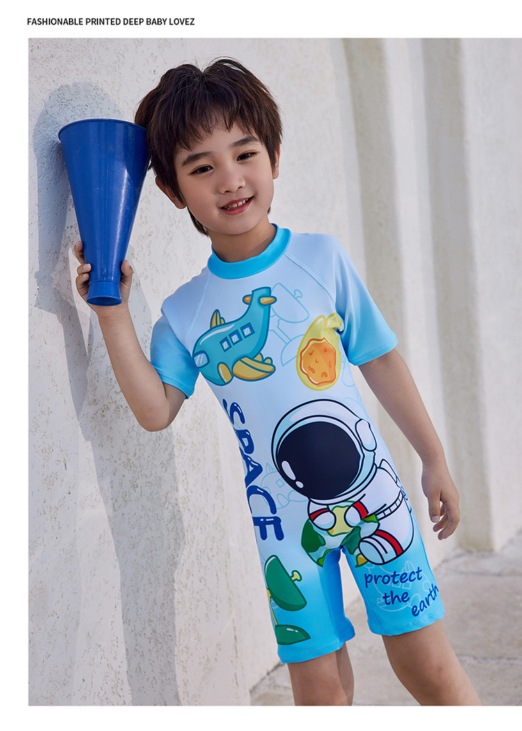 새로운 어린이 수영복 소년 원피스 짧은 소매 스포츠 수영복 큰 어린이 학생 만화 캐주얼 수영 세트 도매스토어 가기