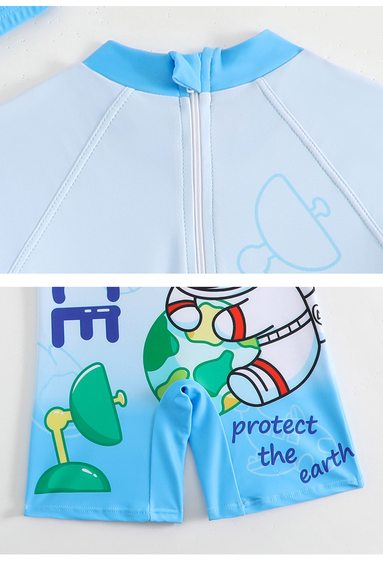 새로운 어린이 수영복 소년 원피스 짧은 소매 스포츠 수영복 큰 어린이 학생 만화 캐주얼 수영 세트 도매