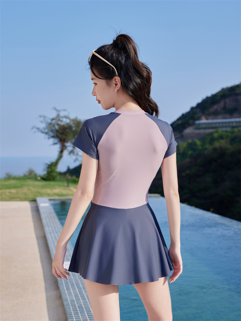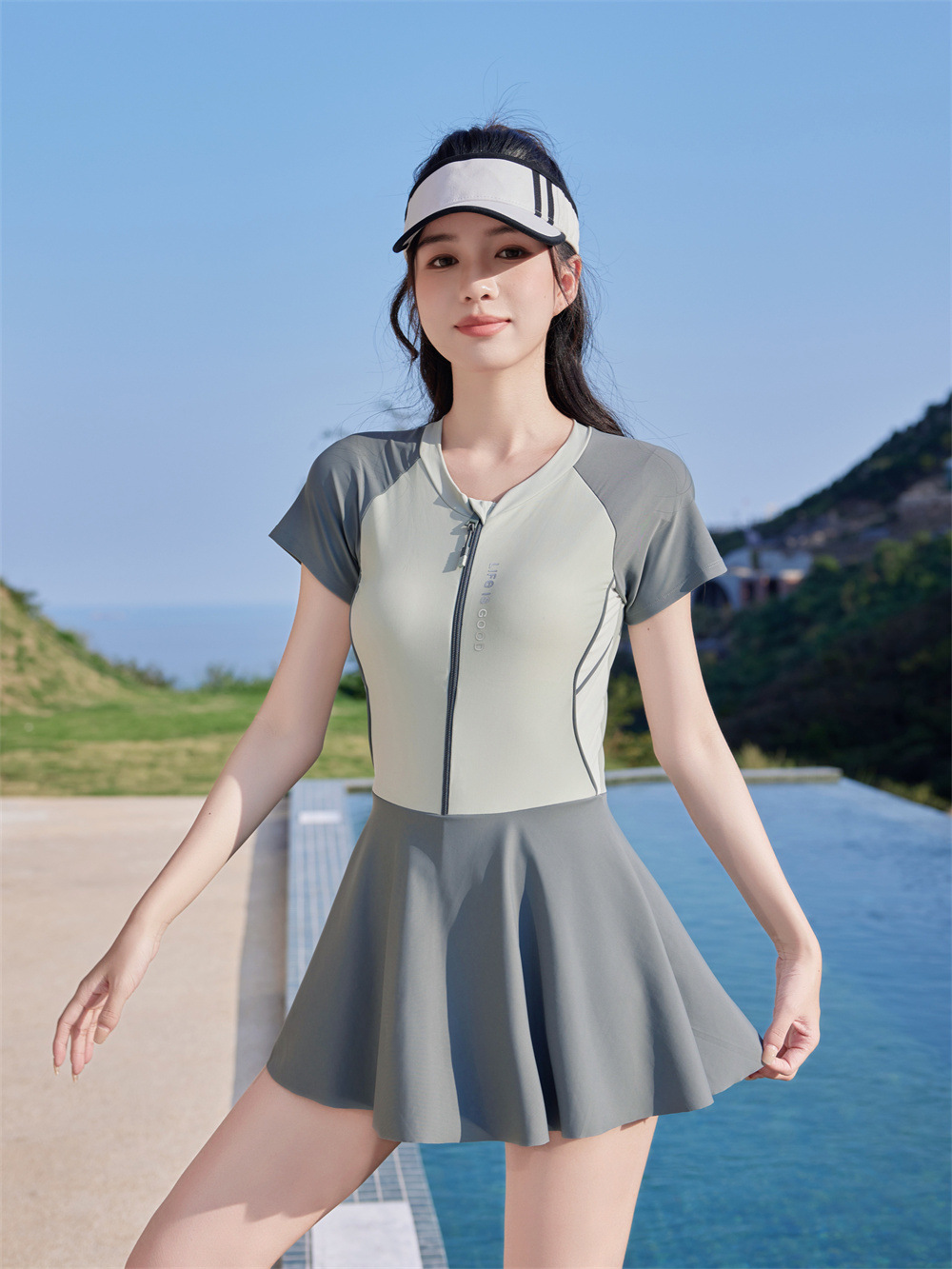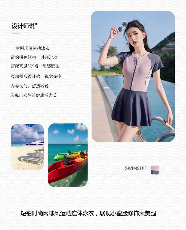 수영복 공장 도매 2025 패션 테니스 스포츠 원피스 수영복 여성 학생들은 해변 수영복 수영을 배웁니다.