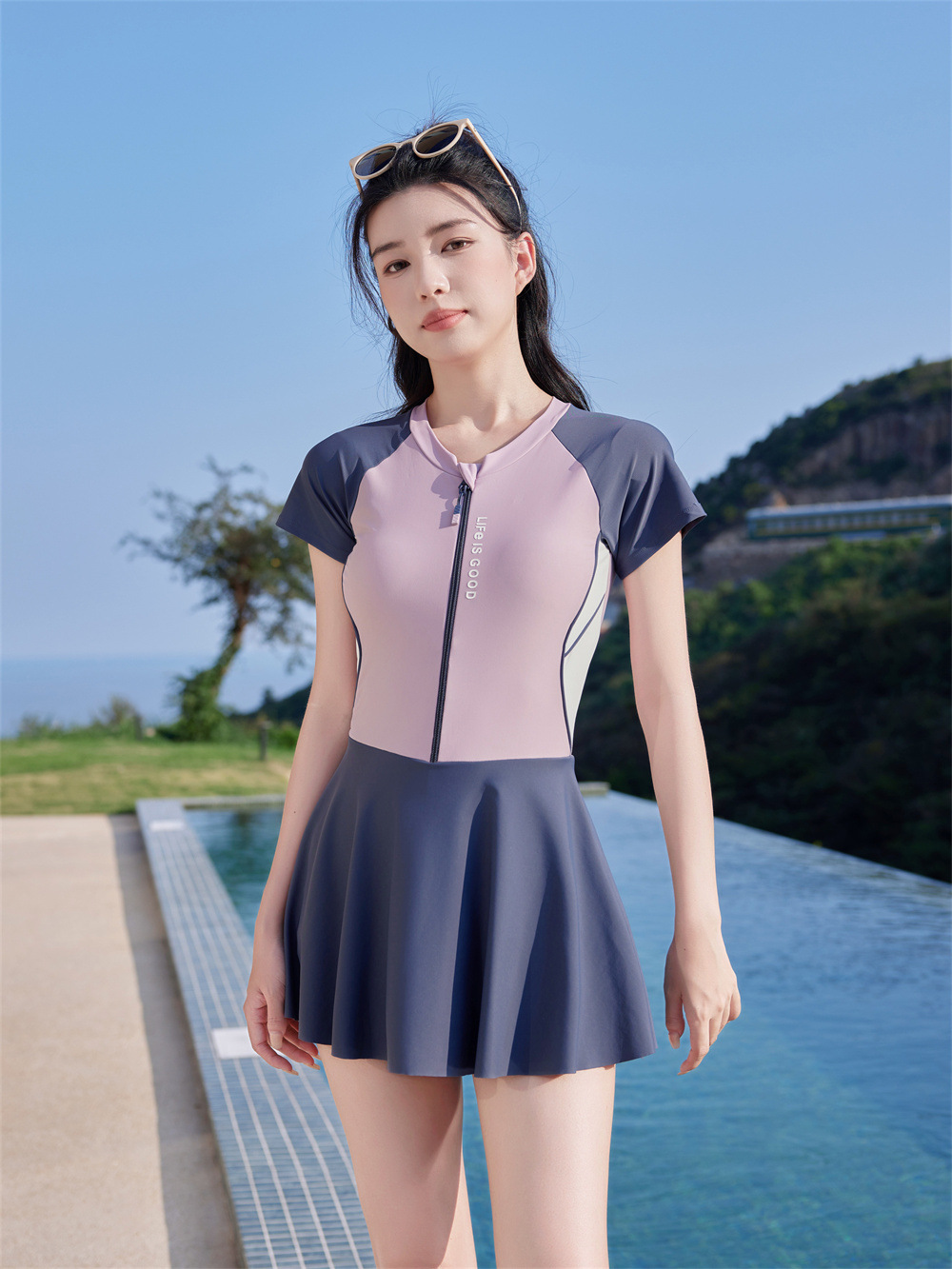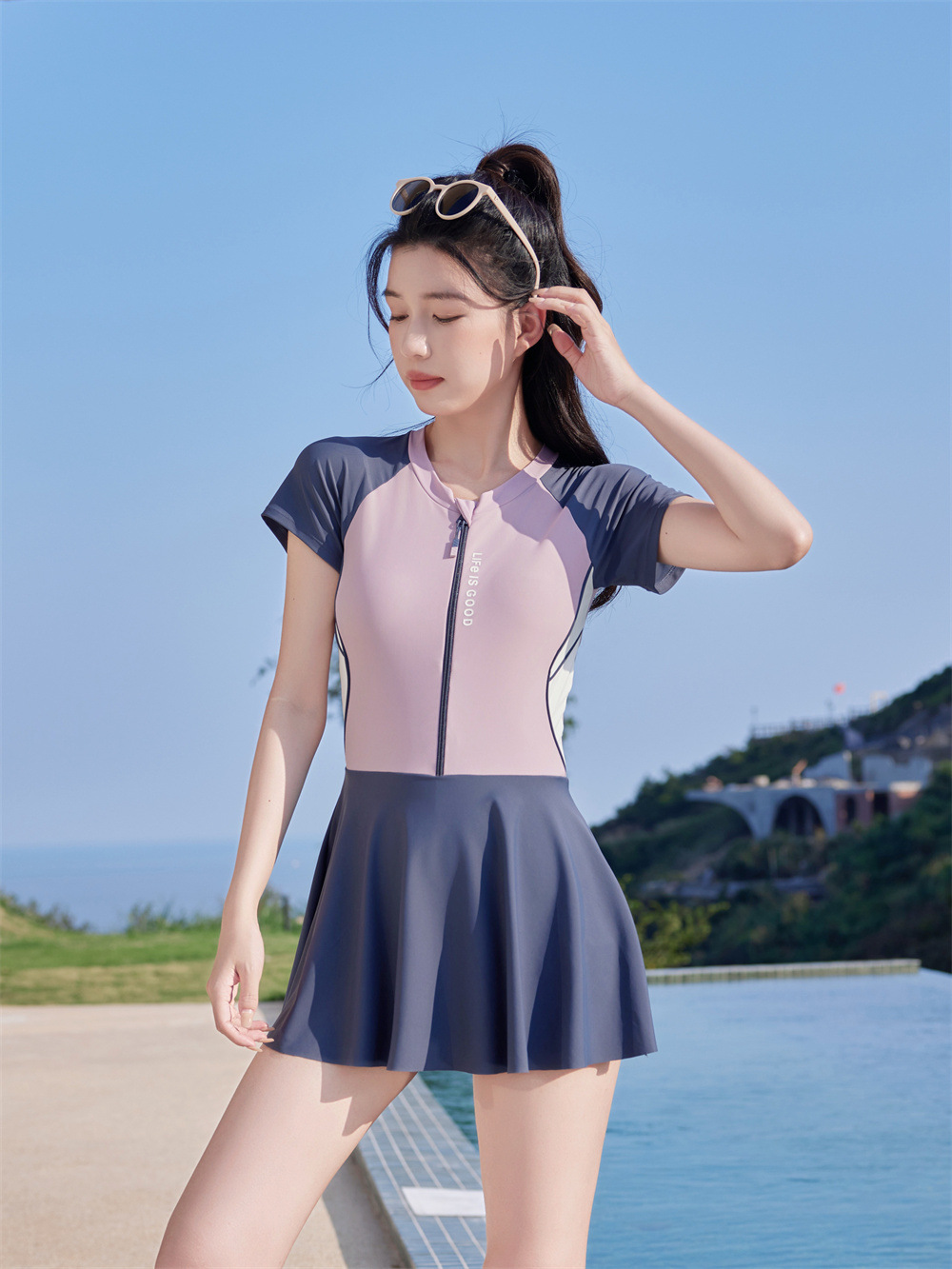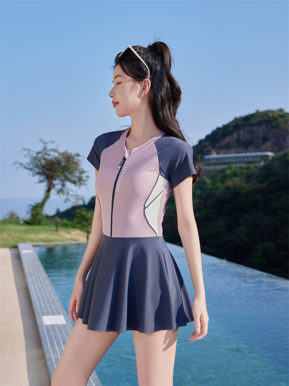 수영복 공장 도매 2025 패션 테니스 스포츠 원피스 수영복 여성 학생들은 해변 수영복 수영을 배웁니다.