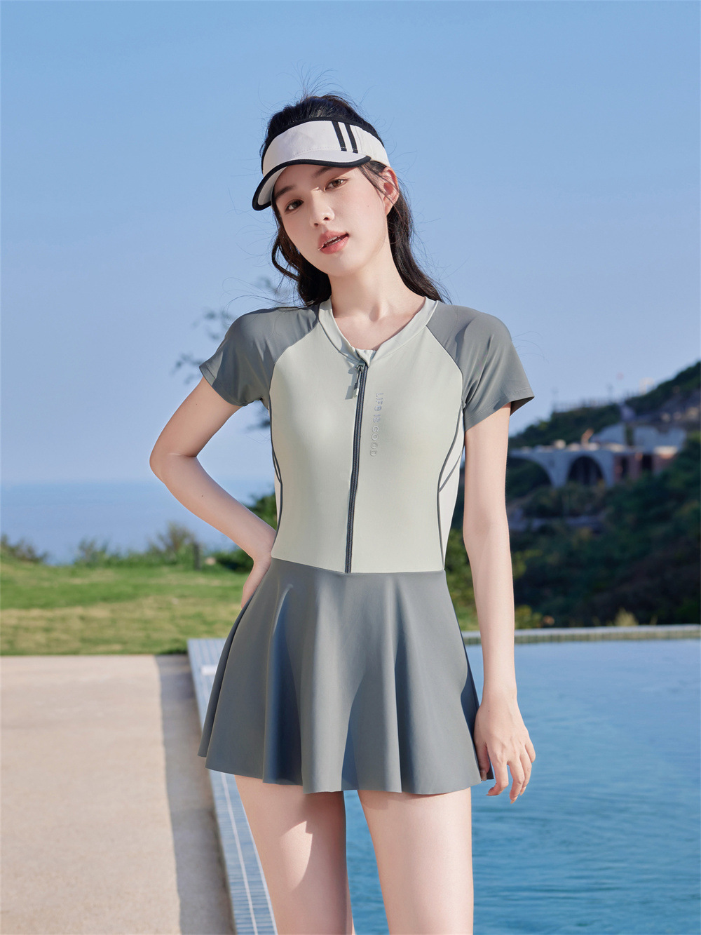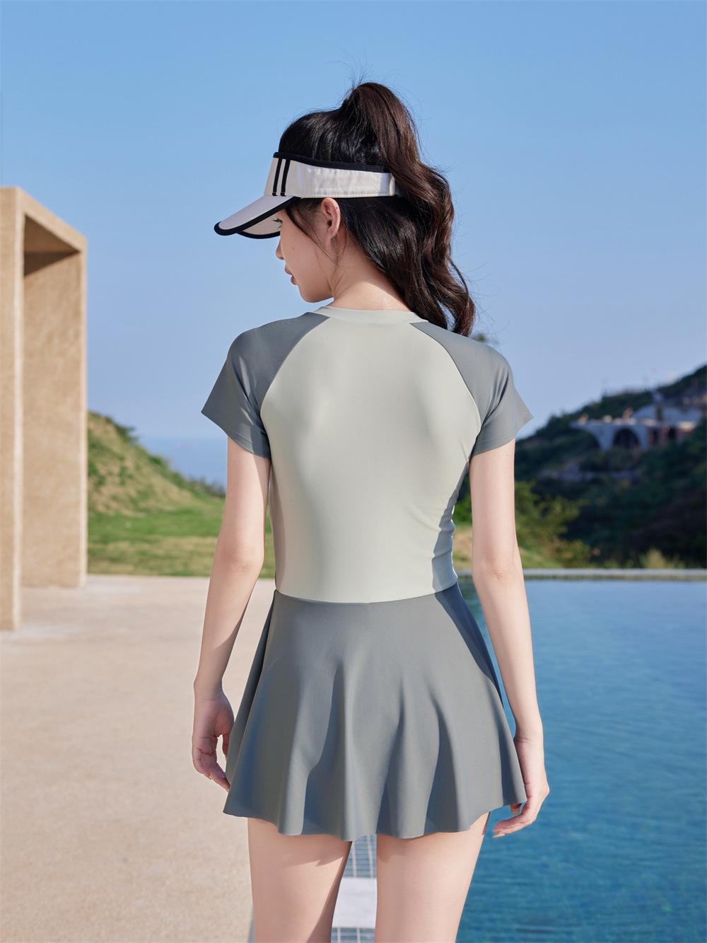 수영복 공장 도매 2025 패션 테니스 스포츠 원피스 수영복 여성 학생들은 해변 수영복 수영을 배웁니다.스토어 가기