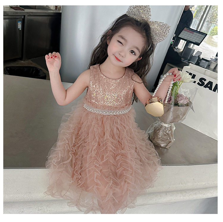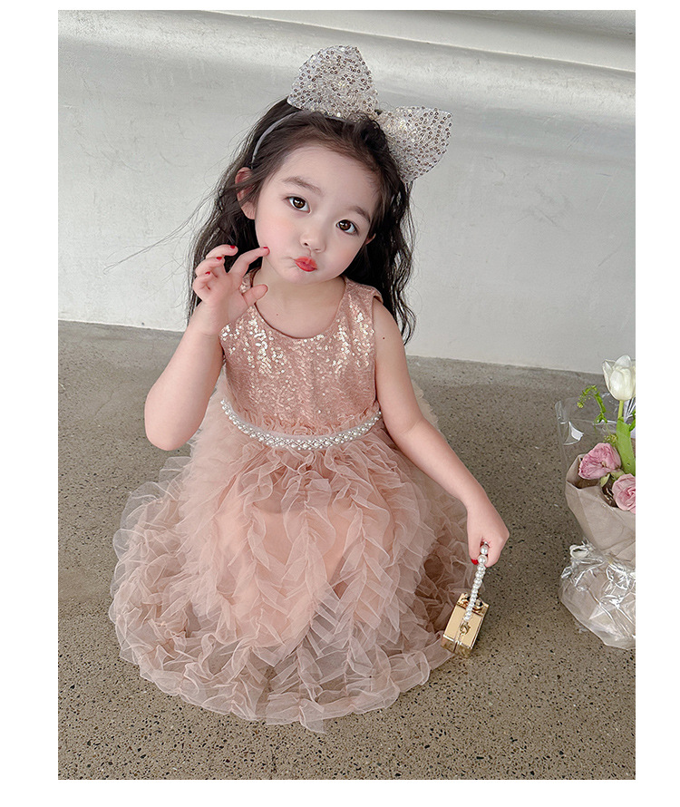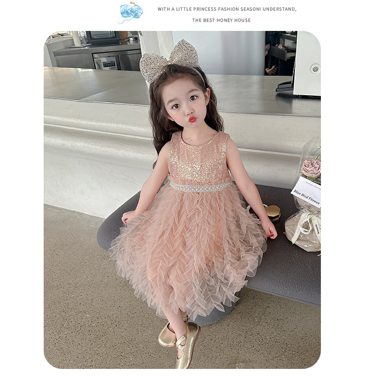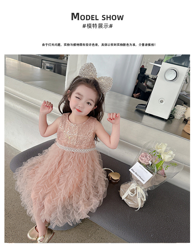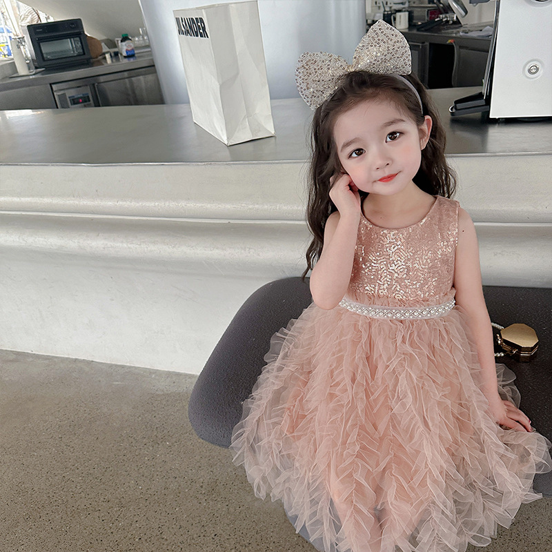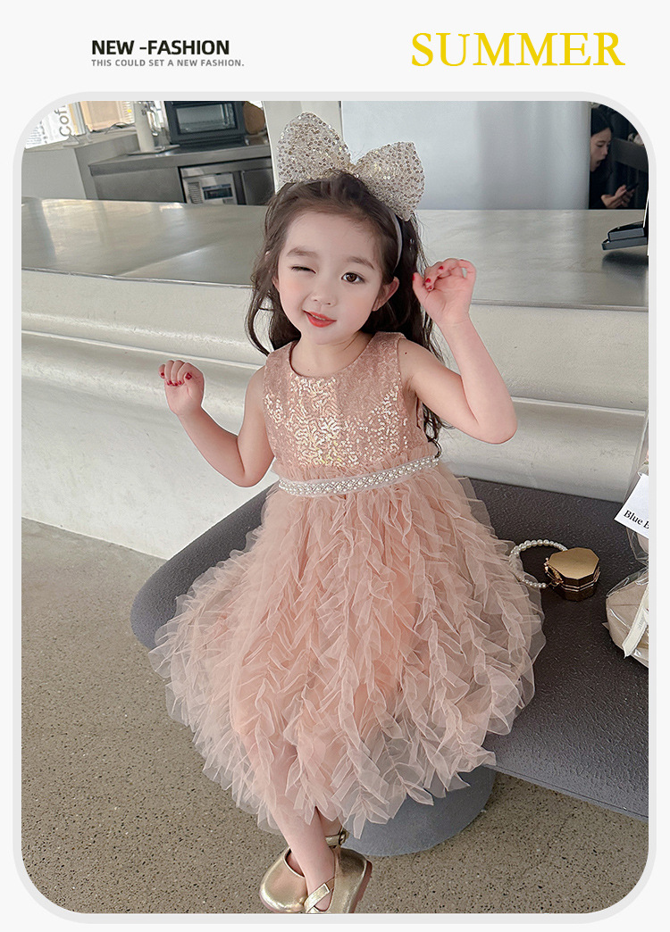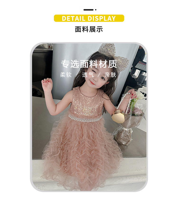 소녀 원피스 여름 새로운 달콤한 원피스 아기 소녀 스타일라인 세퀸 조끼 원피스 어린이 생일 원피스스토어 가기