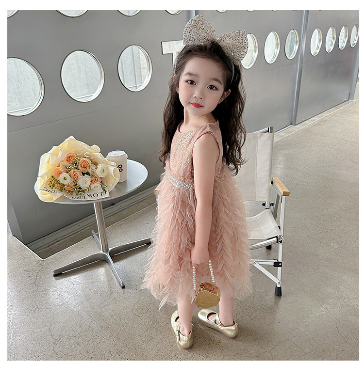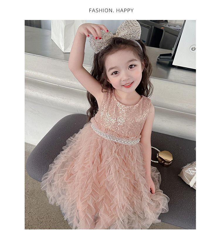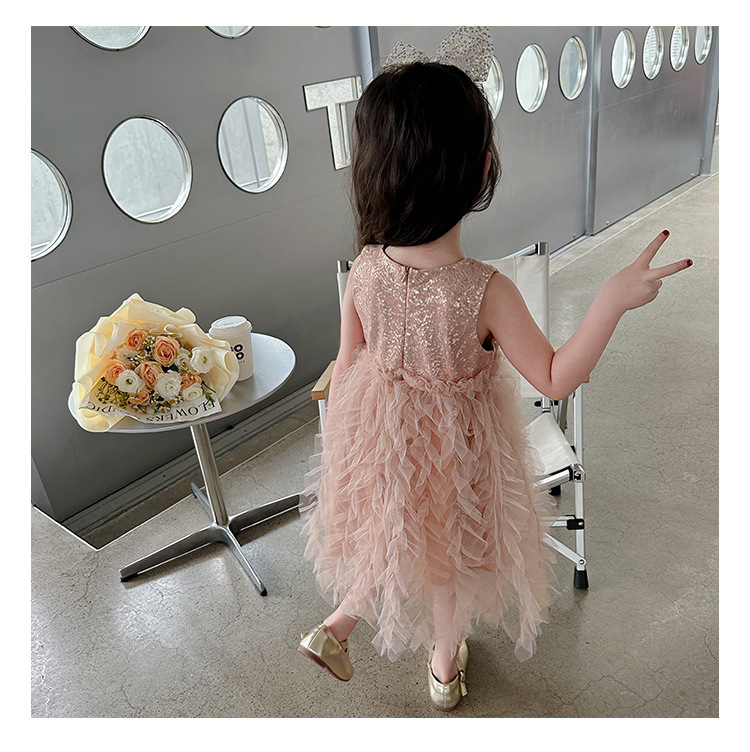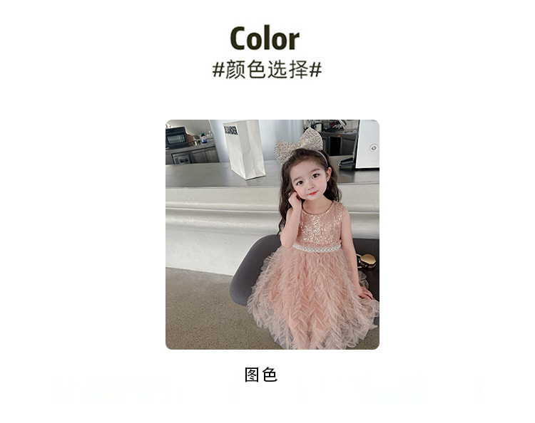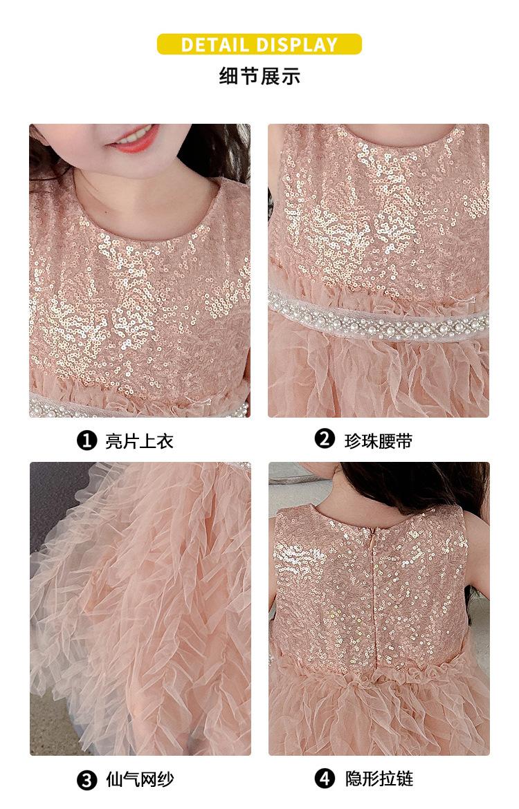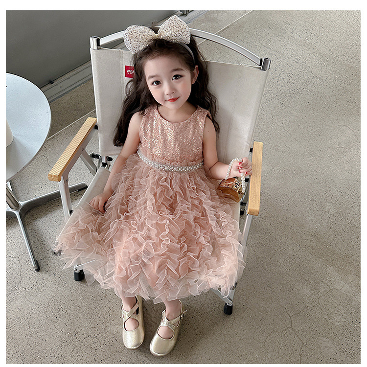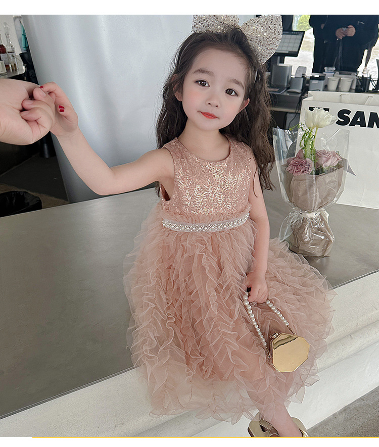 소녀 원피스 여름 새로운 달콤한 원피스 아기 소녀 스타일라인 세퀸 조끼 원피스 어린이 생일 원피스스토어 가기