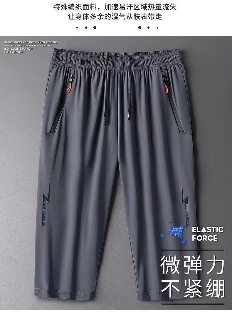아이스 실크 자른 바지 여름 얇은 캐주얼 스포츠 빠른 건조 반바지 남자 플러스 뚱뚱한 바지 남자스토어 가기