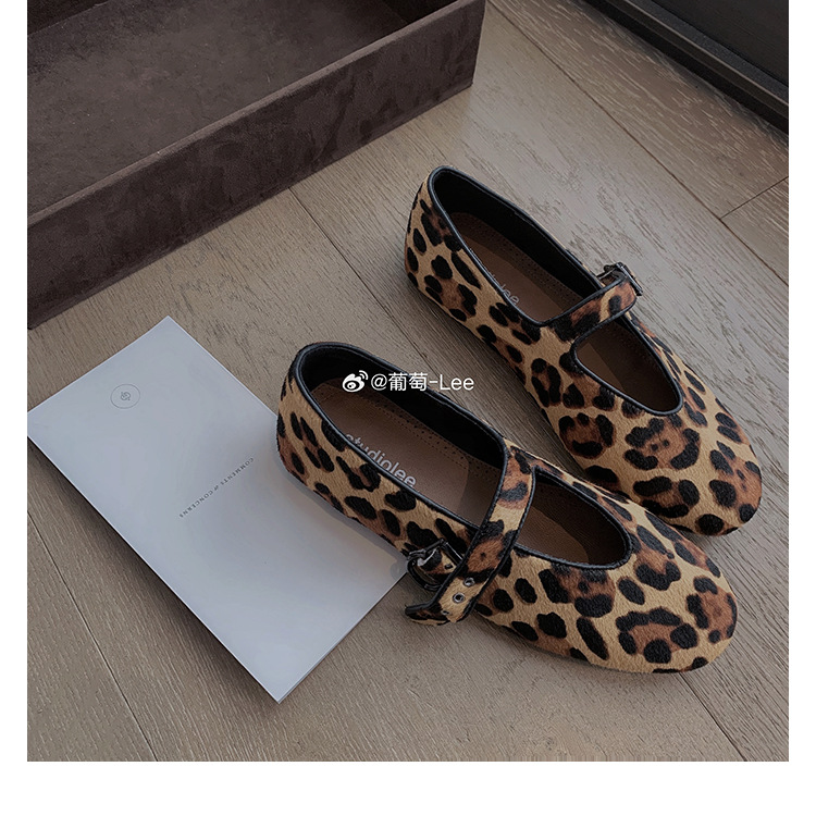 평평한 바닥을 가진 나이를 줄이는 둥근 머리를 가진 포도 어머니의 양가죽 버전 Mary Jane 신발 여성의 레오파드 무늬 말 머리 얕은 입 신발스토어 가기