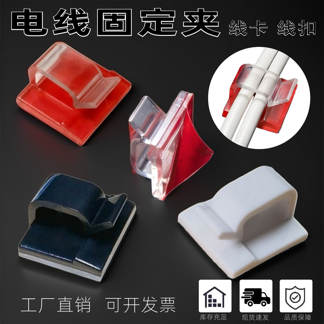 牢固耐用自黏线卡 强力带背粘胶式塑料固定卡扣理线器-电线线夹