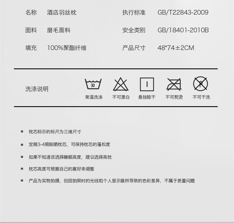 • 48*74 양면 낮은 베개 (650g)