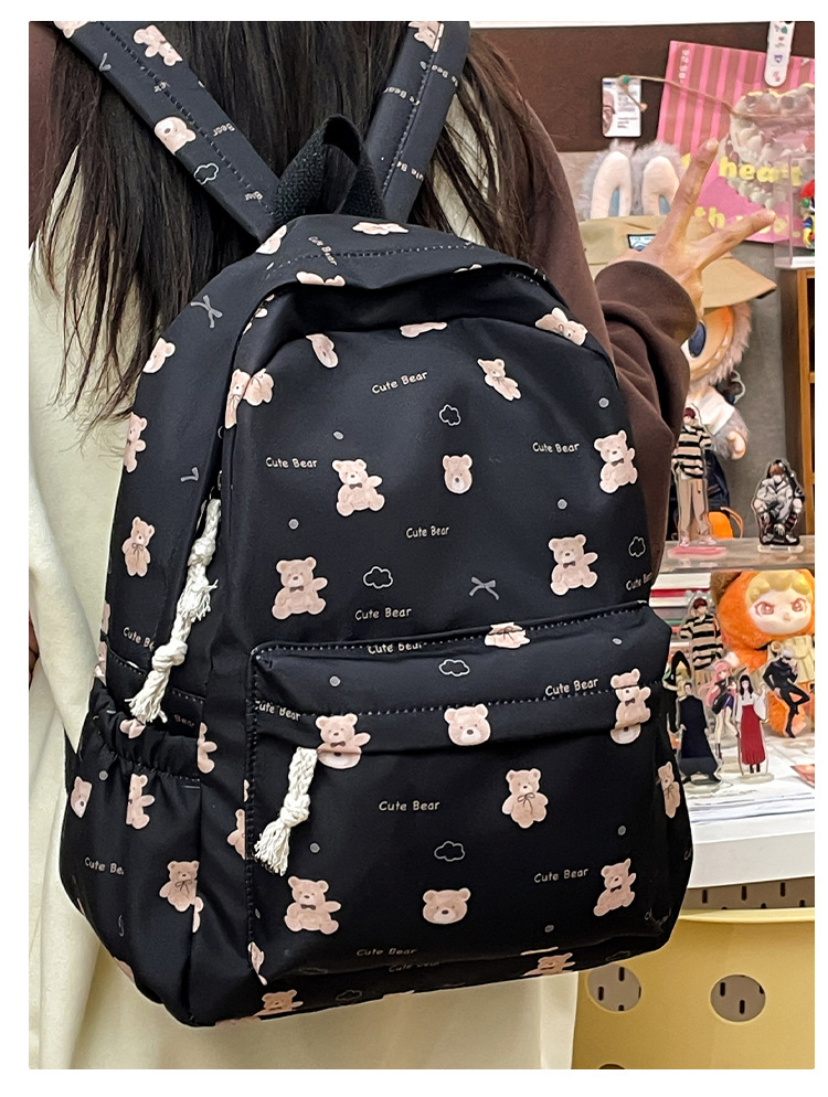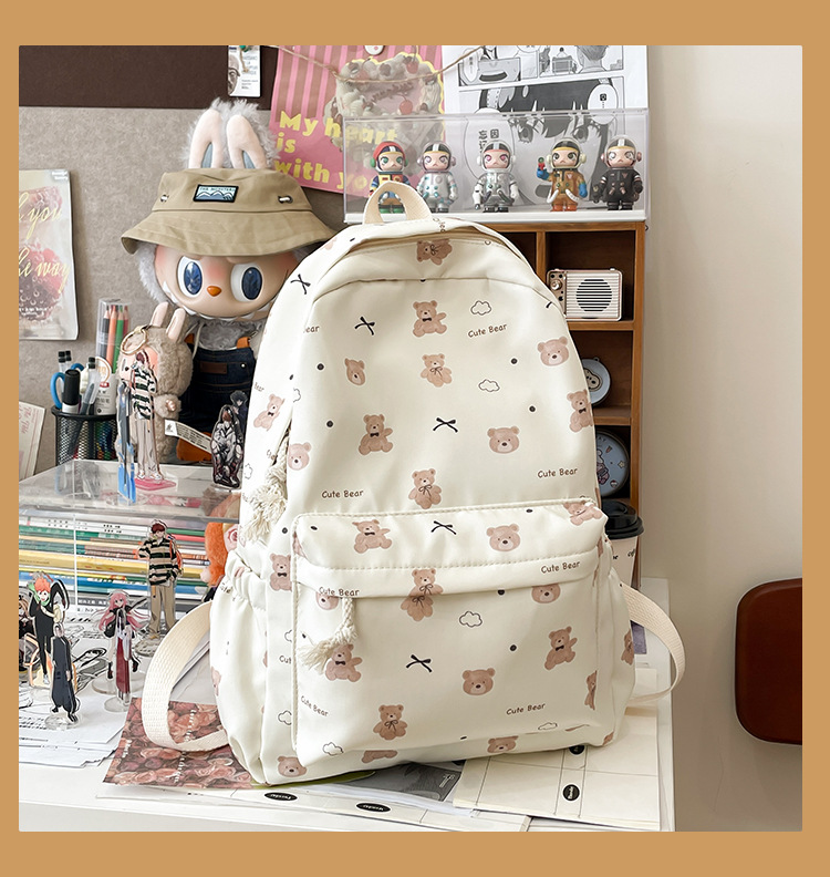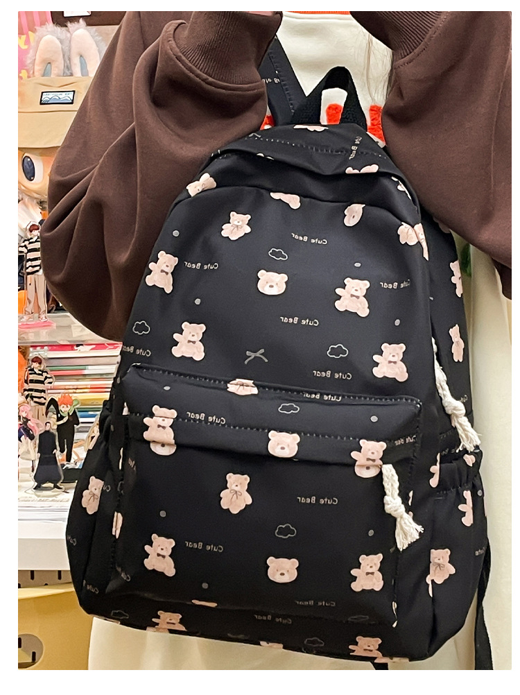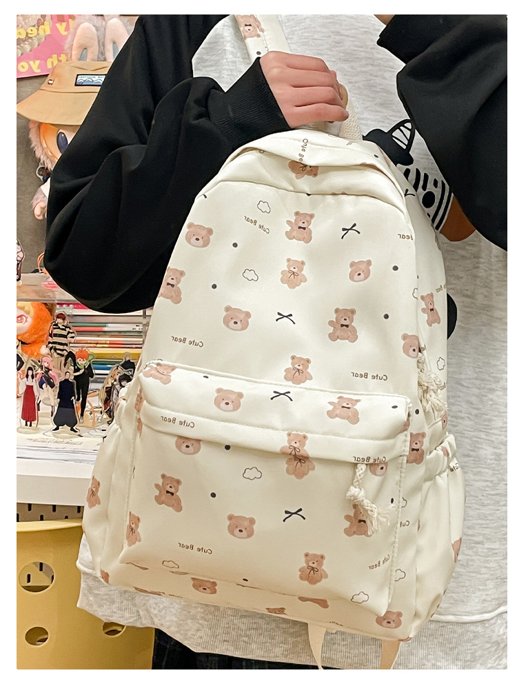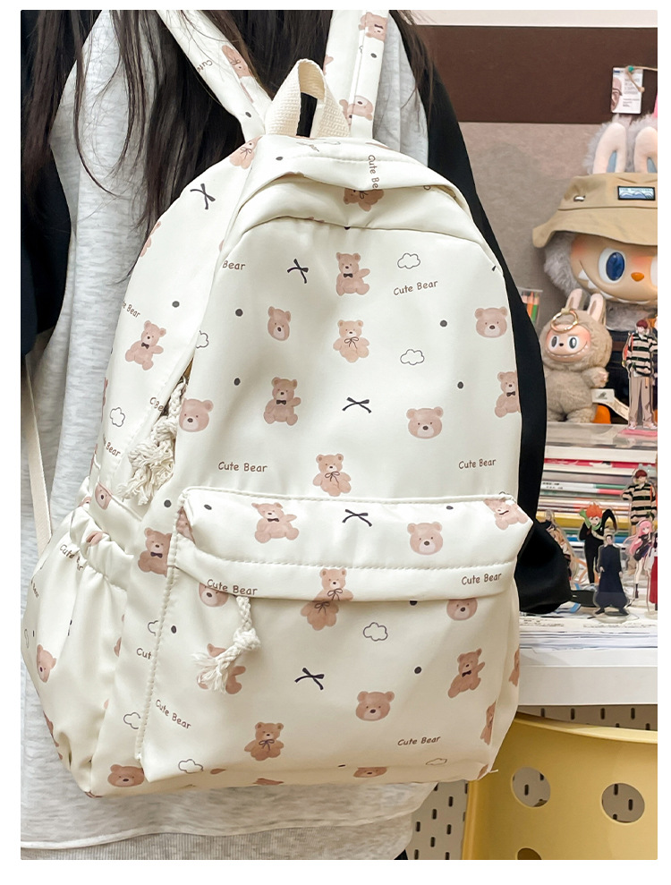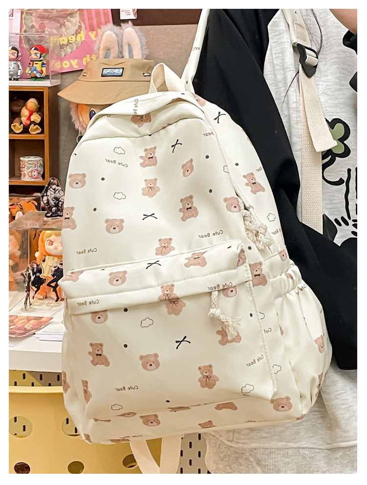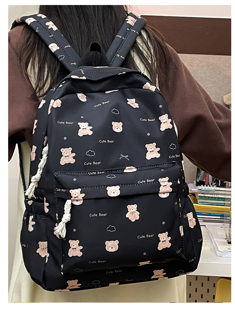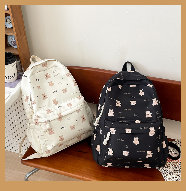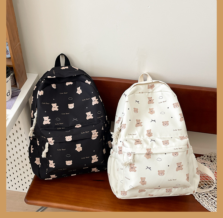 Ins 일본식 귀여운 곰 인쇄 배낭 여성 중학교 학생 배낭 간단한 캐주얼 여행 배낭
