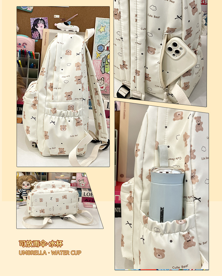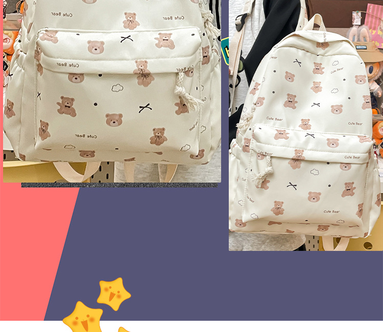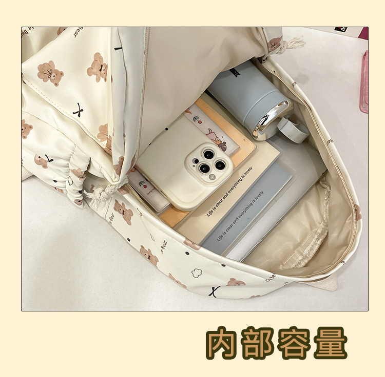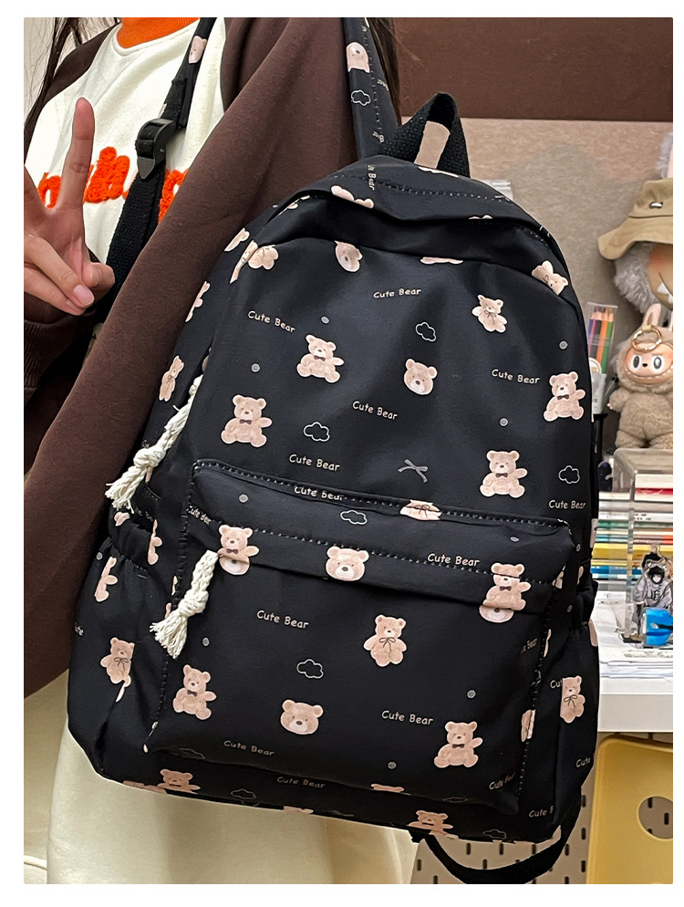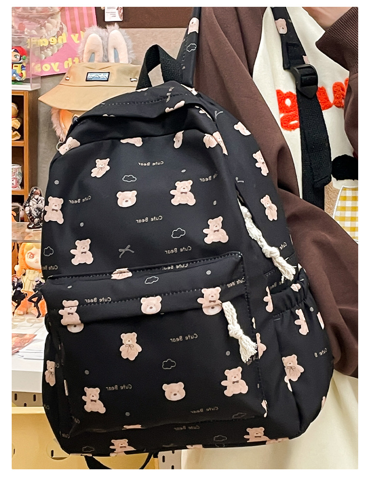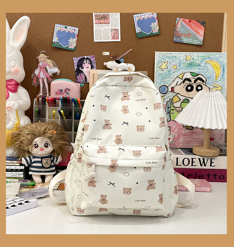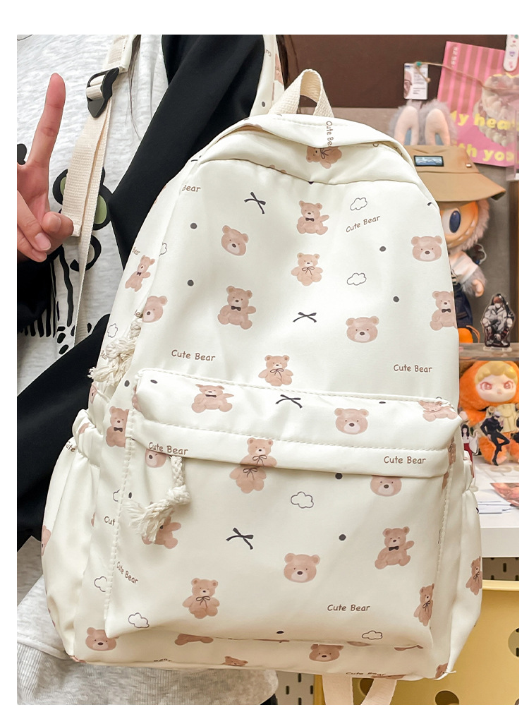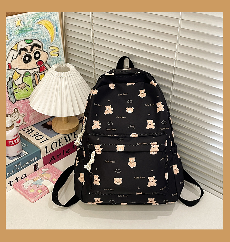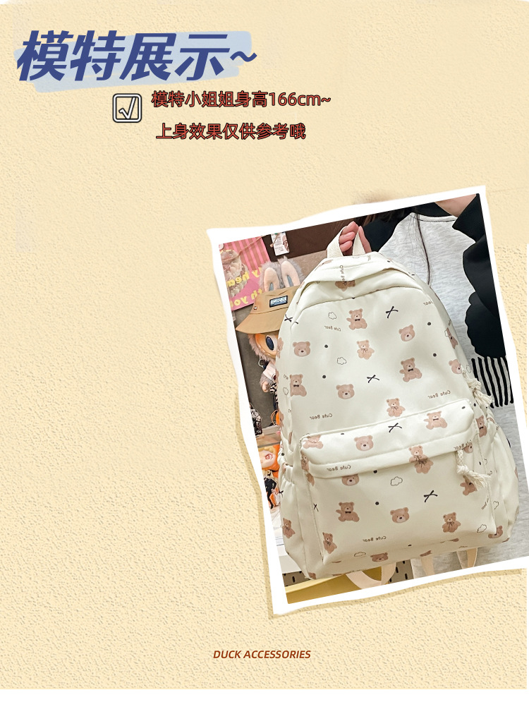 Ins 일본식 귀여운 곰 인쇄 배낭 여성 중학교 학생 배낭 간단한 캐주얼 여행 배낭