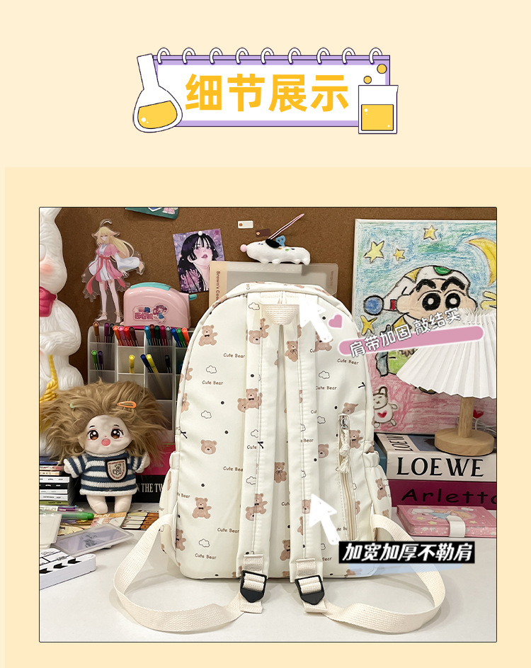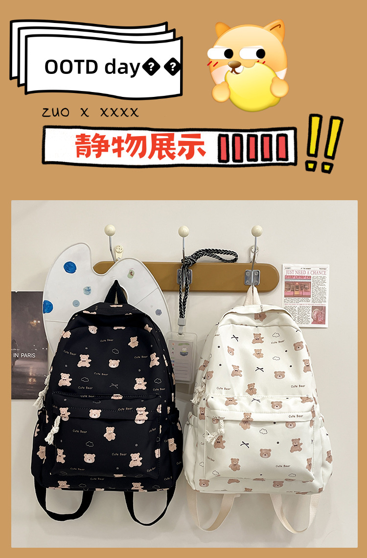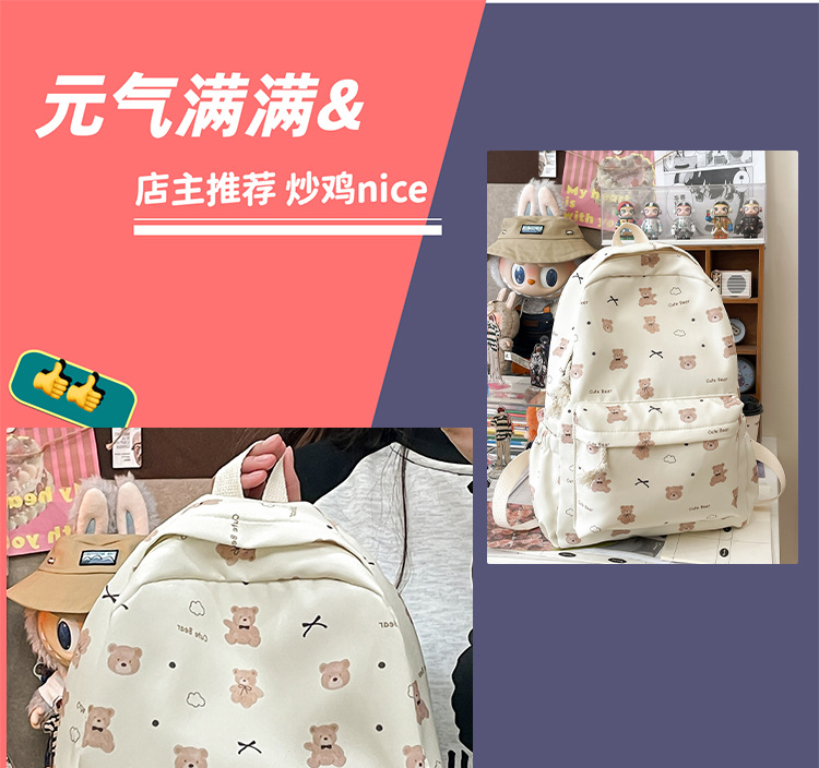 Ins 일본식 귀여운 곰 인쇄 배낭 여성 중학교 학생 배낭 간단한 캐주얼 여행 배낭스토어 가기