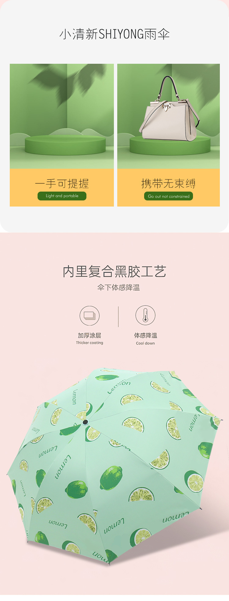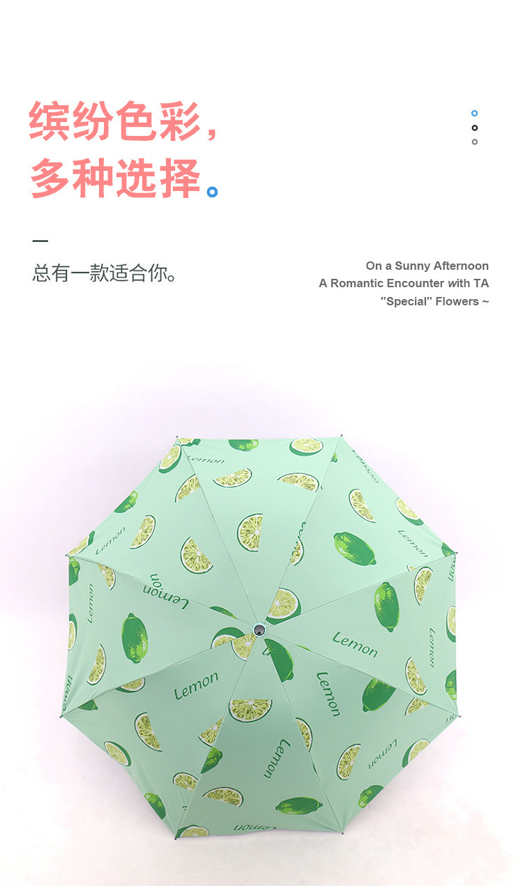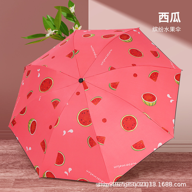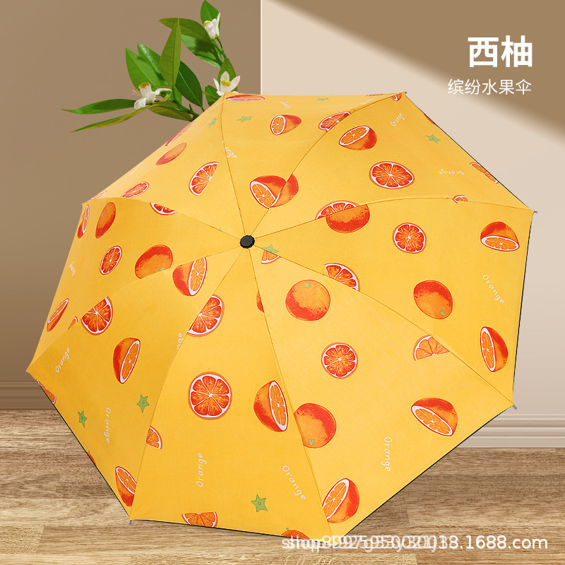 귀여운 과일 우산 학생 접히는 자외선 차양 우산 여성의 맑고 비오는 이중 목적 검은 태양 우산
