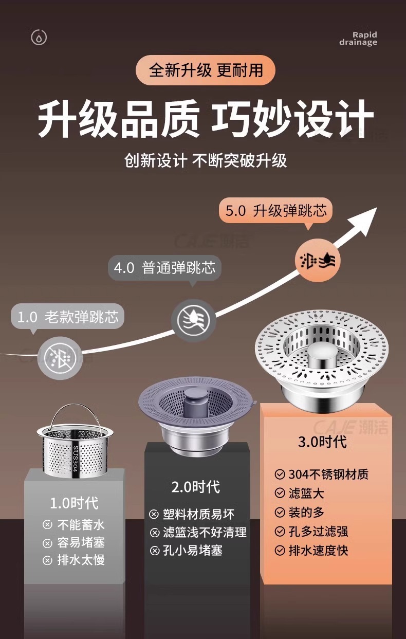 주방 싱크 필터 바운스 코어 스테인레스 스틸 싱크 필터 범용 싱크 누수 스토퍼 탈취제