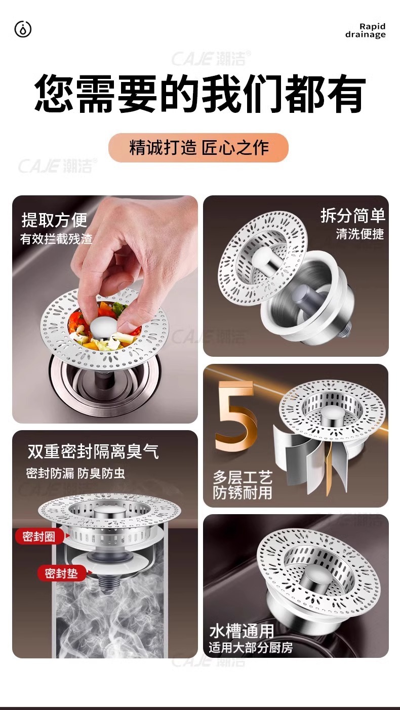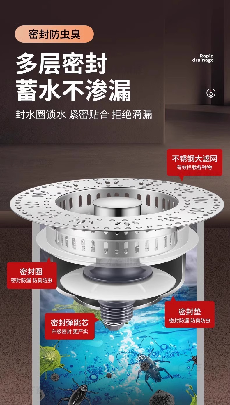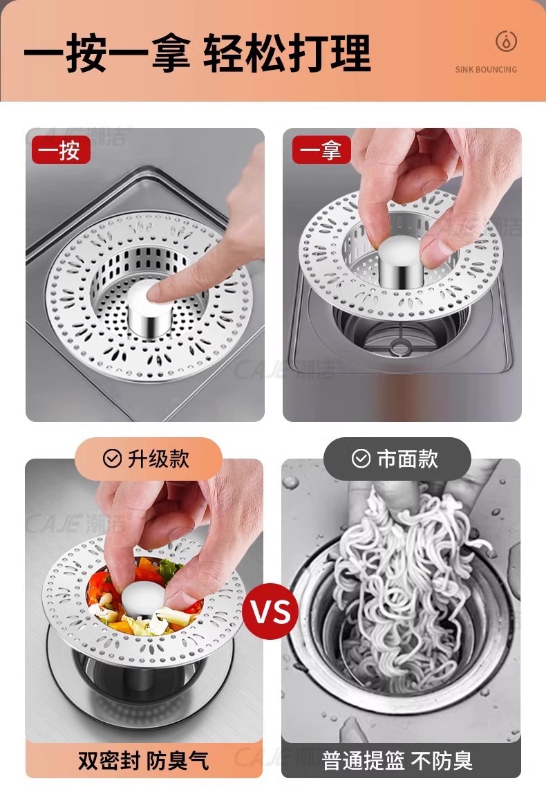 주방 싱크 필터 바운스 코어 스테인레스 스틸 싱크 필터 범용 싱크 누수 스토퍼 탈취제스토어 가기