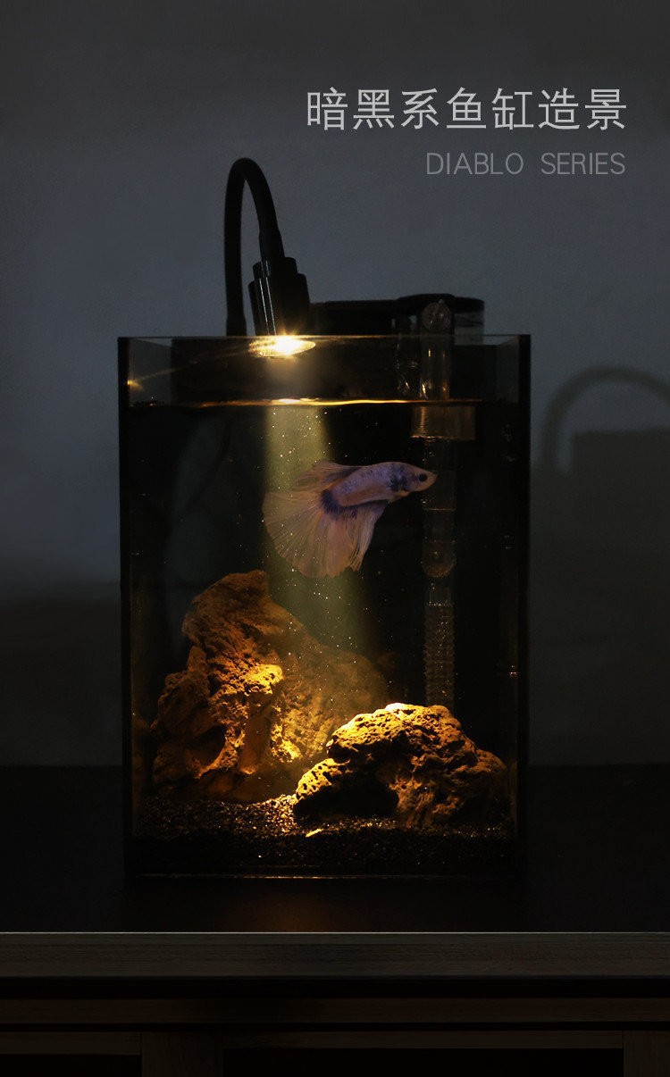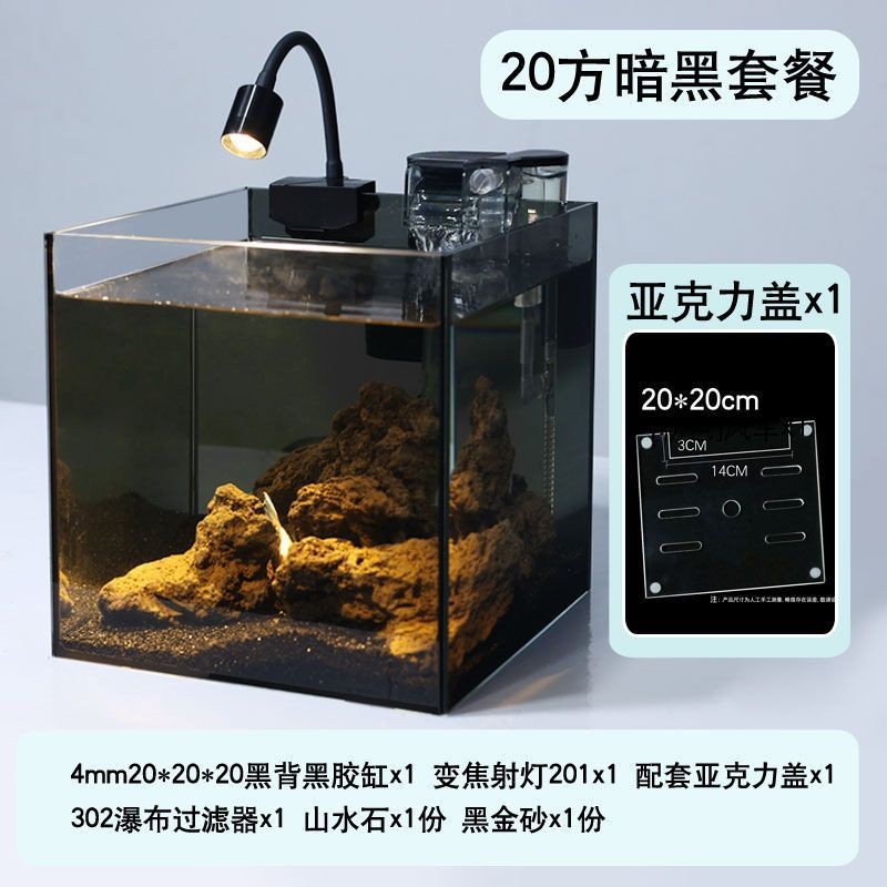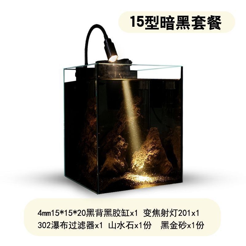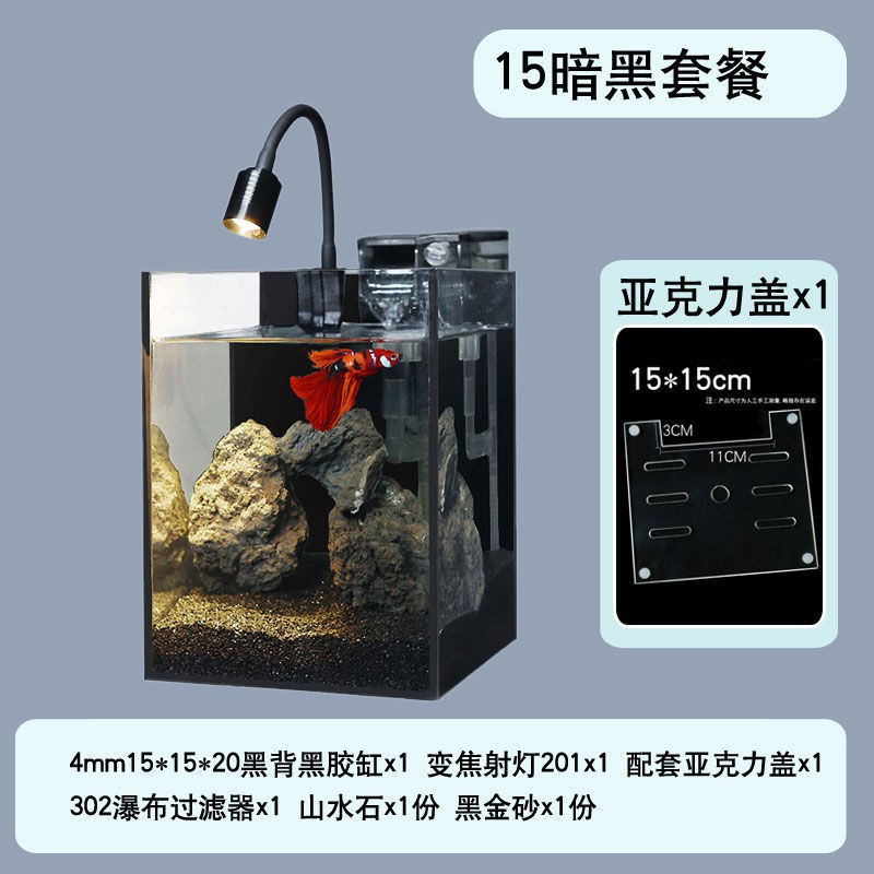 다크 윈드 피쉬 탱크 패키지 하이 센스 데스크탑 작은 크리에이티브 블랙 백 유리 버킷 생선 데스크탑 슈퍼 화이트 어항 전체 세트스토어 가기