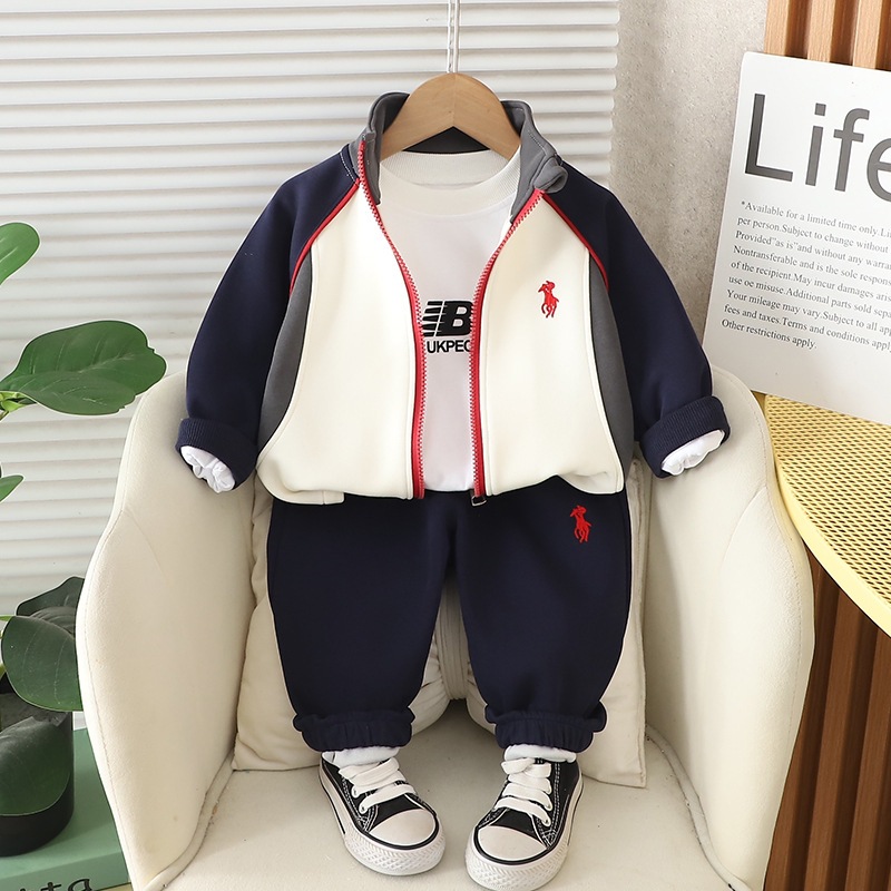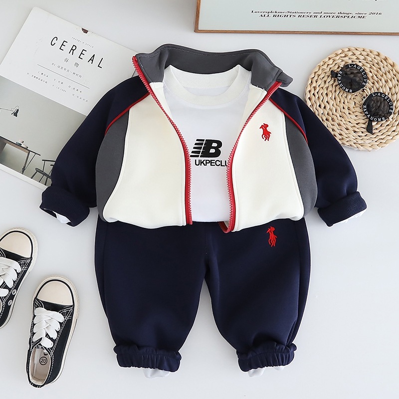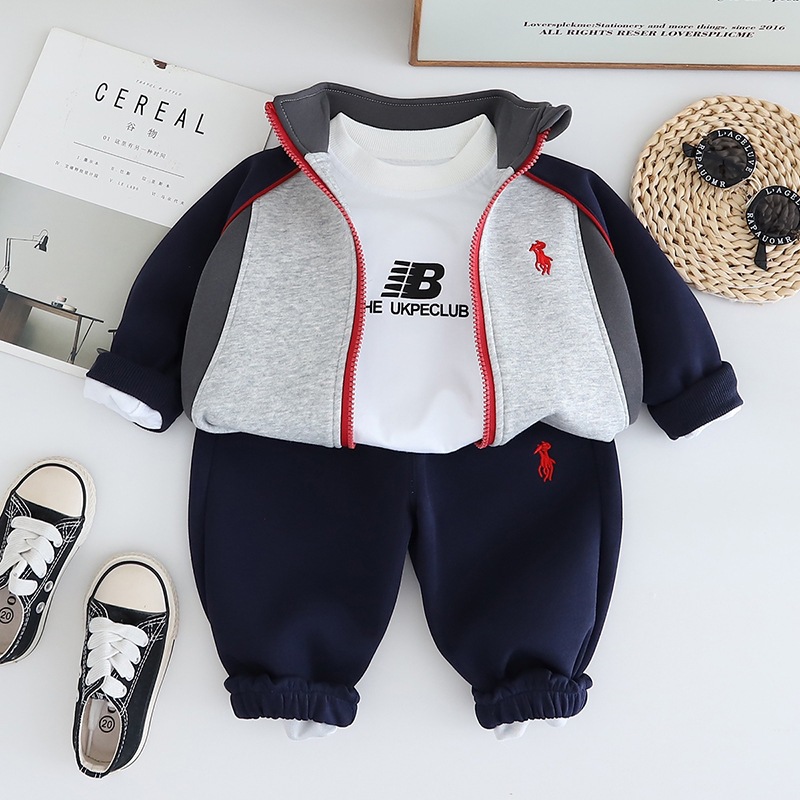 어린이 봄 새 잘 생긴 긴팔 소년 카디건 옷 남자 아기 운동복 3 피스 어린이 가을 세트