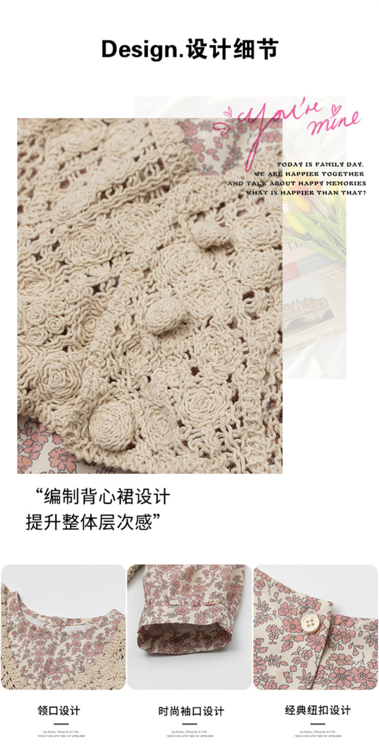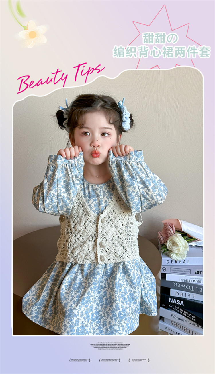 소녀 봄 원피스 2025 새로운 짠 조끼 꽃 원피스 두 조각 달콤한 귀여운 긴 소매 꽃 원피스스토어 가기