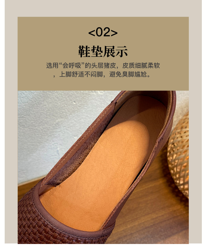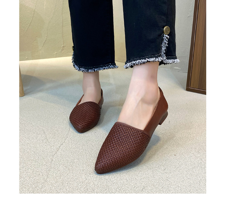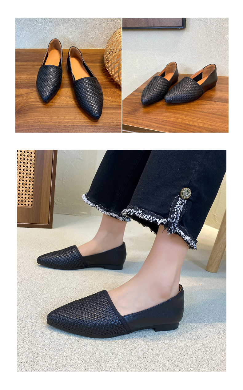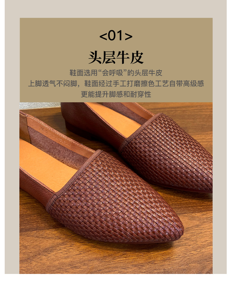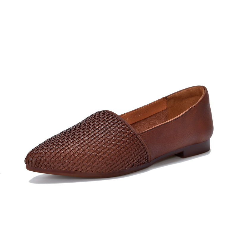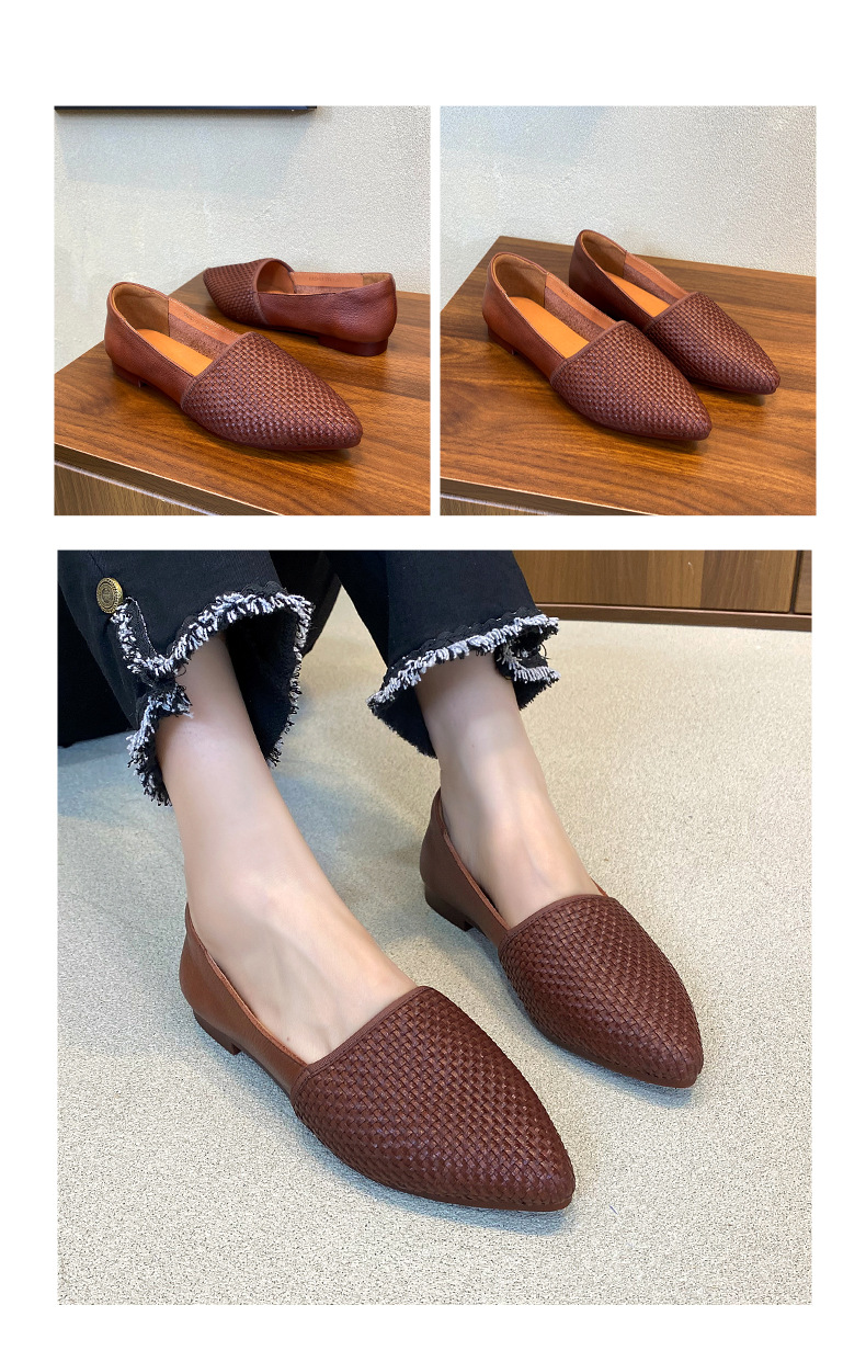 손으로 짠 뾰족한 플랫 신발 가죽 여성 부츠 2025 봄과 여름 여성을위한 새로운 첫 번째 레이어 소 가죽 뾰족한 신발