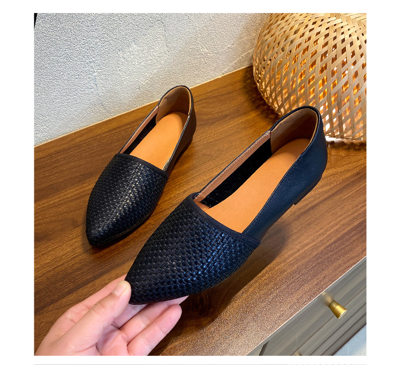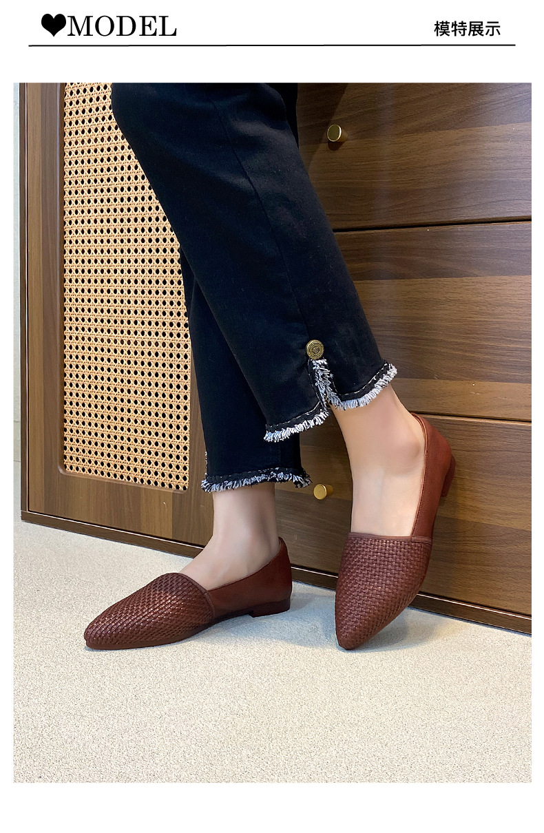 손으로 짠 뾰족한 플랫 신발 가죽 여성 부츠 2025 봄과 여름 여성을위한 새로운 첫 번째 레이어 소 가죽 뾰족한 신발스토어 가기