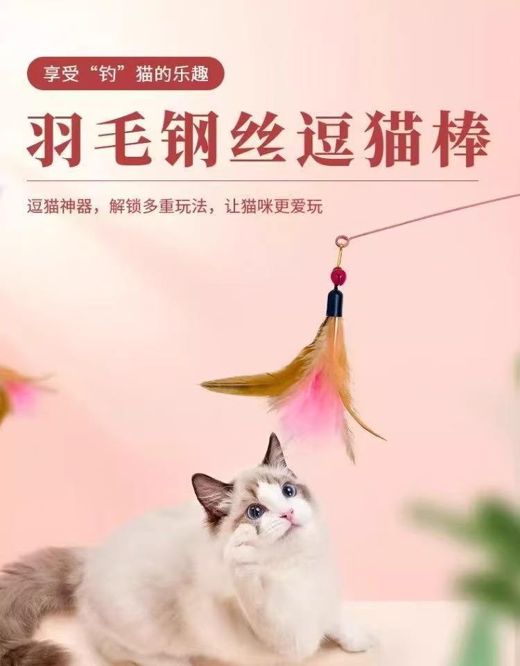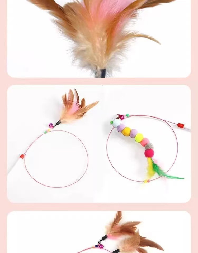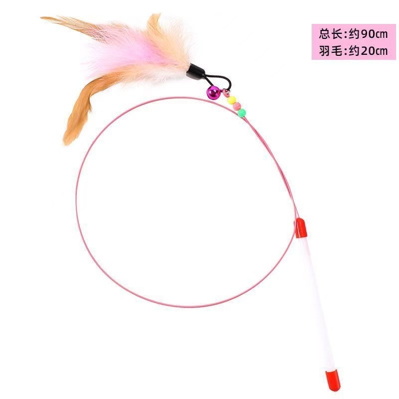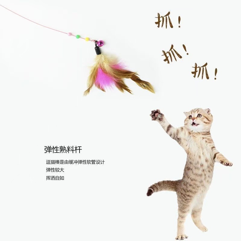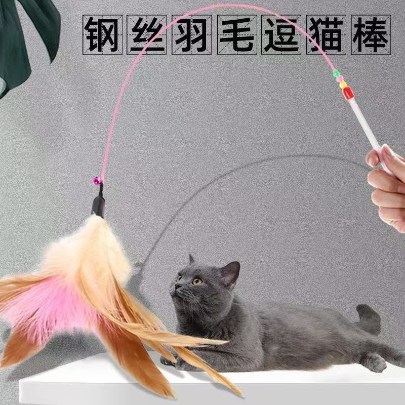 공장 직접 긴 막대 강철 와이어 고양이 스틱 깃털 벨 고양이 스틱 교체 헤드 대화 형 자기 안녕 물린 방지 고양이 장난감