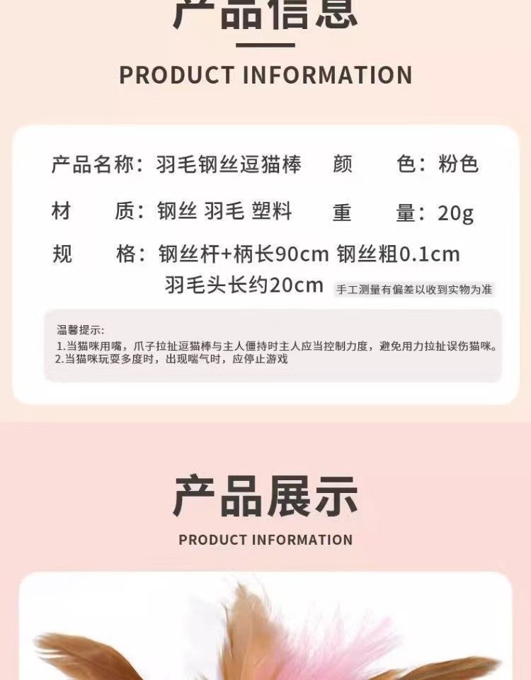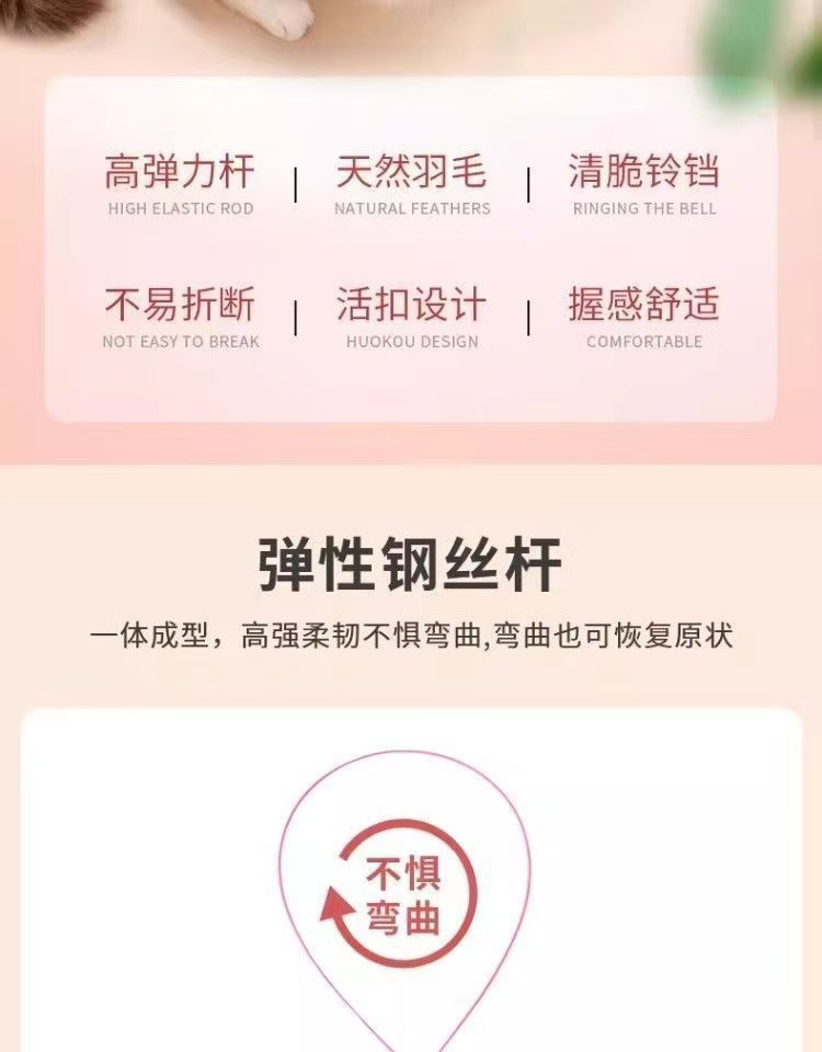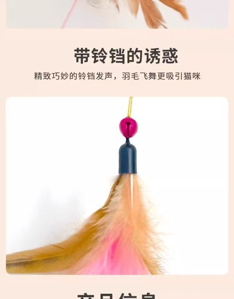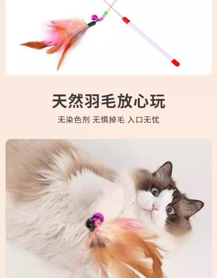공장 직접 긴 막대 강철 와이어 고양이 스틱 깃털 벨 고양이 스틱 교체 헤드 대화 형 자기 안녕 물린 방지 고양이 장난감